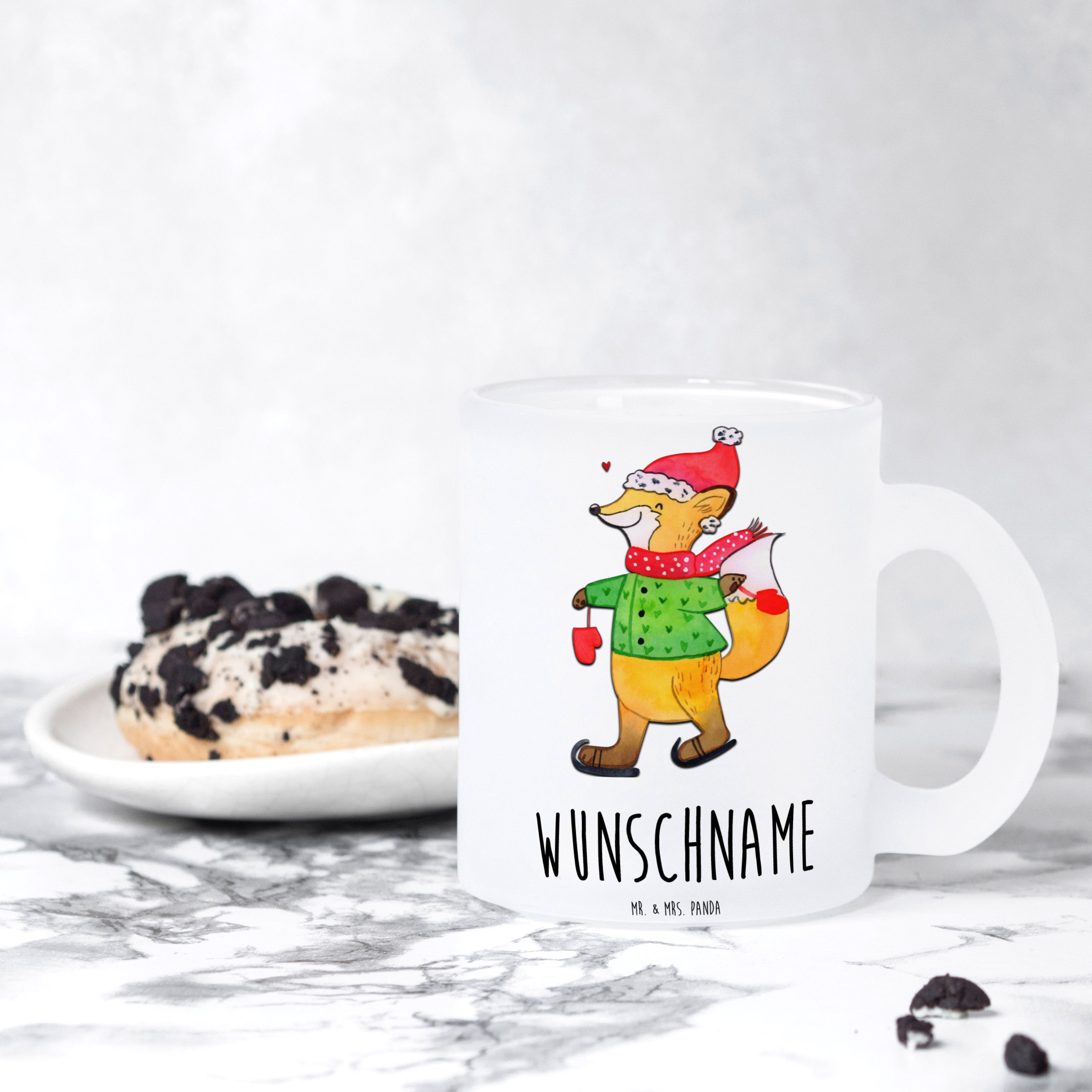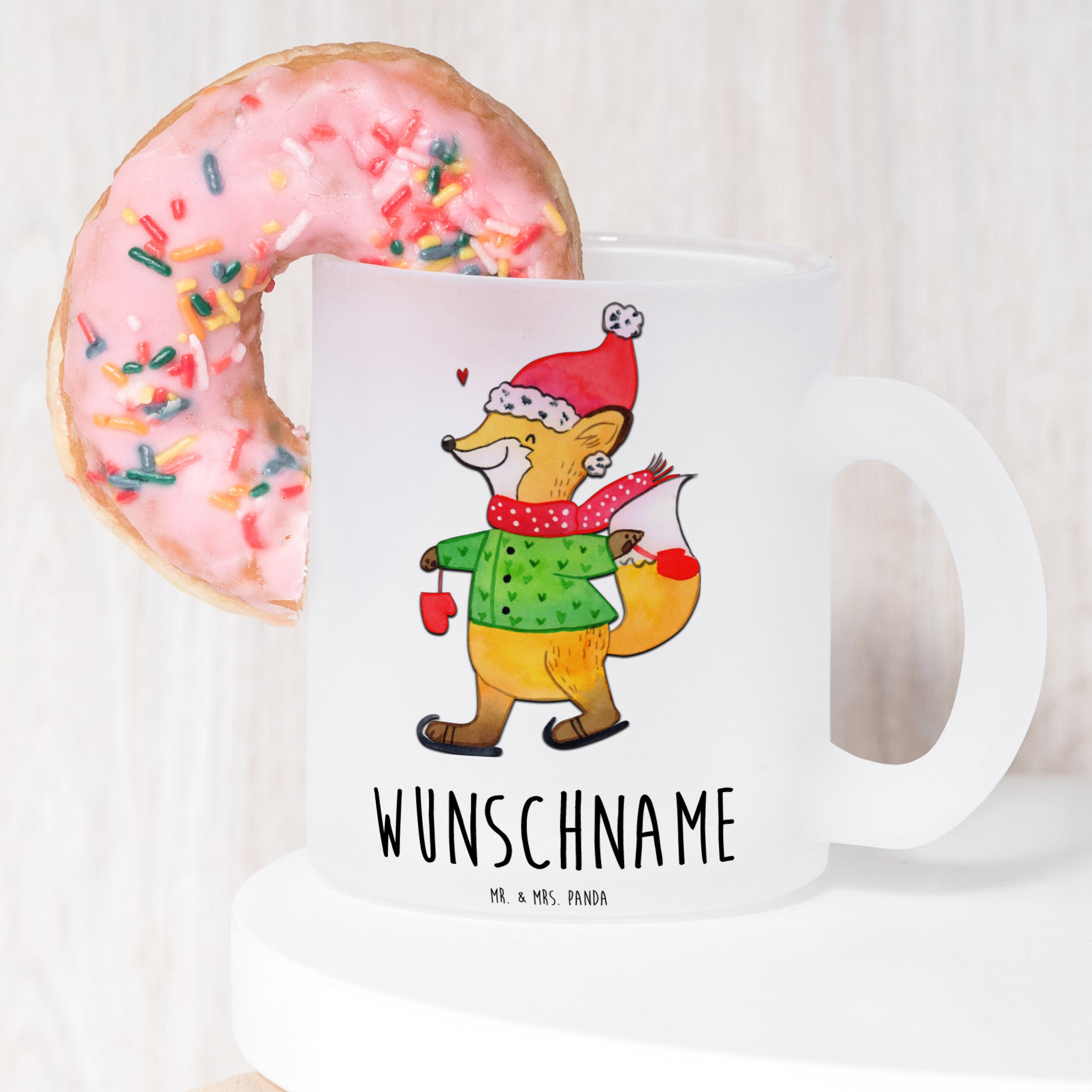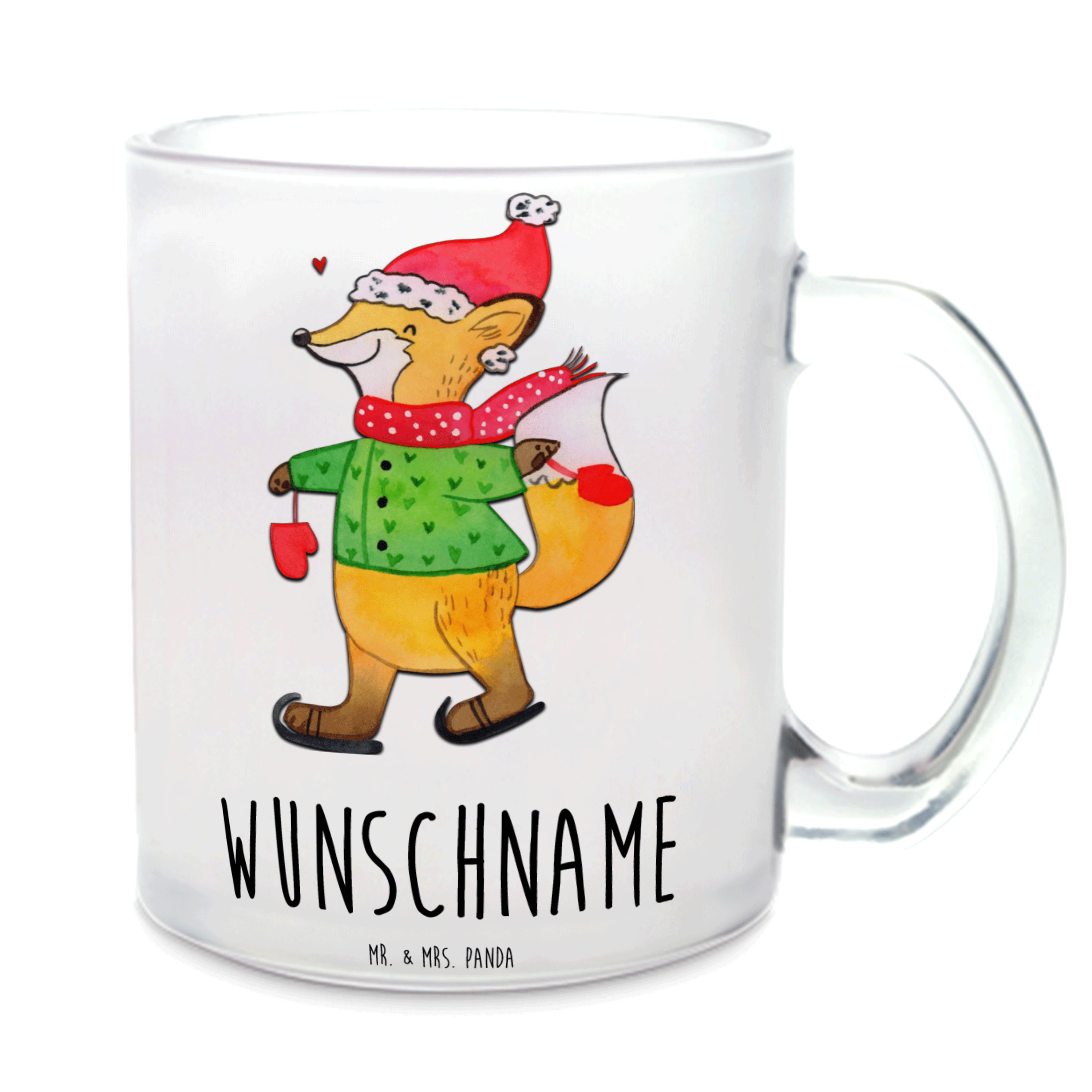Personalisierte Teetasse Fuchs Schlittschuhe