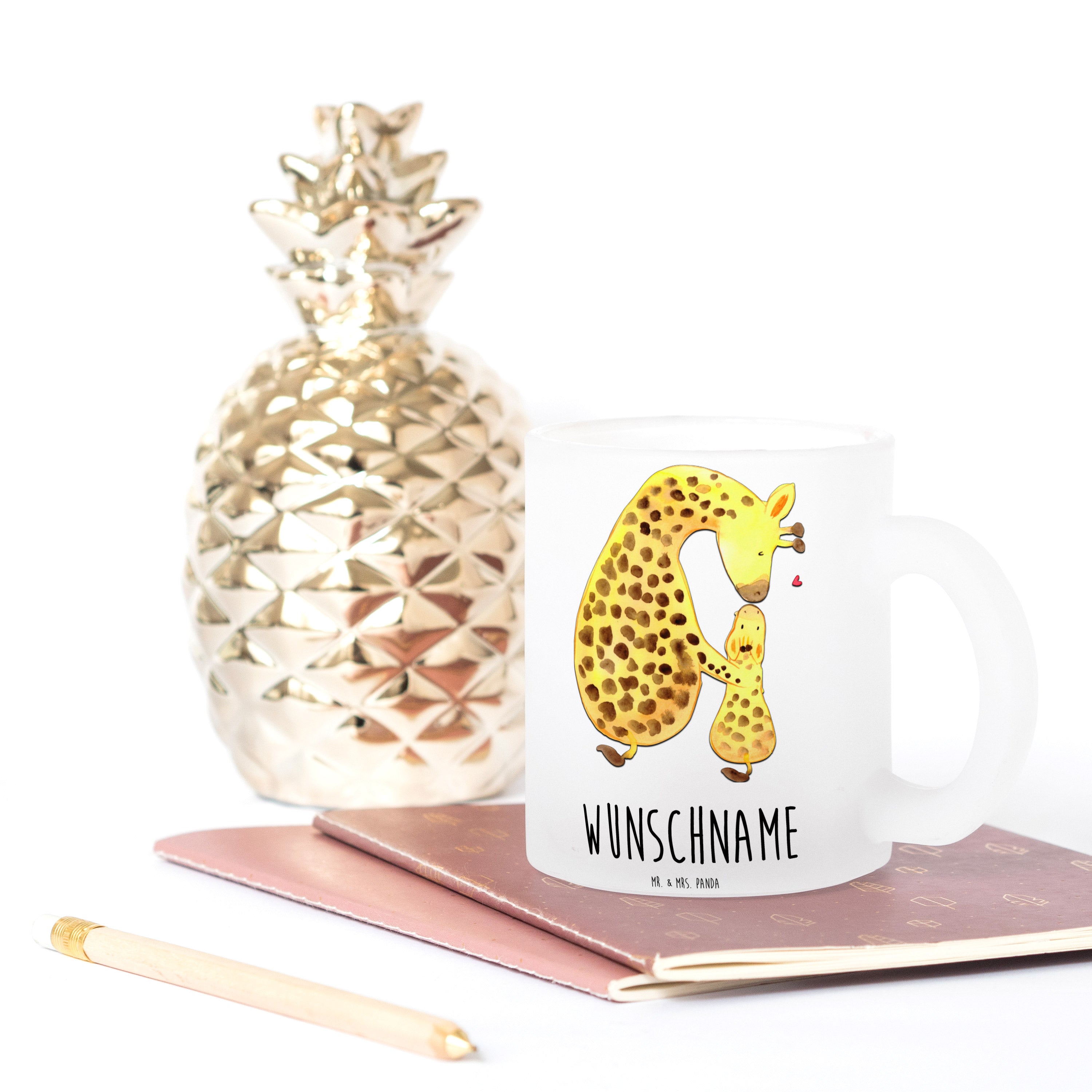 Genieße den Luxus einer personalisierten Teetasse von Mr. & Mrs. Panda. Maße von 95 mm Höhe und 80 mm Durchmesser. Diese Tasse aus robustem Glas, 3 mm dick, ist speziell für den Genuss deiner Lieblingsgetränke konzipiert. Lasst euren Teebecher mit dem Namen oder einem bedeutungsvollen Satz verschönern, um jeden Schluck zu etwas ganz Besonderem zu machen. Ihre satinierte Oberfläche und der kratzfeste, hitzebeständige Aufdruck unterstreichen das erlesene Design. Mit Liebe zum Detail gefertigt, passt diese Tasse sowohl zu festlichen Anlässen als auch zum gemütlichen Alltag. Eine manuelle Reinigung wird empfohlen, um die Schönheit deiner personalisierten Teetasse langfristig zu bewahren.