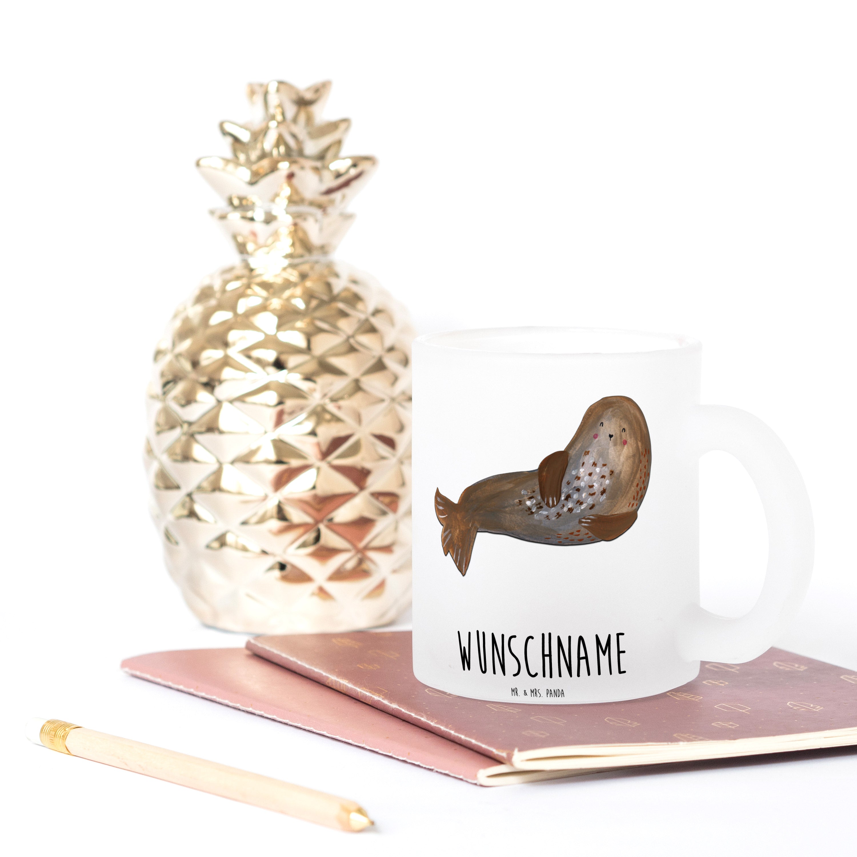 Verwandle jeden Tee-Moment in eine persönliche Erlebnisreise mit der personalisierten Teetasse von Mr. & Mrs. Panda. Dimensioniert mit 95 mm Höhe, 80 mm Durchmesser und einem Gewicht von 390 g, repräsentiert sie die ideale Kombination aus Stil und Zweckmäßigkeit. Das 3 mm dicke, extra stabile Glas garantiert Langlebigkeit und Widerstandsfähigkeit. Das Highlight: personalisiere die Tasse mit deinem Namen oder einem besonderen Satz und mache sie zu einem wahren Unikat. Die Tasse zeichnet sich durch eine satinierte Oberfläche und einen kratzfesten, hitzebeständigen Aufdruck aus. Dies macht sie zu einem Muss für jeden Teeliebhaber. Aufgrund der edlen Materialqualität empfehlen wir, die Tasse per Hand zu waschen, um sie in perfektem Zustand zu halten.