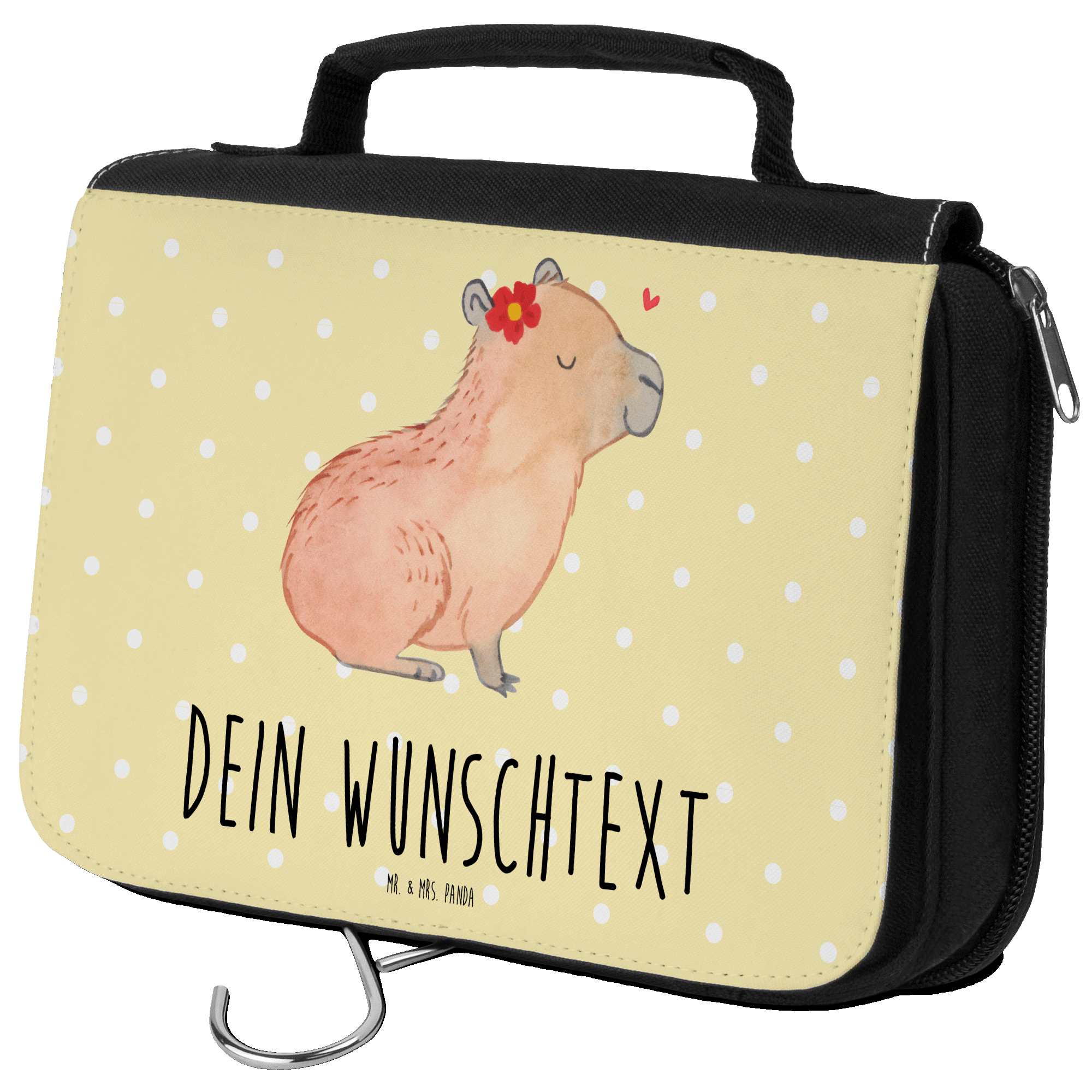 Entdecke den personalisierten Kulturbeutel von Mr. & Mrs. Panda, ideal für Deine Reisen oder als täglicher Begleiter. Mit Maßen von 225 mm x 225 mm und aus hochwertigem Polyester mit Baumwolle gefertigt, bietet dieser Kulturbeutel nicht nur ausreichend Platz für Deine Kosmetik- und Hygieneprodukte, sondern überzeugt ebenso durch sein wasserabweisendes Material. Edel und langlebig bedruckt mit Sprüchen und süßen Motiven, kannst Du den Kulturbeutel zusätzlich mit Deinem Wunschtext oder Wunschnamen personalisieren, was ihn zu einem unverwechselbaren Unikat macht. Die mehreren mit Reißverschlüssen verschließbaren Fächer, einschließlich einer großen Innentasche sowie einer Außentasche mit Netzfächern, bieten optimale Organisation und leichten Zugriff auf all Deine Utensilien. Ein Must-Have für jede Dame oder jeden Herren, die Wert auf Stil, Individualität und Funktionalität legen.