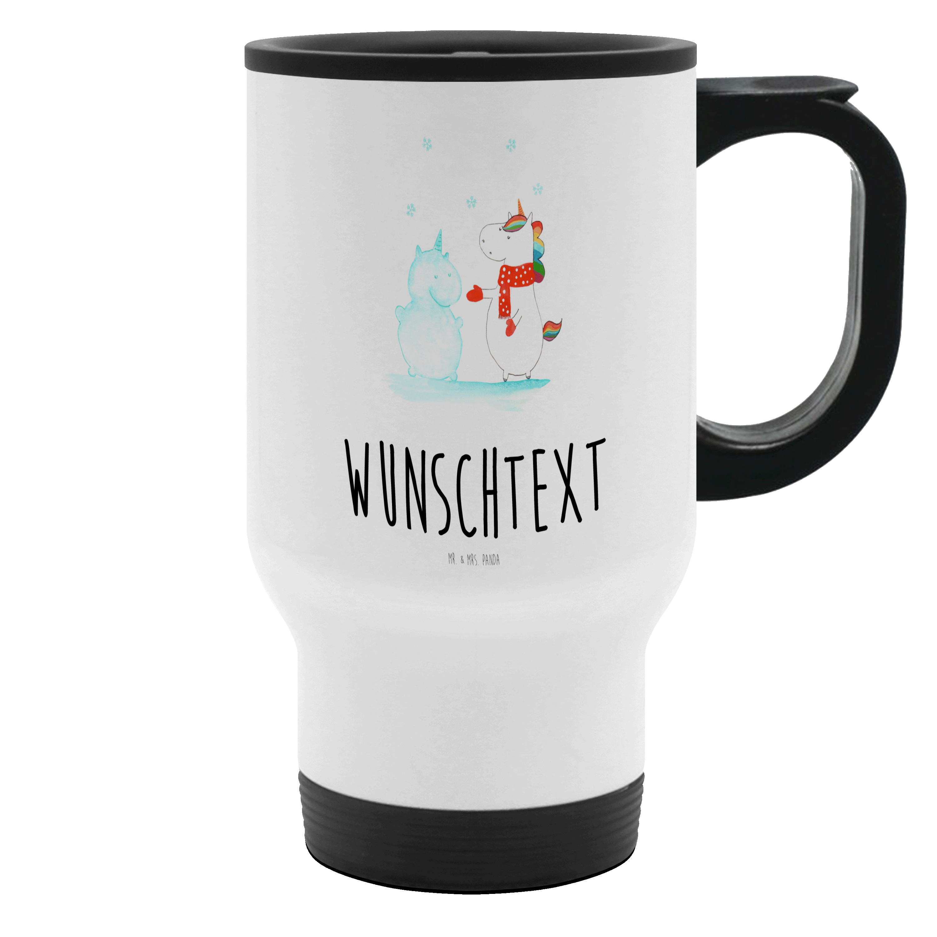 Personalisierter Thermobecher Einhorn Schneemann