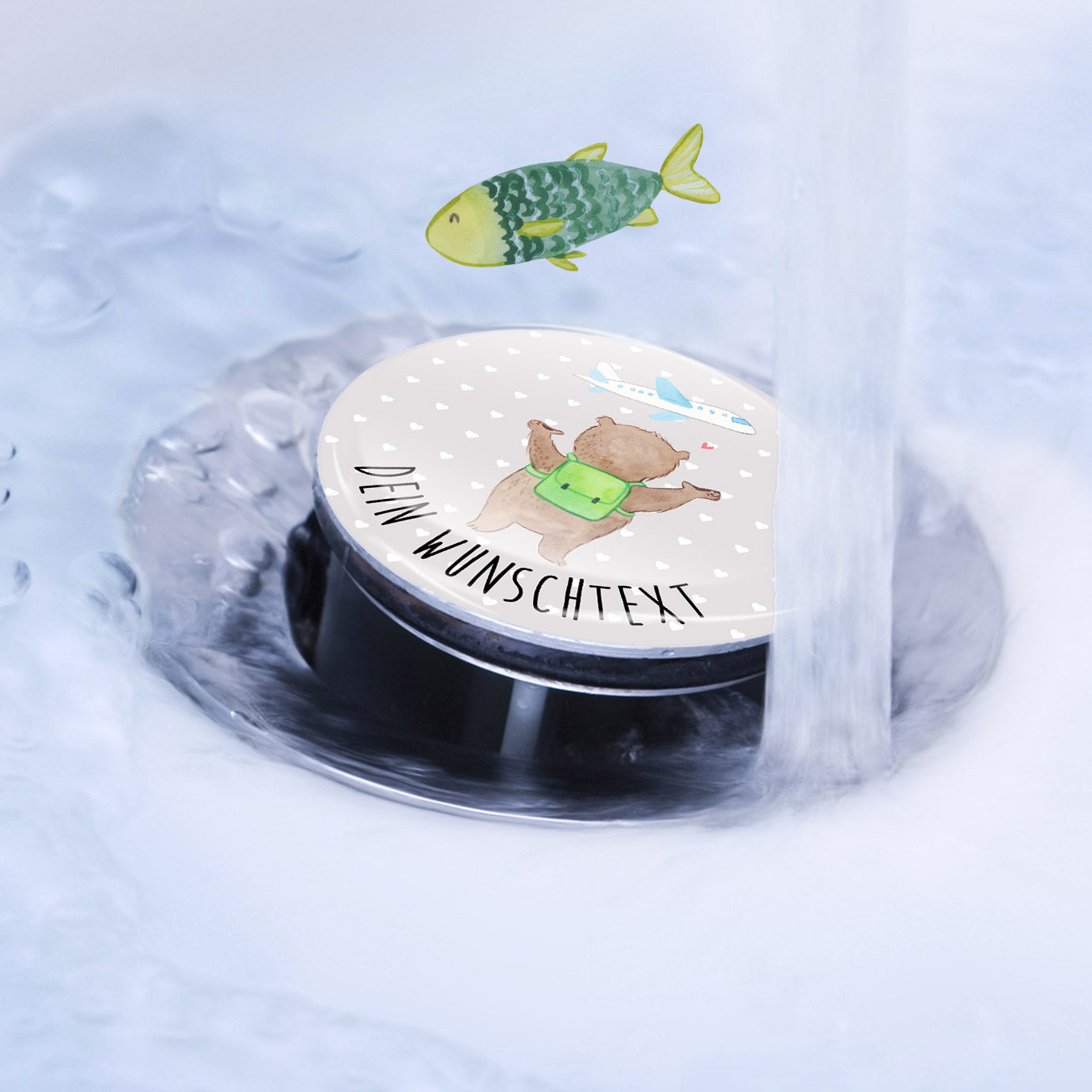 Personalisierter Waschbecken Stöpsel Bär Flugzeug
