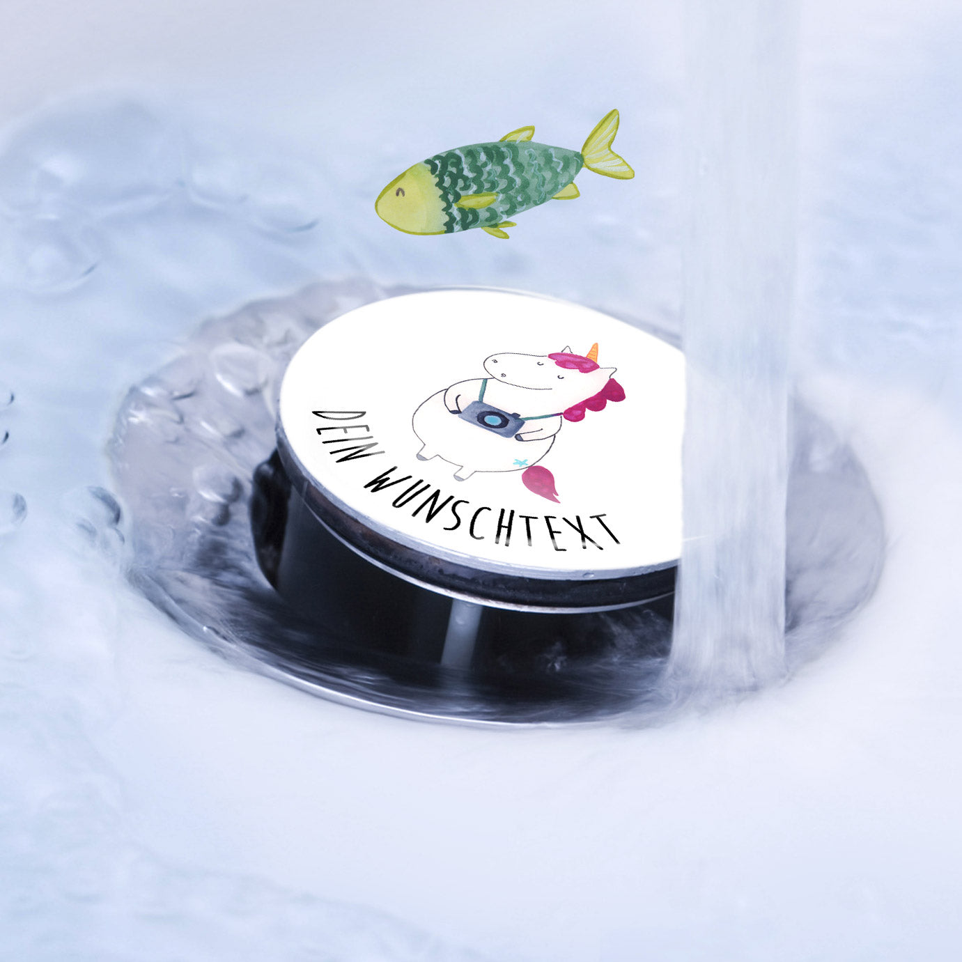 Personalisierter Waschbecken Stöpsel Einhorn Fotograf