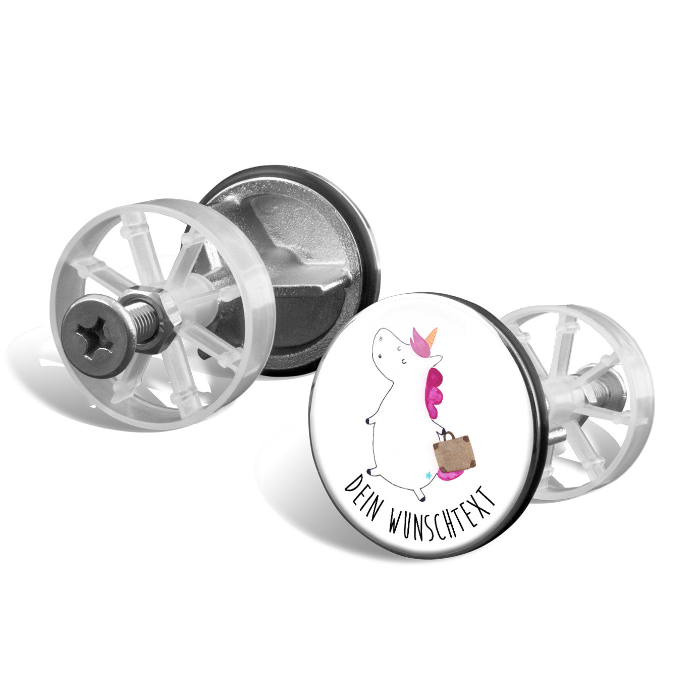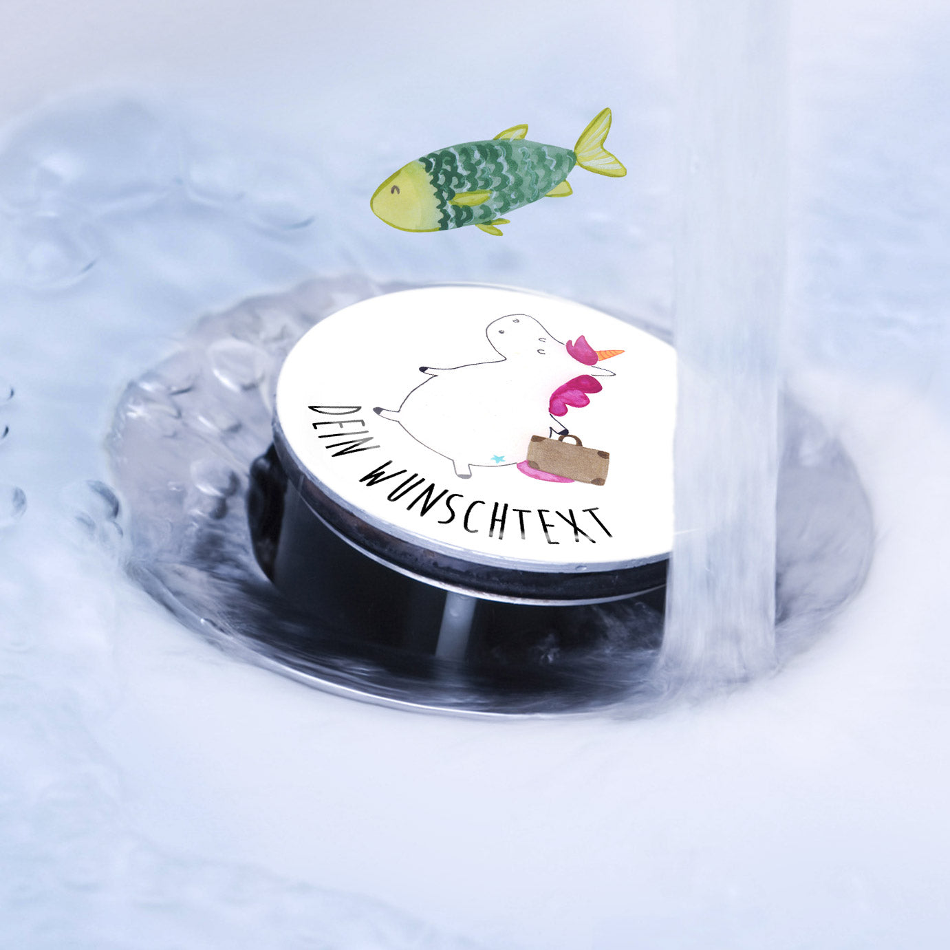 Personalisierter Waschbecken Stöpsel Einhorn Koffer