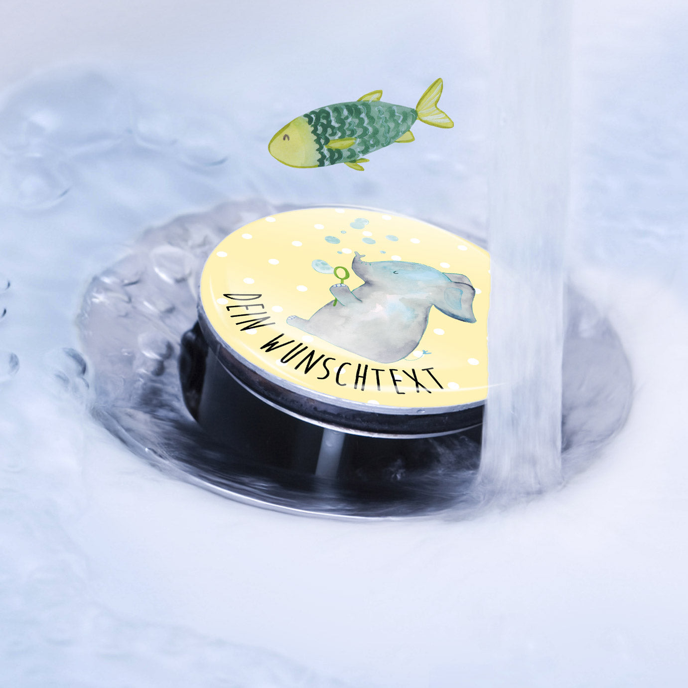 Personalisierter Waschbecken Stöpsel Elefant Seifenblasen