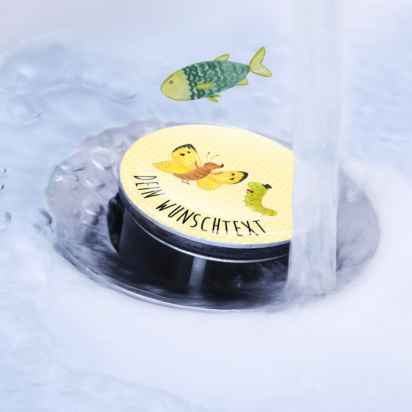 Personalisierter Waschbecken Stöpsel Raupe & Schmetterling