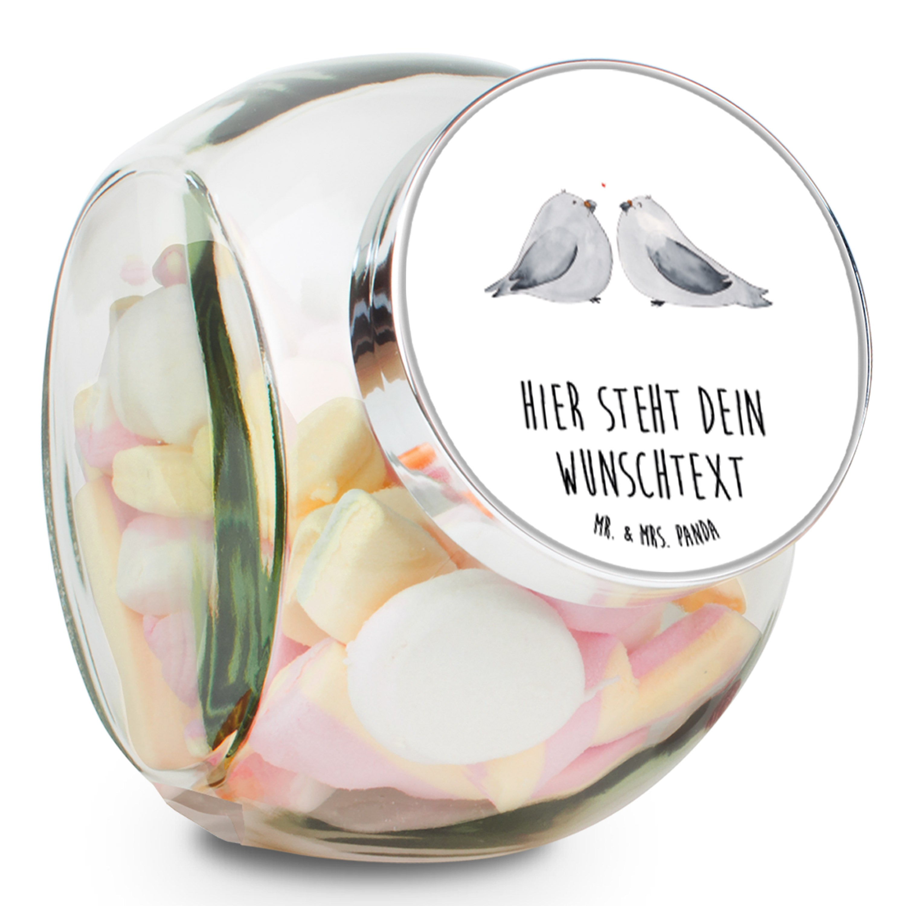 Personalisiertes Bonbonglas Turteltauben Liebe