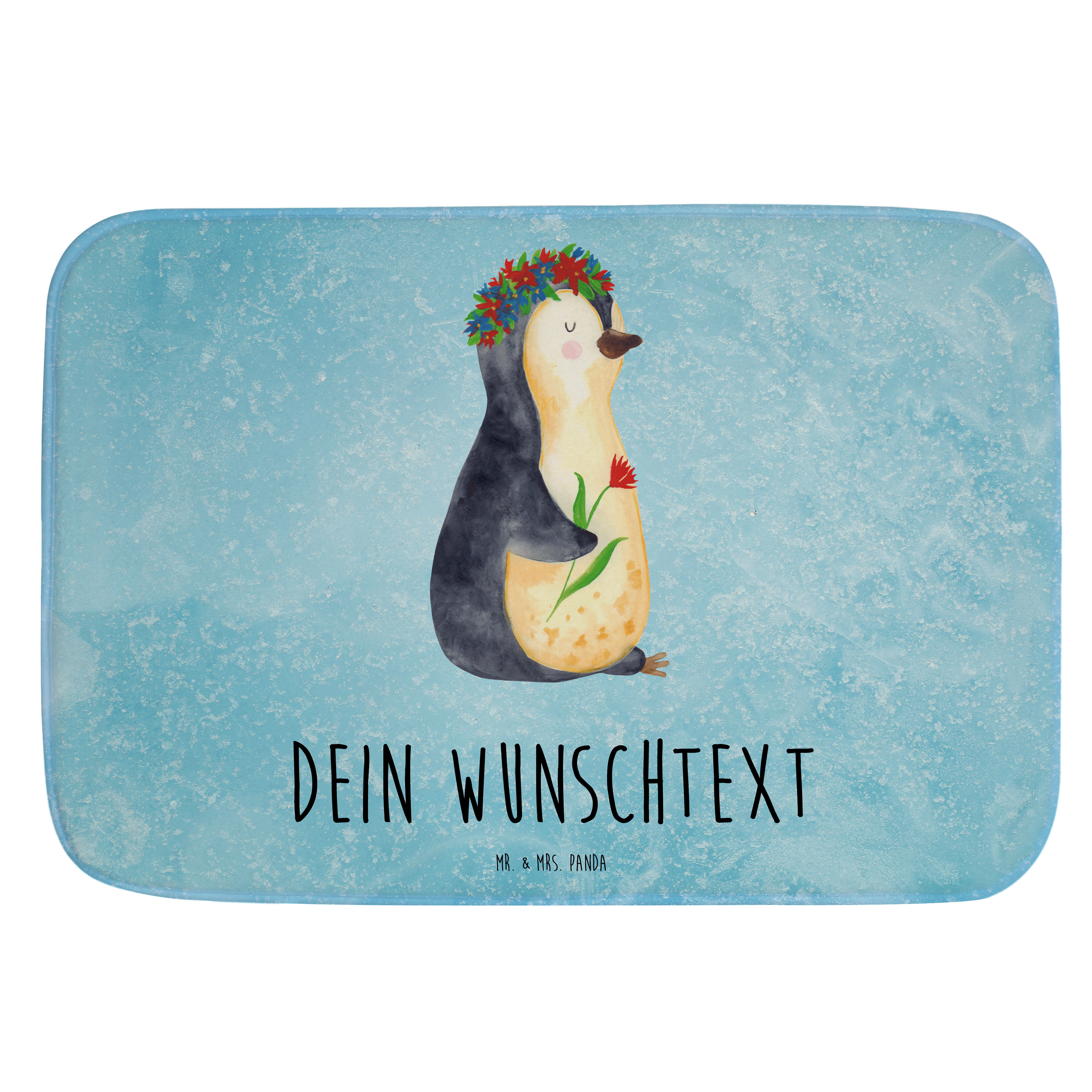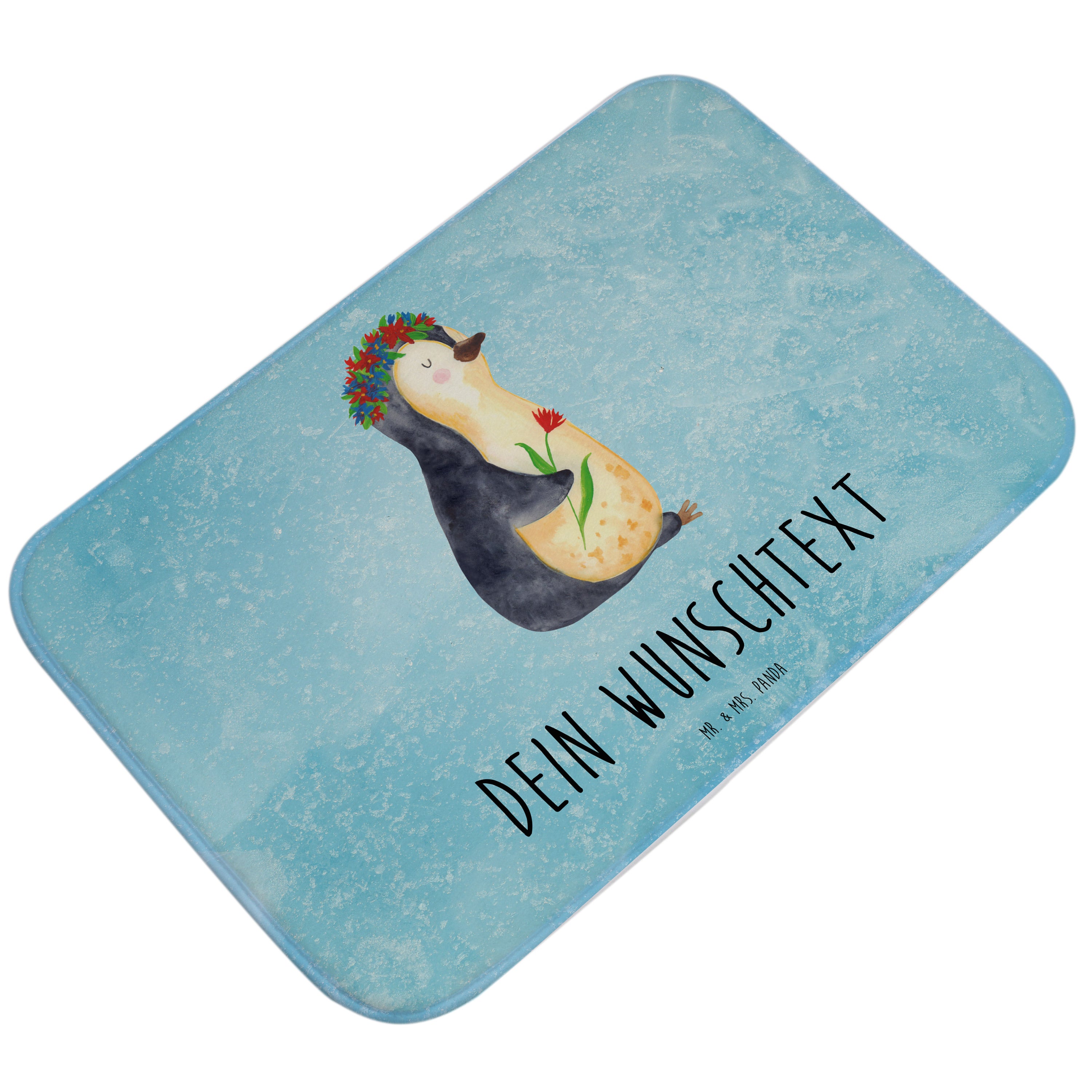Personalisierter Badvorleger Pinguin Blumen