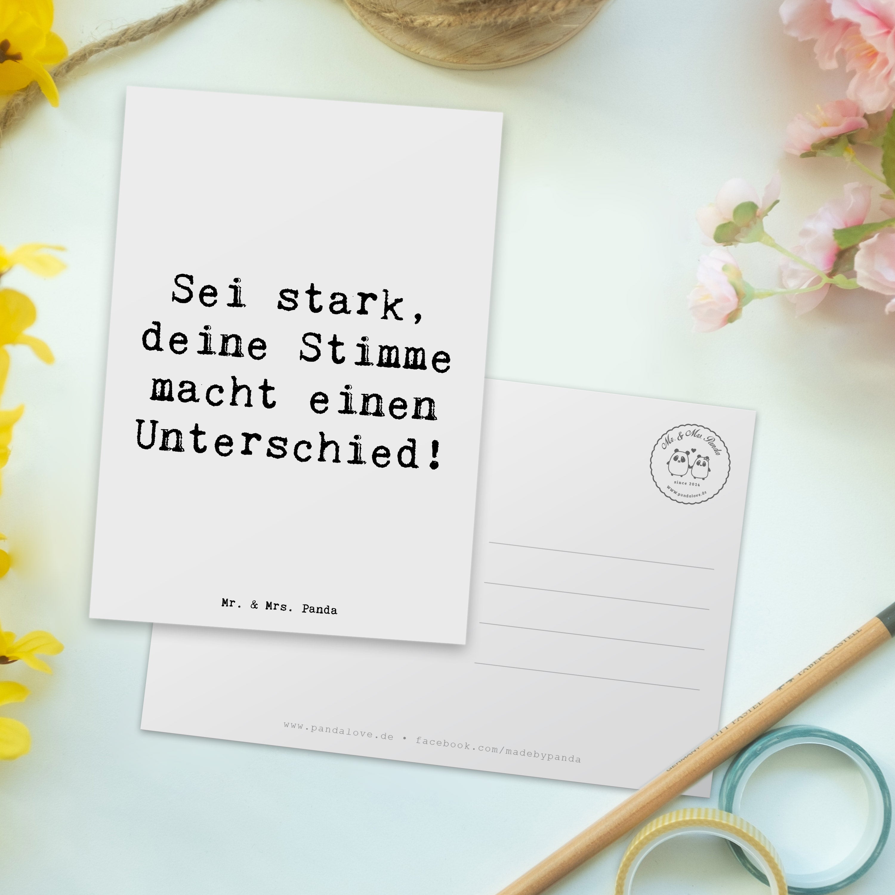 Eine kraftvolle Erinnerung daran, dass jede Stimme zählt und du die Macht hast, etwas zu bewirken. Deine Meinung ist wichtig und kann einen Unterschied machen, also sei mutig und lass sie gehört werden. Genau wie Mr. & Mrs. Panda stets den Mut haben, ihre bunten und herzlichen Botschaften mit der Welt zu teilen, soll auch deine Stimme die Welt bereichern.