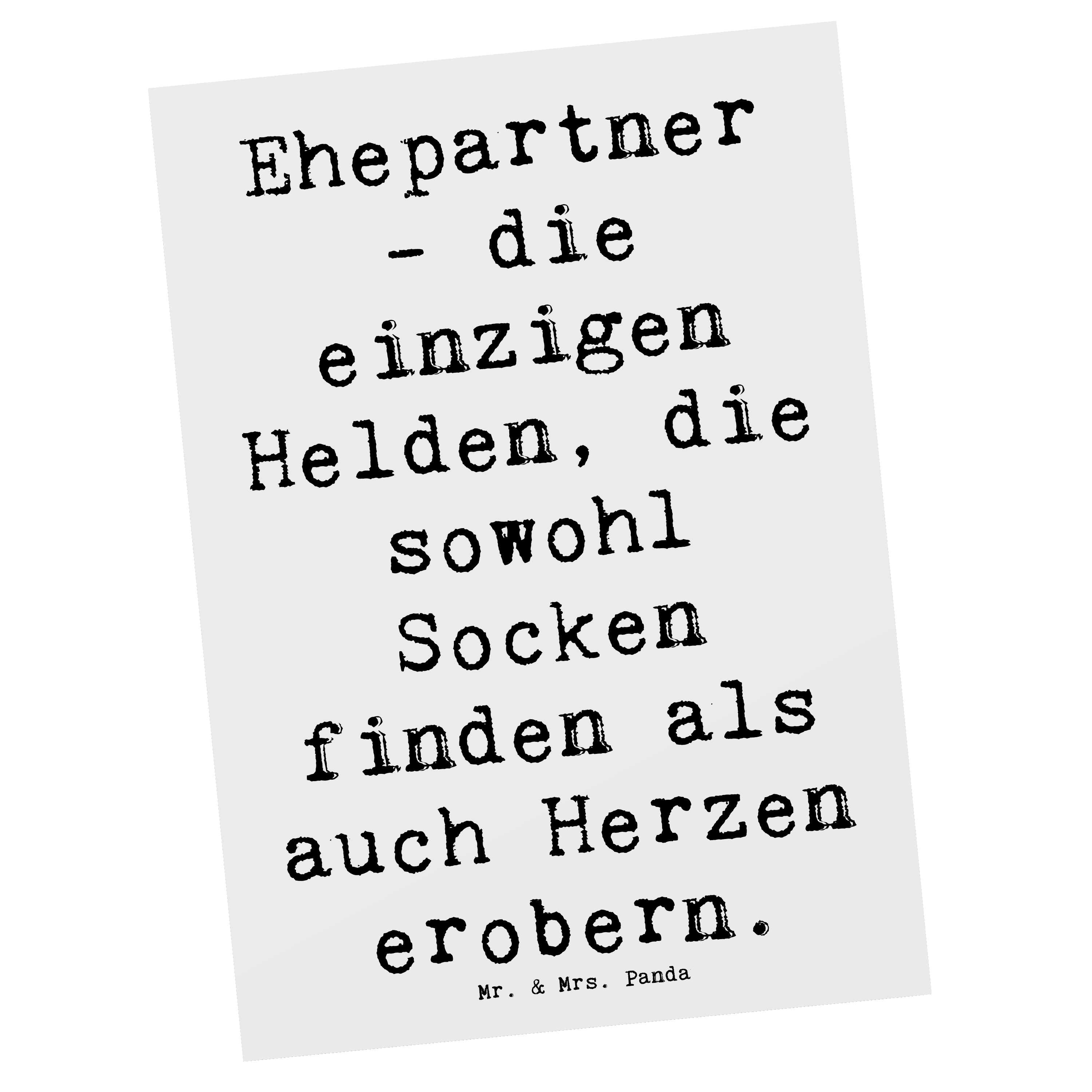 Postkarte Ehepartner: die einzigen Helden, die sowohl Socken finden als auch Herzen erobern.