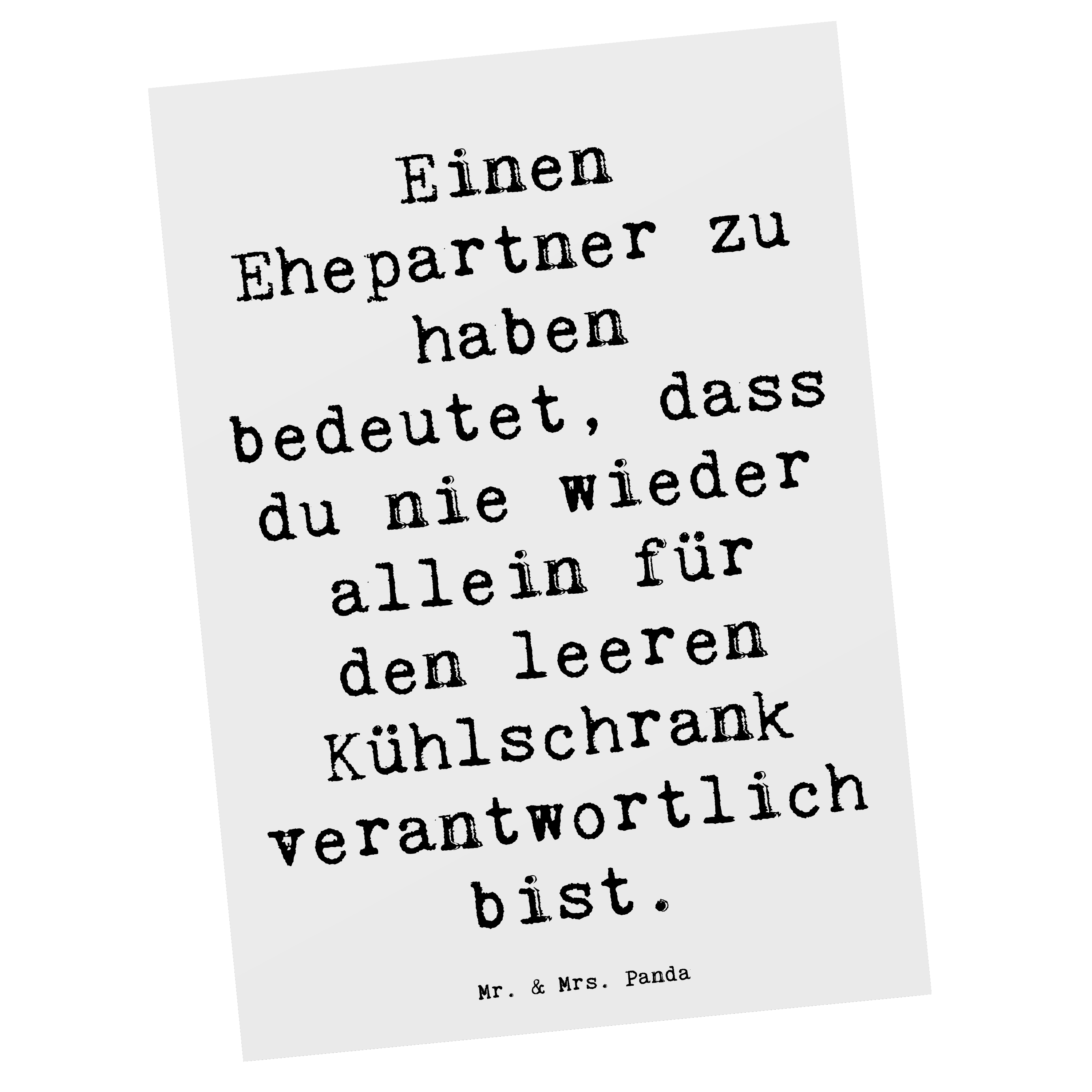 Postkarte Einen Ehepartner zu haben bedeutet, dass du nie wieder allein für den leeren Kühlschrank verantwortlich bist.