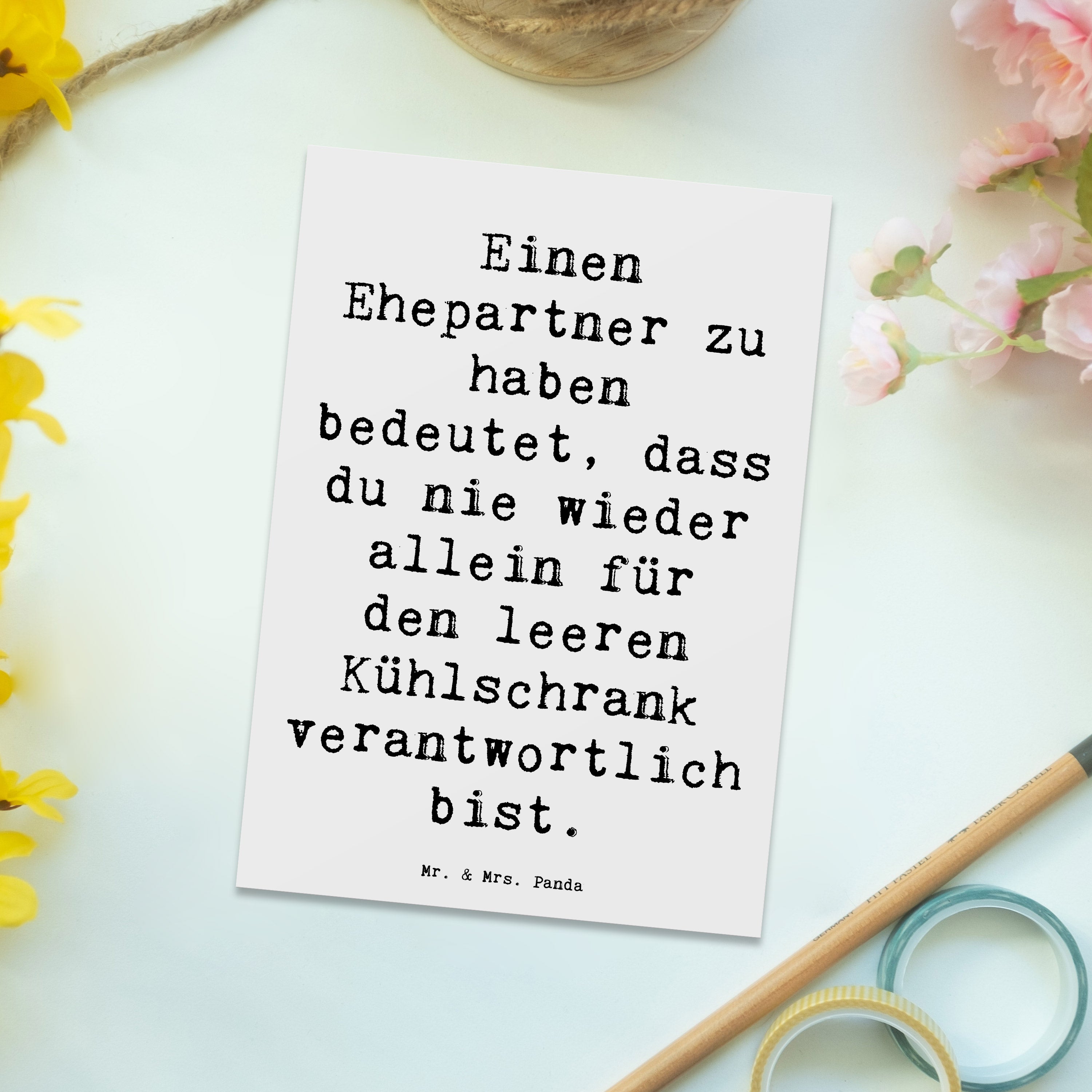 Einen Ehepartner zu haben bedeutet, dass du nie wieder allein für den leeren Kühlschrank verantwortlich bist. Es ist eine liebevolle Erinnerung daran, dass ihr das Leben gemeinsam meistert und füreinander da seid, sowohl in glücklichen als auch in alltäglichen Momenten.