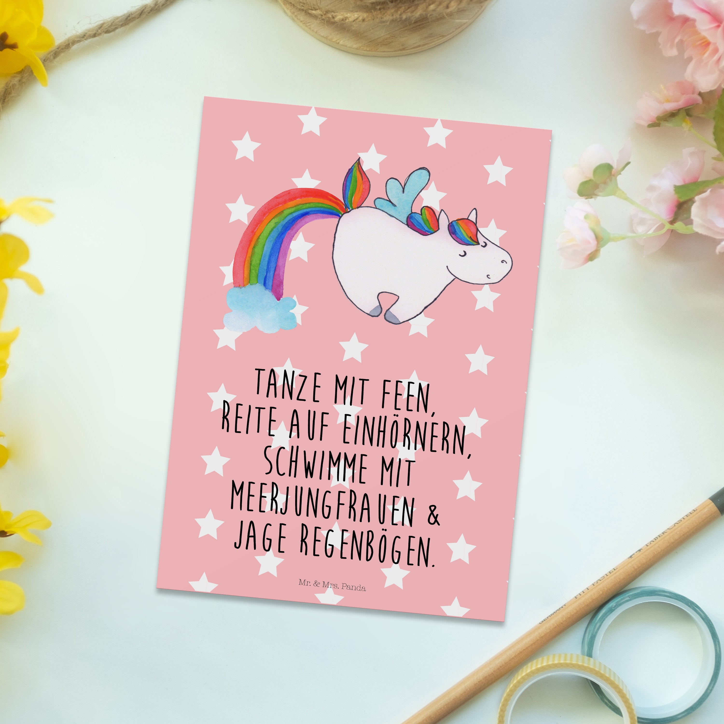Mit einer Postkarte von Mr. & Mrs. Panda sendest du nicht nur eine Nachricht, sondern auch ein kleines Stück Herz. Jede Karte ist ein Unikat, perfekt geeignet als Einladungskarte für besondere Anlässe oder als kleine Aufmerksamkeit zwischendurch. Diese Postkarten sind nicht nur ein Blickfang wegen ihrer liebevoll gestalteten Motive, sondern auch hochgradig personalisierbar dank der blanko Rückseite. Mit den Maßen 150 mmx1 mm und aus hochqualitativem Karton hergestellt, garantieren sie Zufriedenheit und langanhaltende Freude. Die langlebige Tinte und die hochglänzende Vorderseite sorgen dafür, dass deine Nachrichten immer in Erinnerung bleiben.