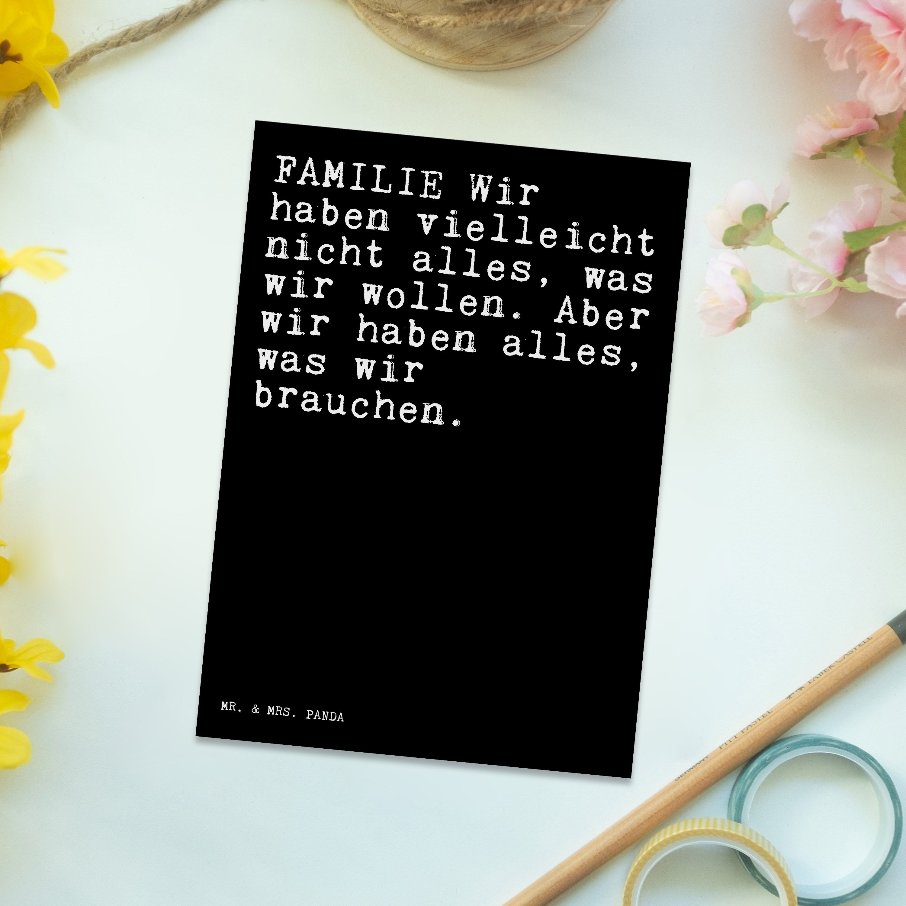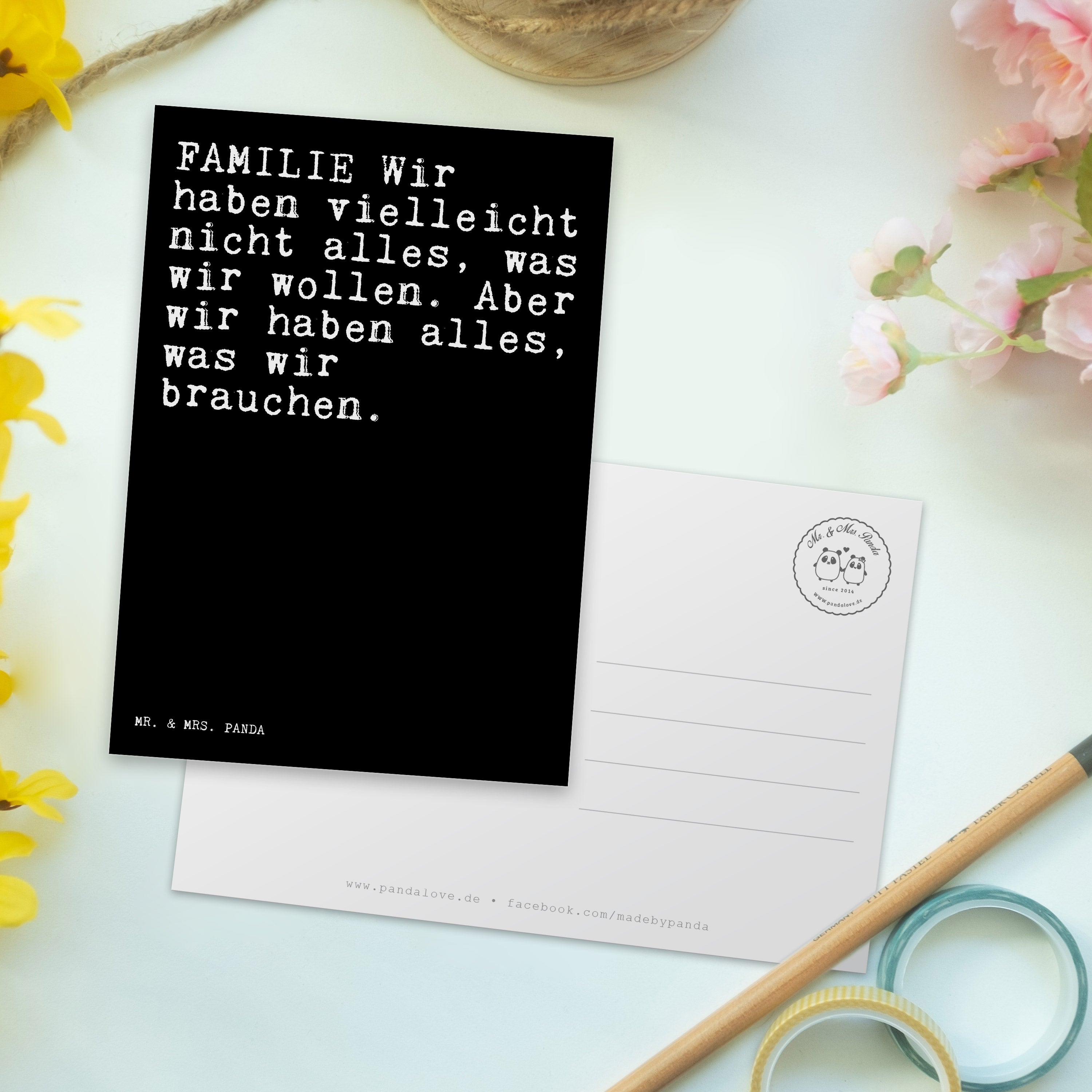 Mit einer Postkarte von Mr. & Mrs. Panda sendest du nicht nur eine Nachricht, sondern auch ein kleines Stück Herz. Jede Karte ist ein Unikat, perfekt geeignet als Einladungskarte für besondere Anlässe oder als kleine Aufmerksamkeit zwischendurch. Diese Postkarten sind nicht nur ein Blickfang wegen ihrer liebevoll gestalteten Motive, sondern auch hochgradig personalisierbar dank der blanko Rückseite. Mit den Maßen 150 mmx1 mm und aus hochqualitativem Karton hergestellt, garantieren sie Zufriedenheit und langanhaltende Freude. Die langlebige Tinte und die hochglänzende Vorderseite sorgen dafür, dass deine Nachrichten immer in Erinnerung bleiben.