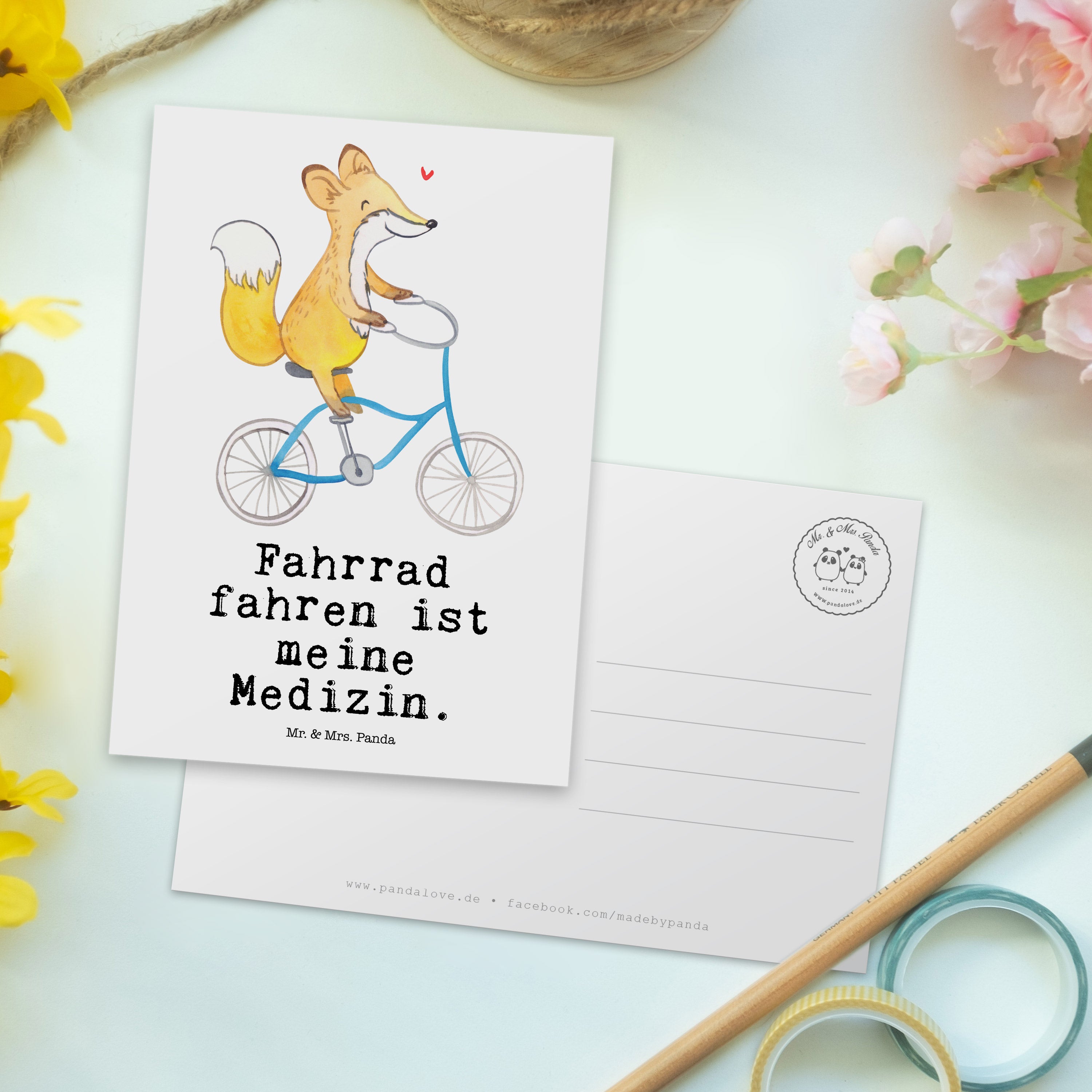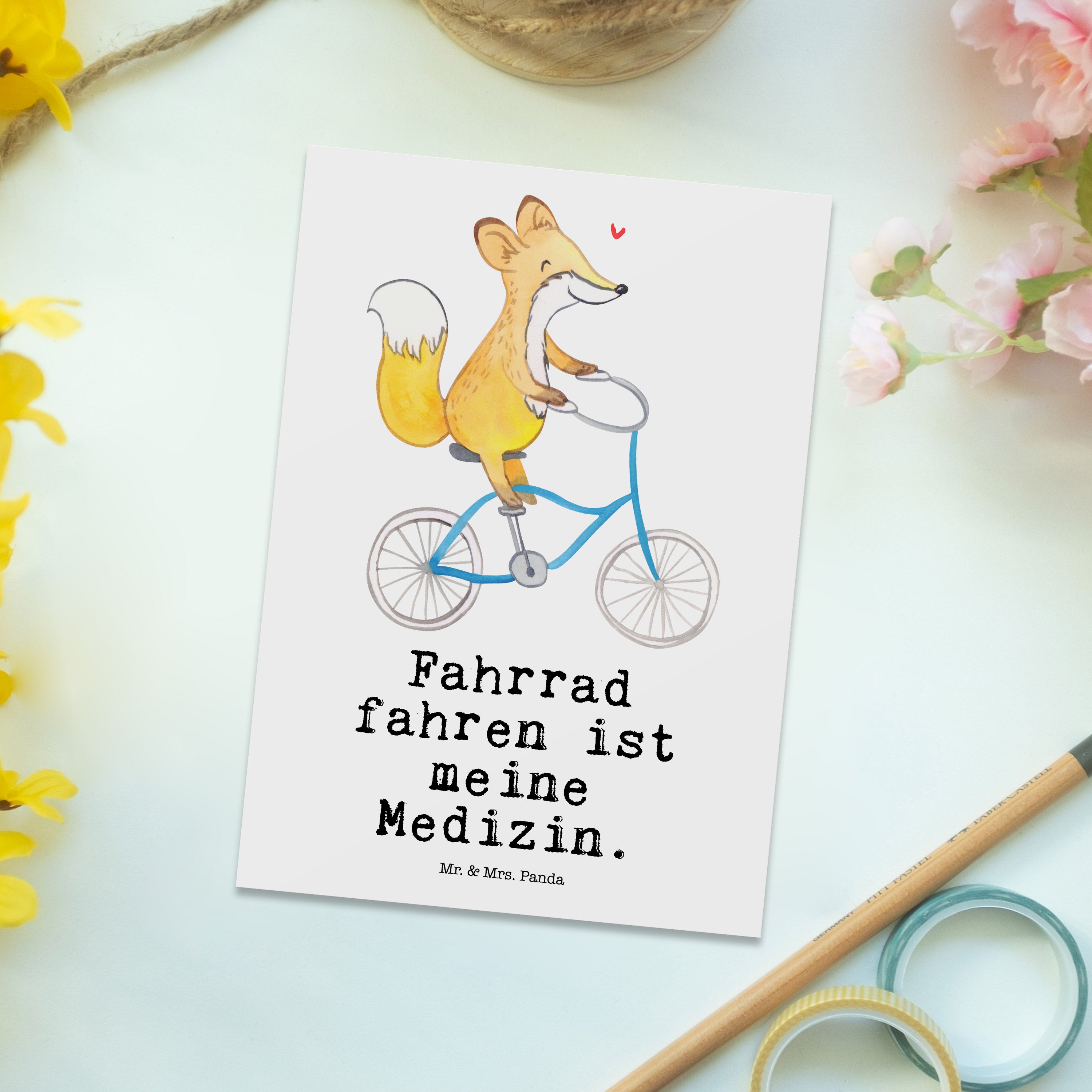 Postkarte Fuchs Fahrrad fahren