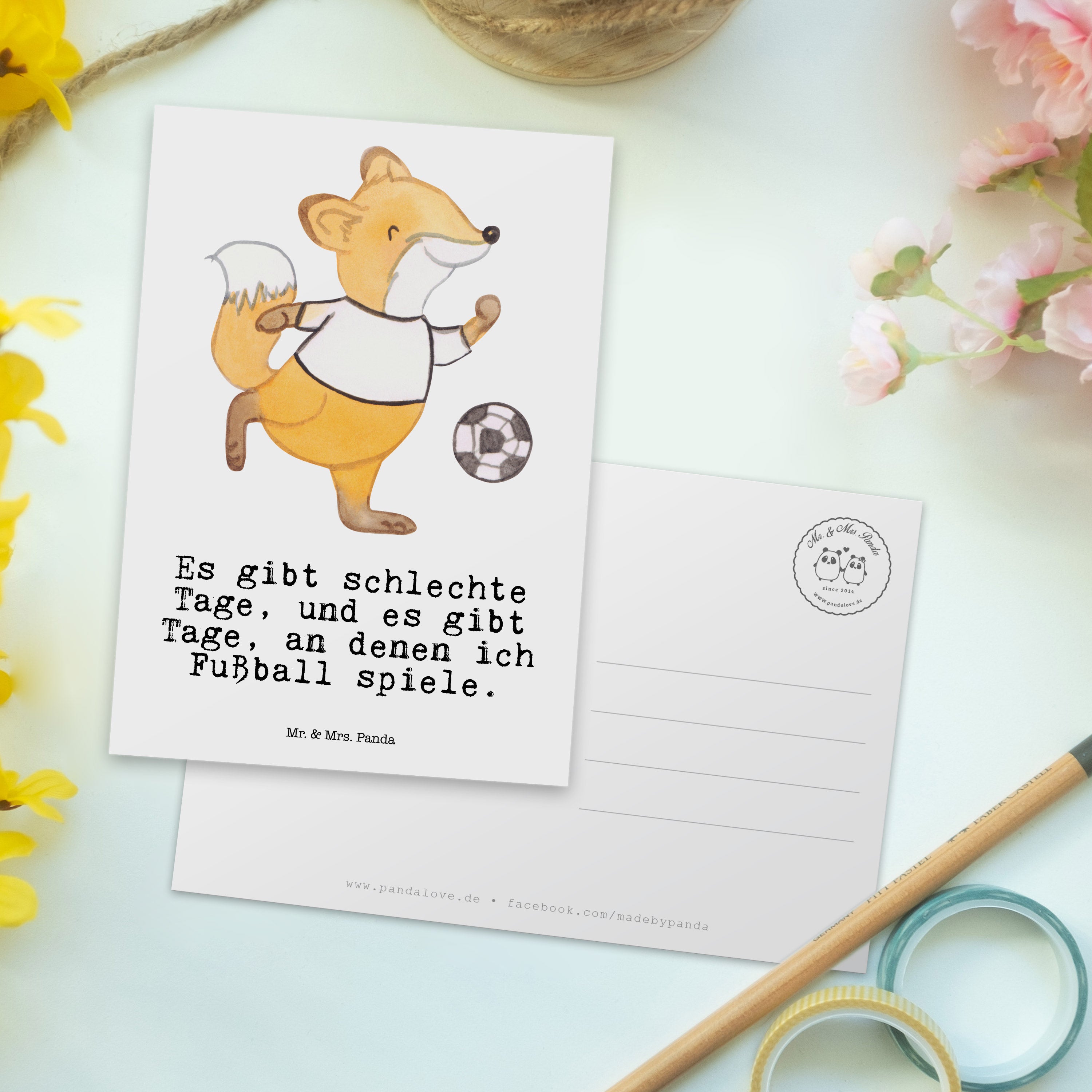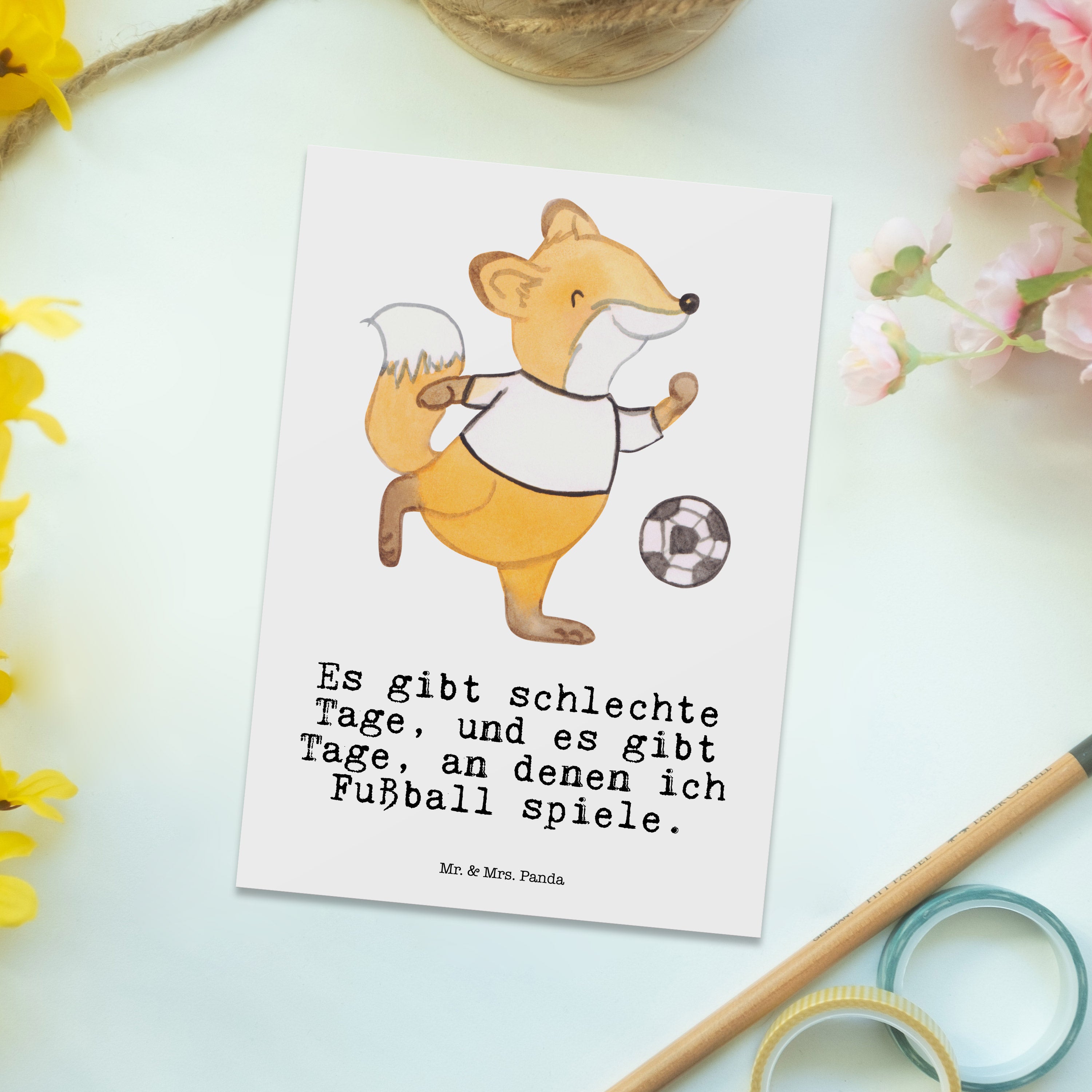 Postkarte Fuchs Fußball spielen