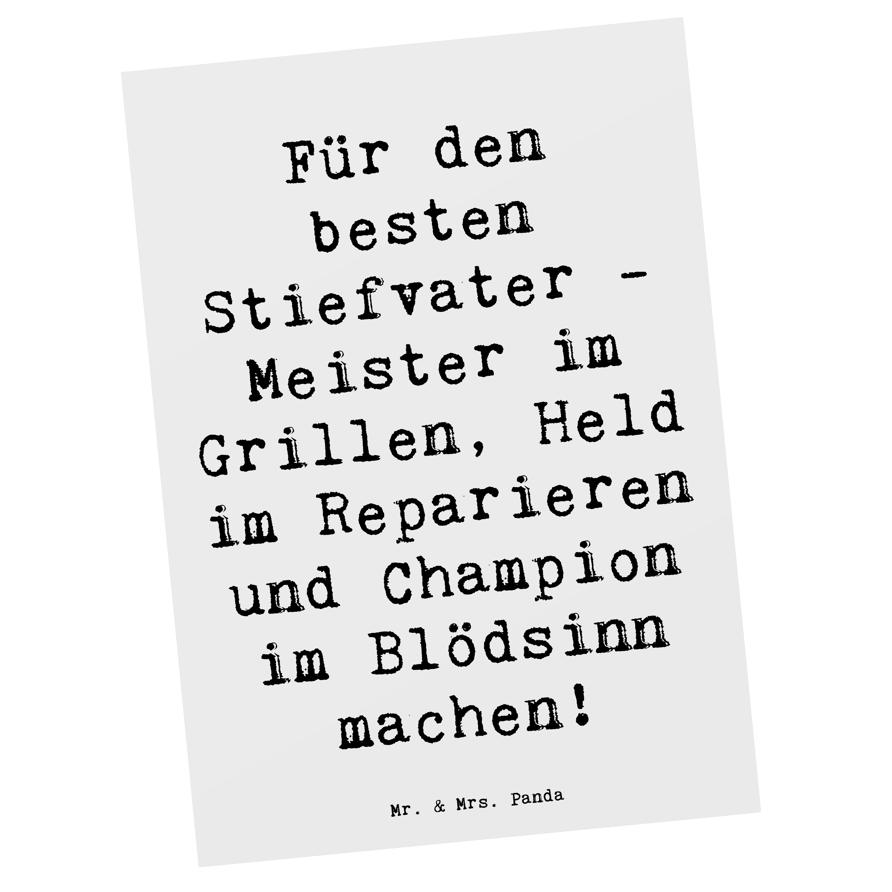 Postkarte Für den besten Stiefvater. Meister im Grillen, Held im Reparieren und Champion im Blödsinn machen!