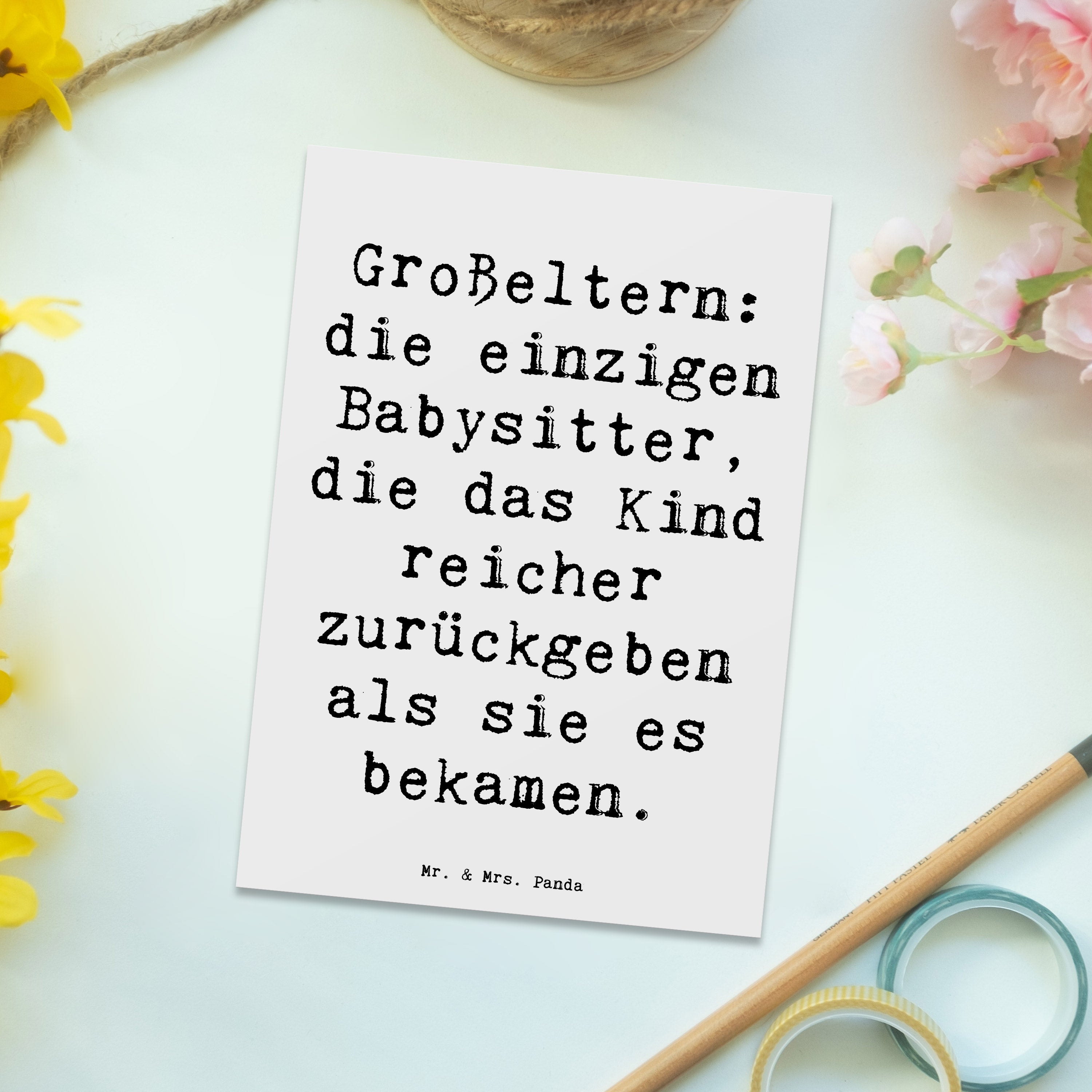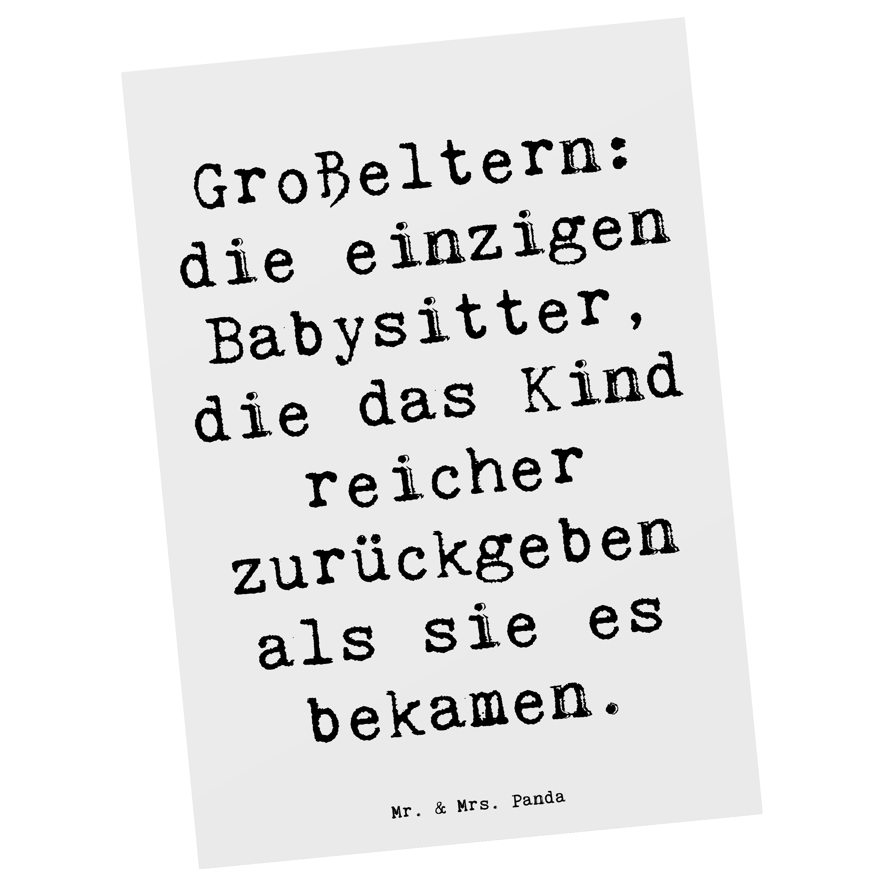 Postkarte Großeltern: die einzigen Babysitter, die das Kind reicher zurückgeben als sie es bekamen.