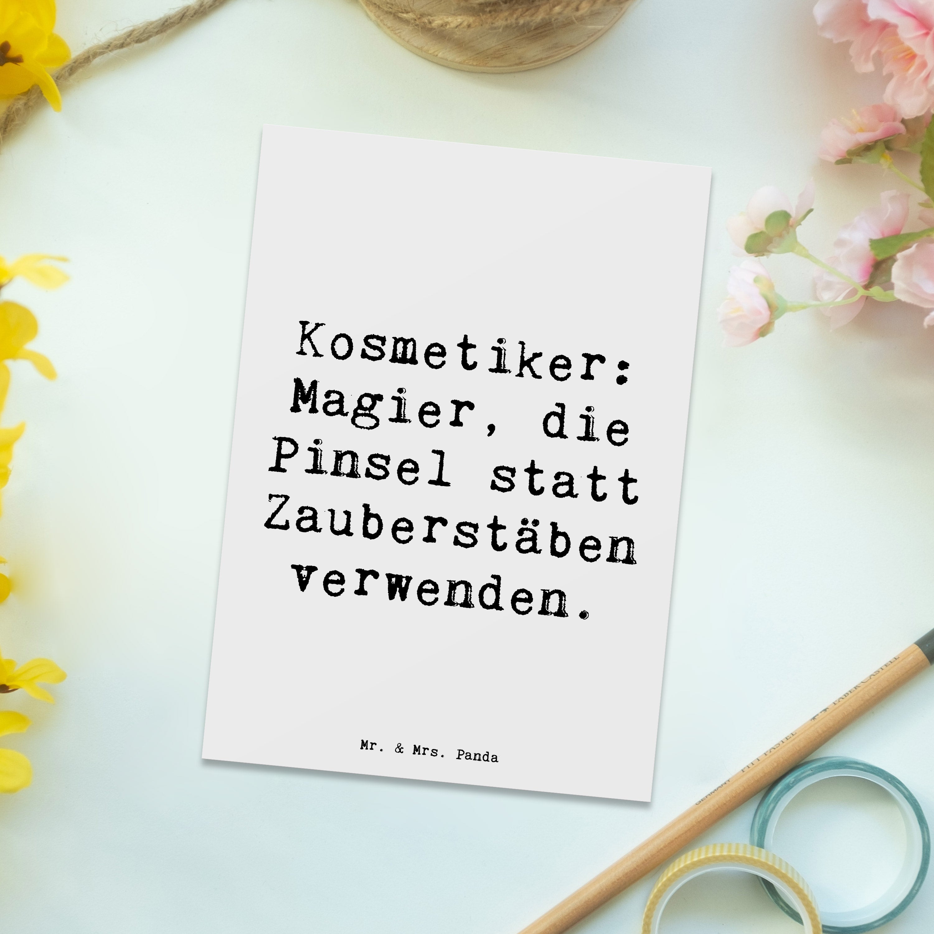 Postkarte Kosmetiker: Magier, die Pinsel statt Zauberstäben verwenden.