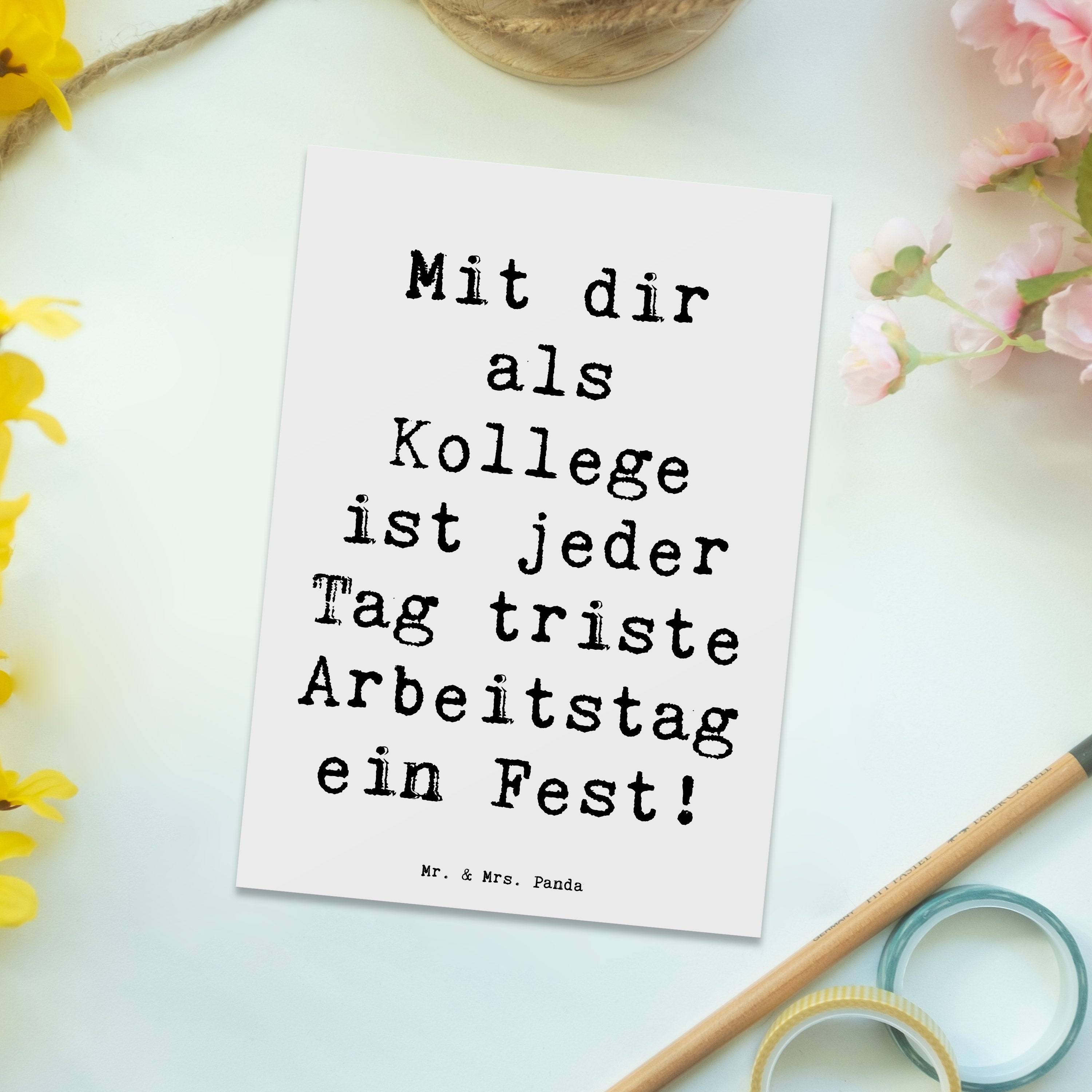 Mit einer Postkarte von Mr. & Mrs. Panda sendest du nicht nur eine Nachricht, sondern auch ein kleines Stück Herz. Jede Karte ist ein Unikat, perfekt geeignet als Einladungskarte für besondere Anlässe oder als kleine Aufmerksamkeit zwischendurch. Diese Postkarten sind nicht nur ein Blickfang wegen ihrer liebevoll gestalteten Motive, sondern auch hochgradig personalisierbar dank der blanko Rückseite. Mit den Maßen 150 mmx1 mm und aus hochqualitativem Karton hergestellt, garantieren sie Zufriedenheit und langanhaltende Freude. Die langlebige Tinte und die hochglänzende Vorderseite sorgen dafür, dass deine Nachrichten immer in Erinnerung bleiben.