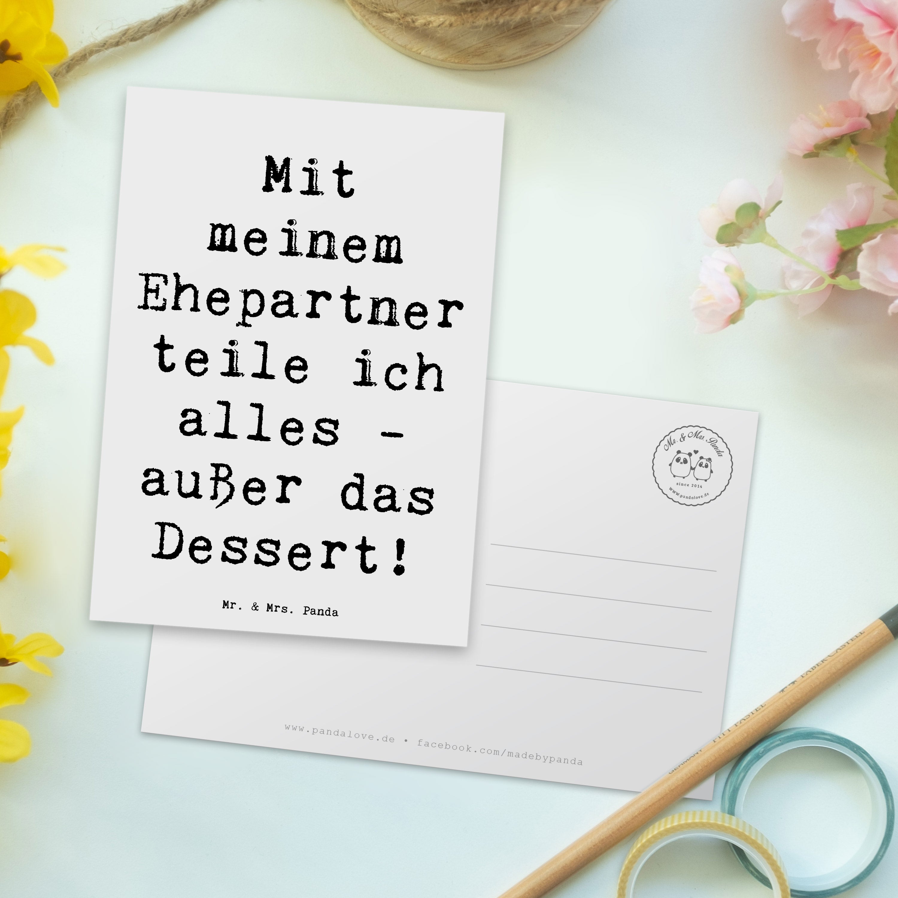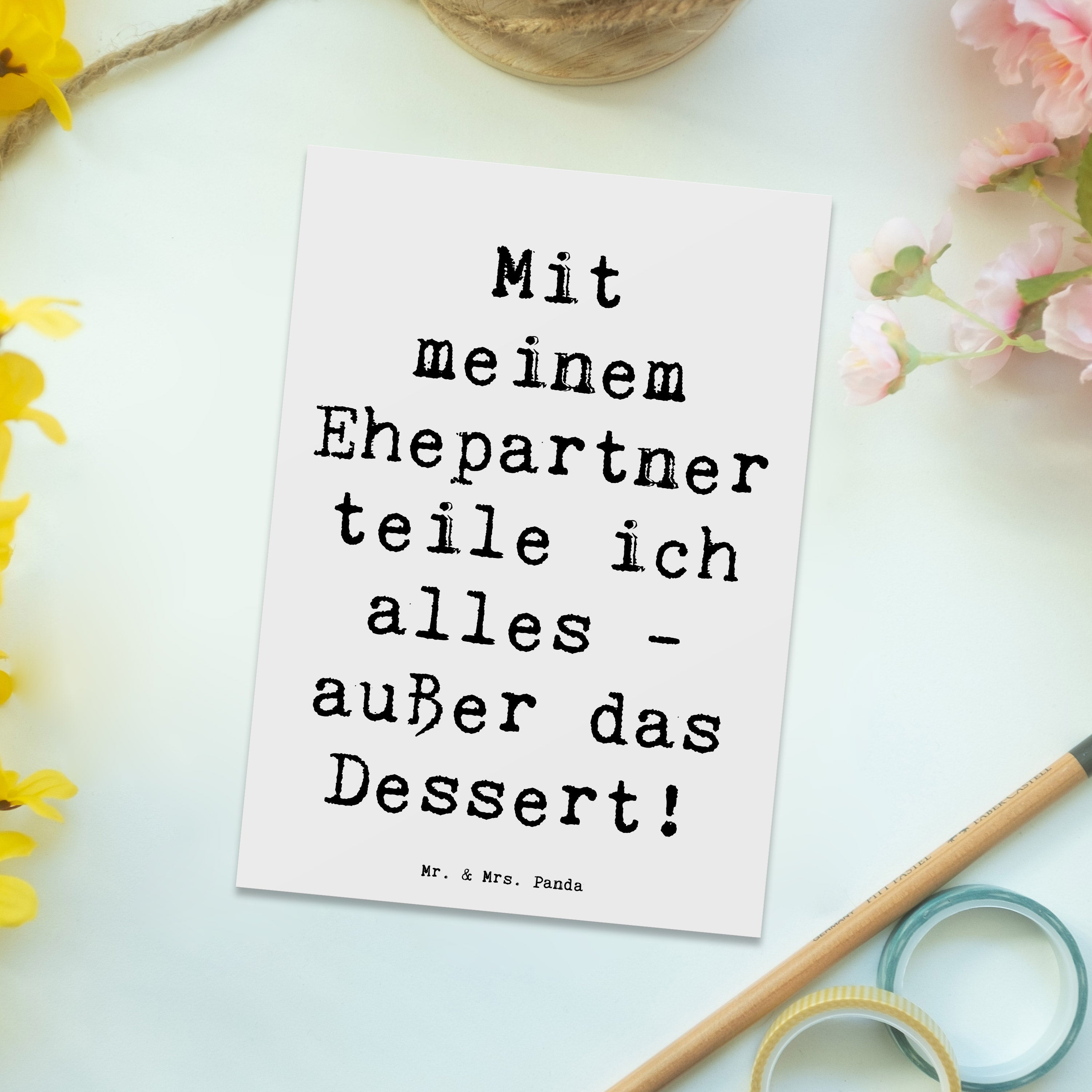 Postkarte Mit meinem Ehepartner teile ich alles, außer das Dessert!