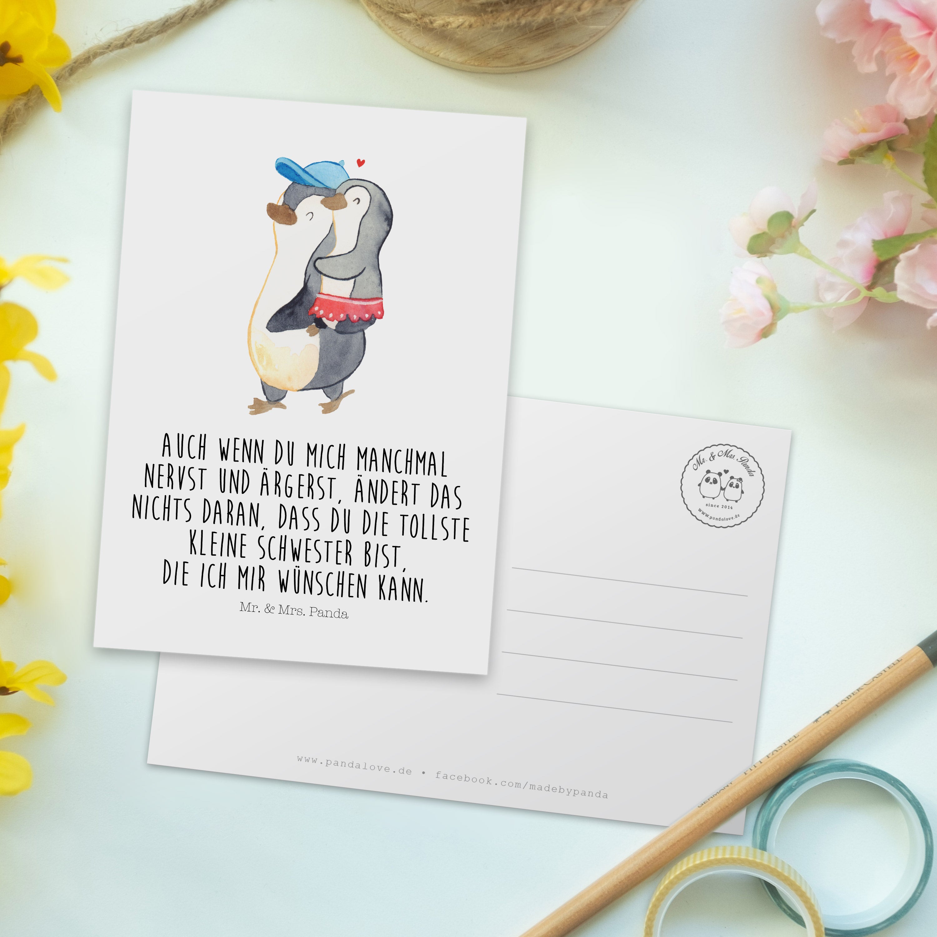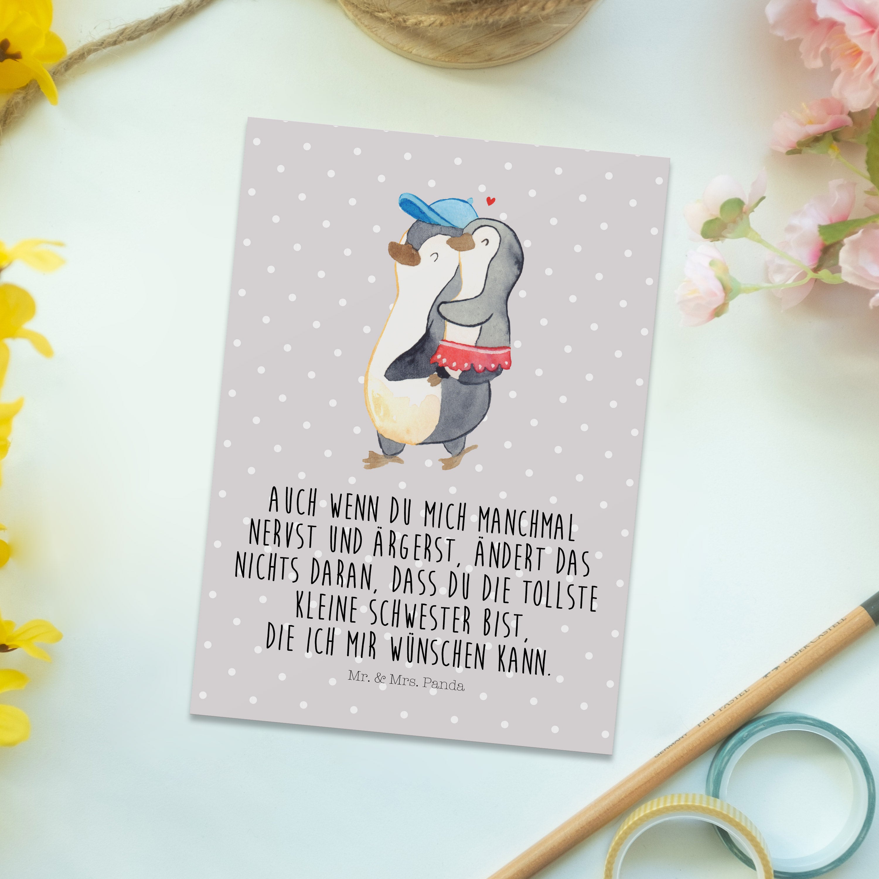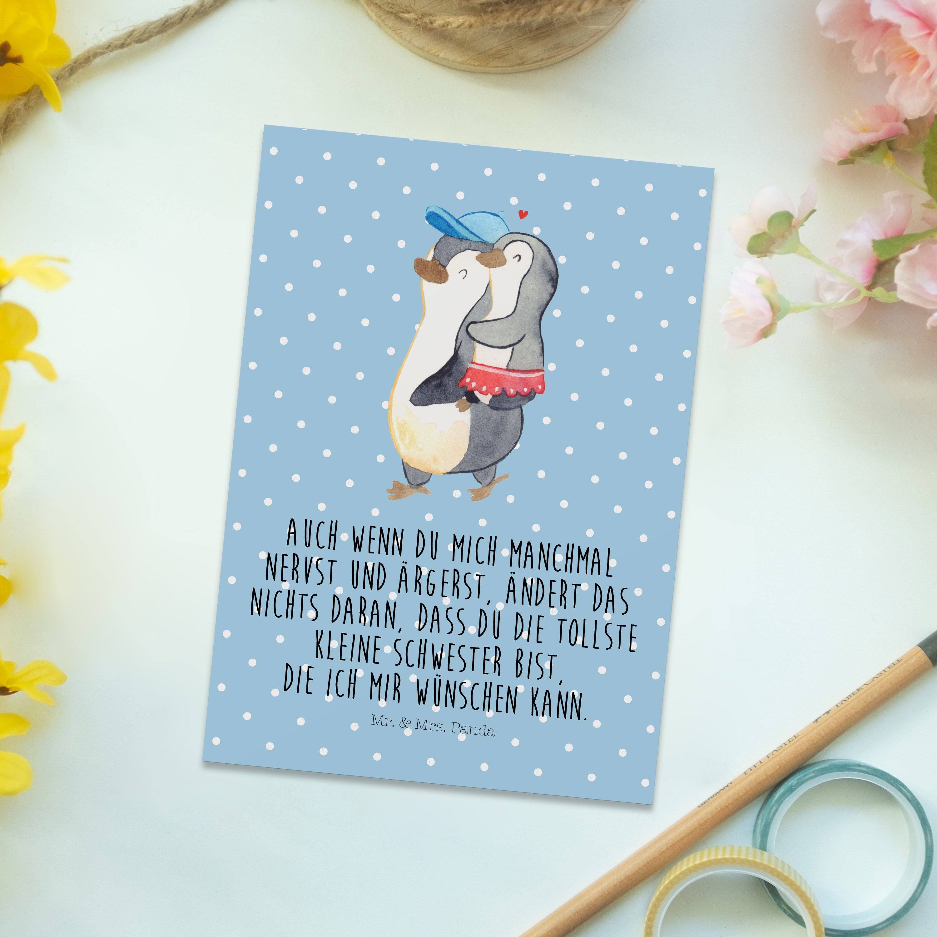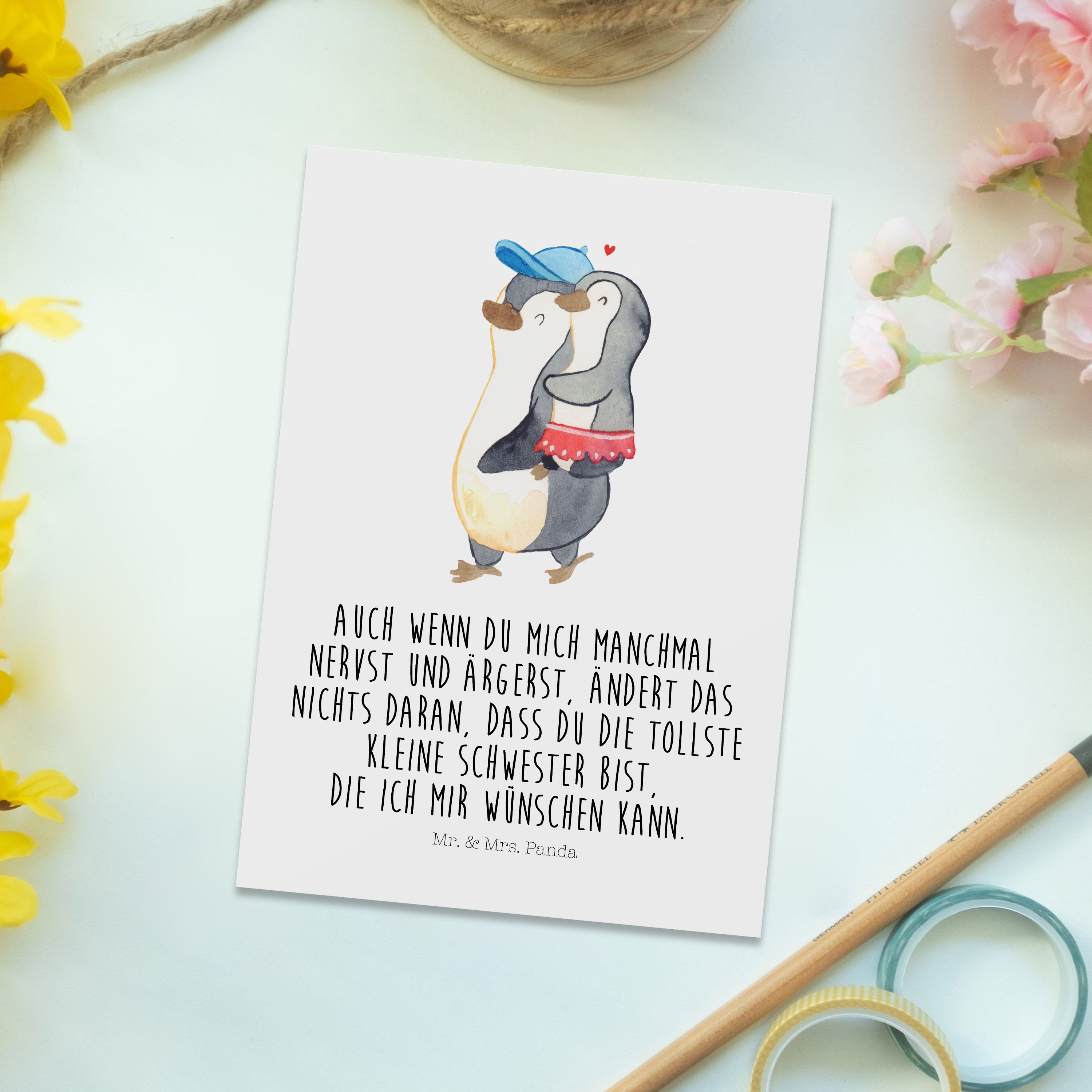 Postkarte Pinguin Kleine Schwester