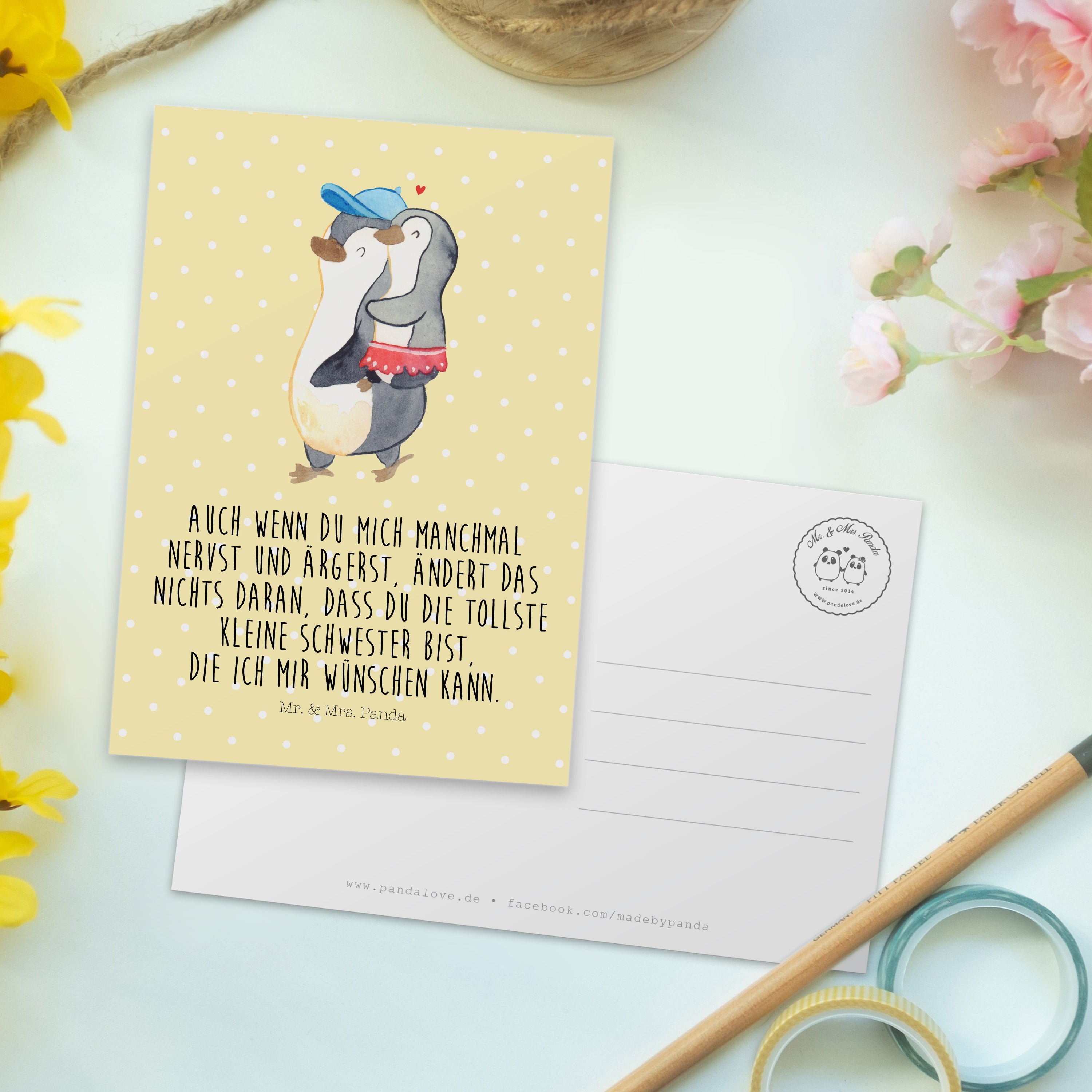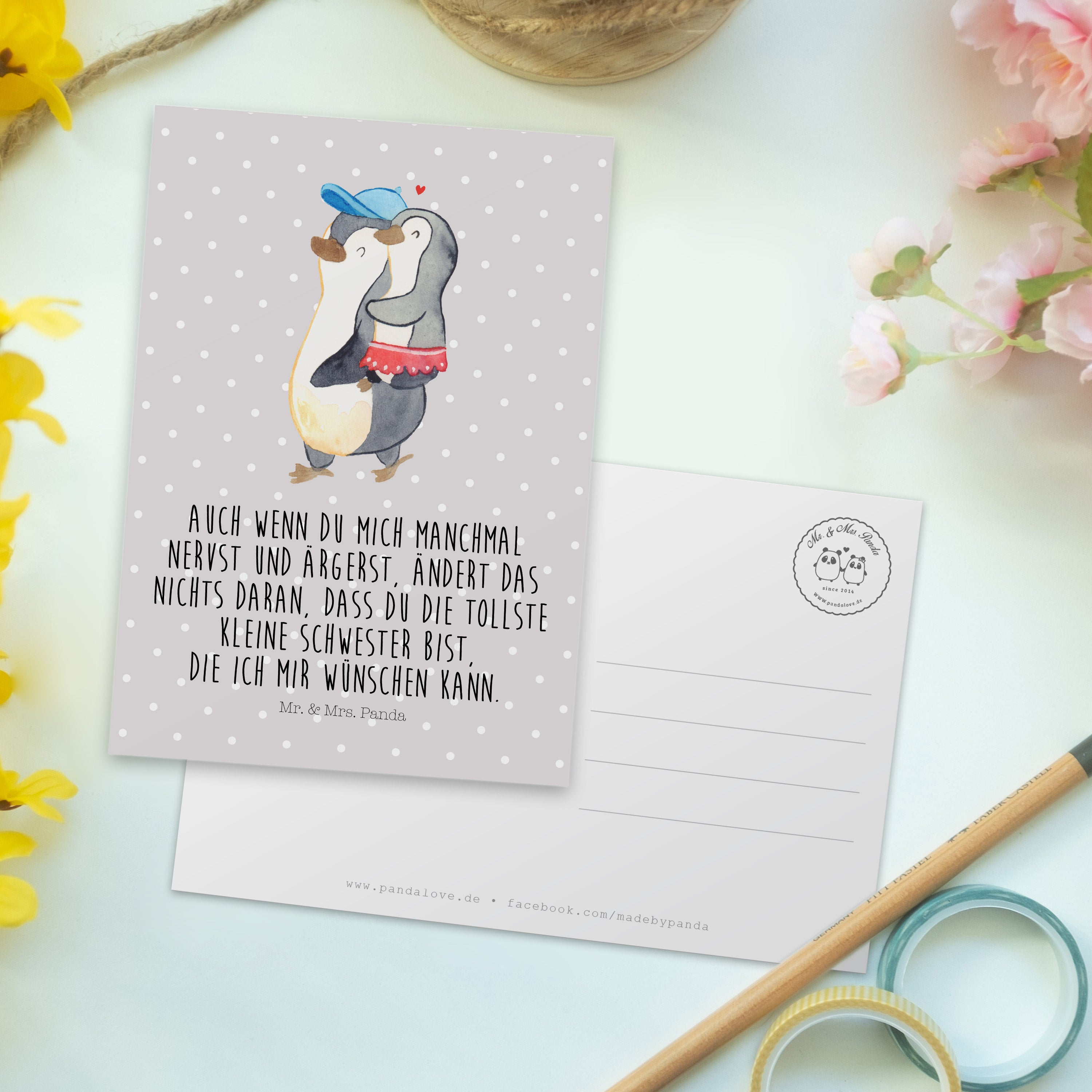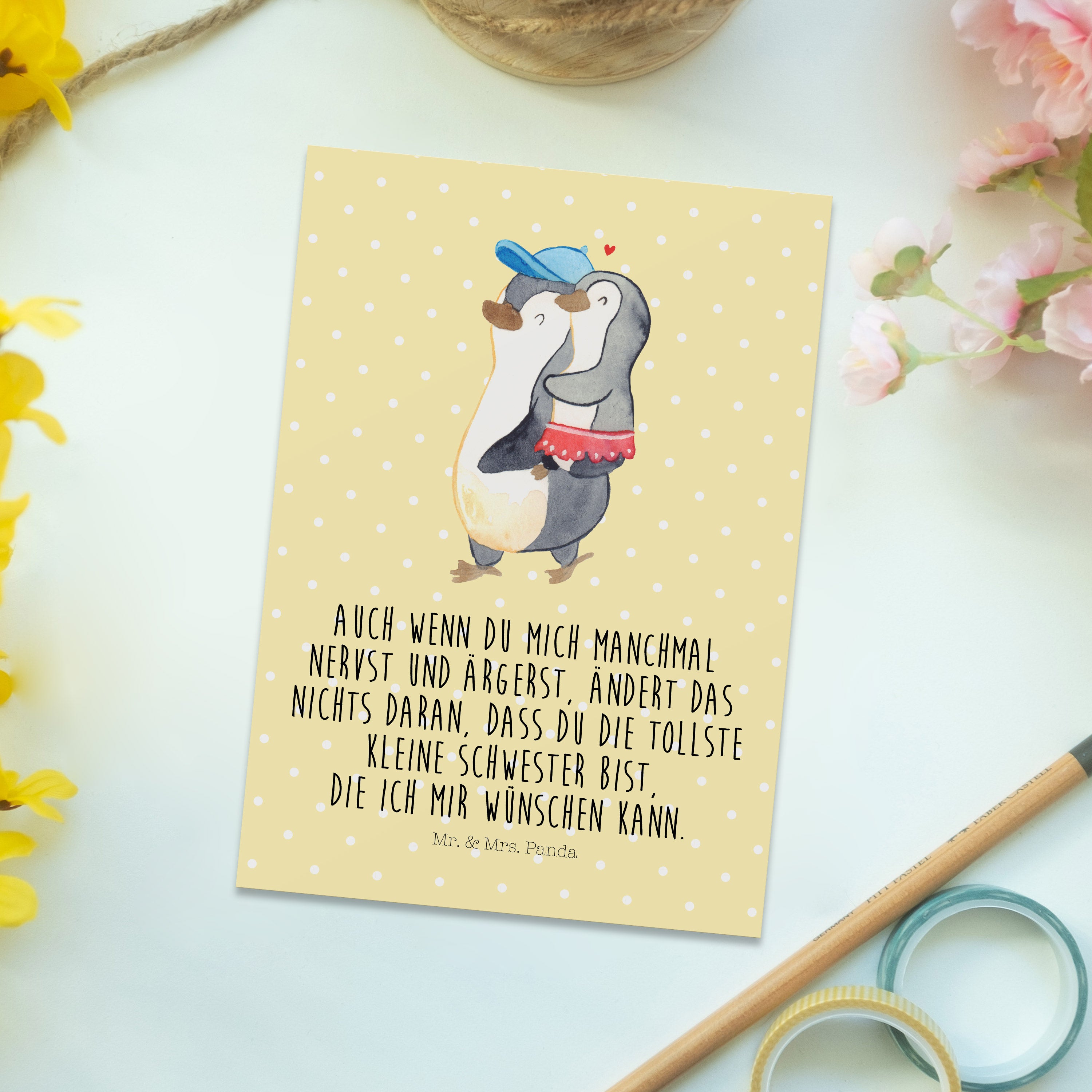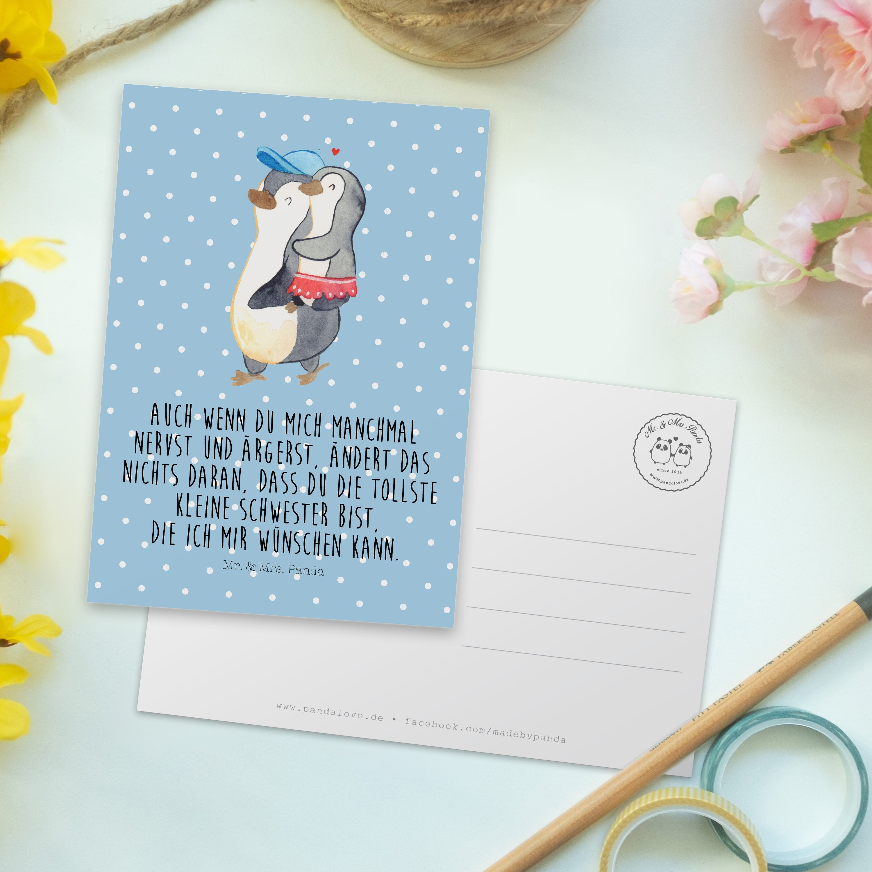 Postkarte Pinguin Kleine Schwester