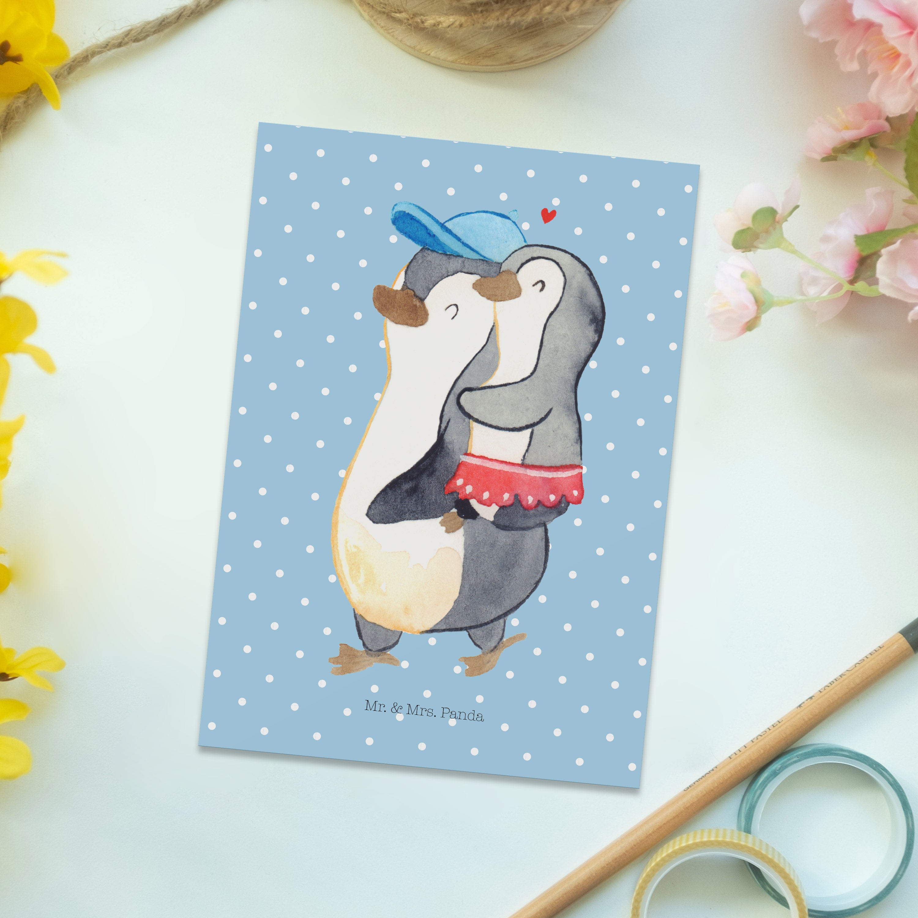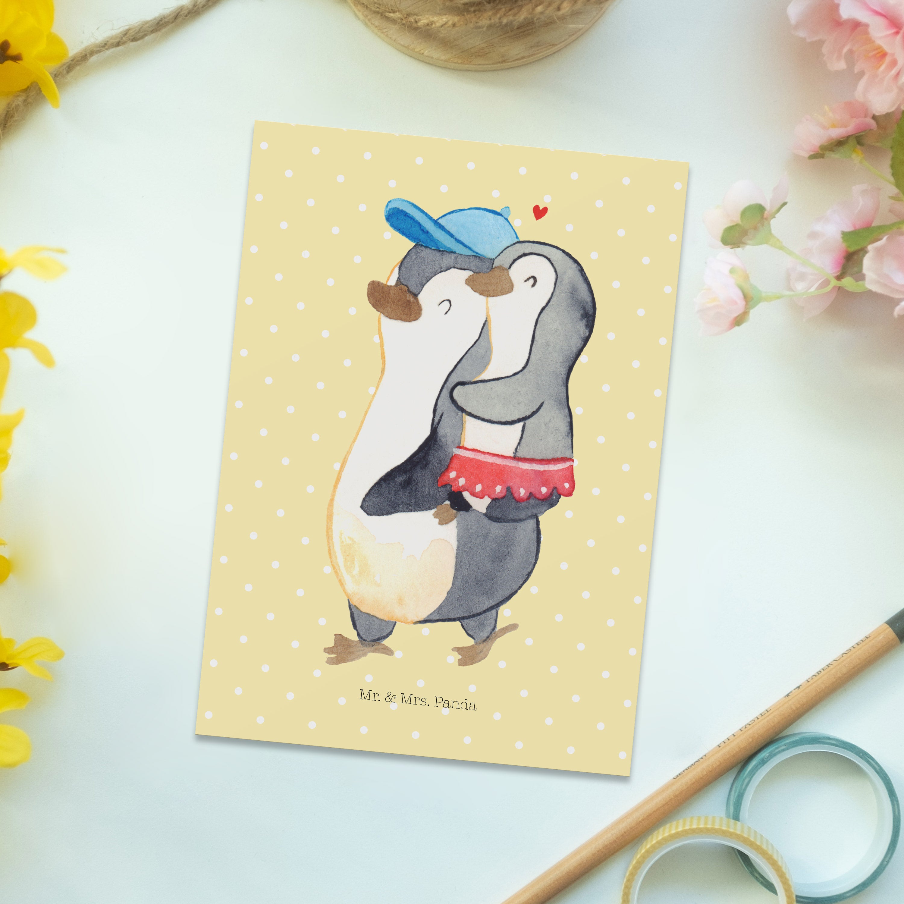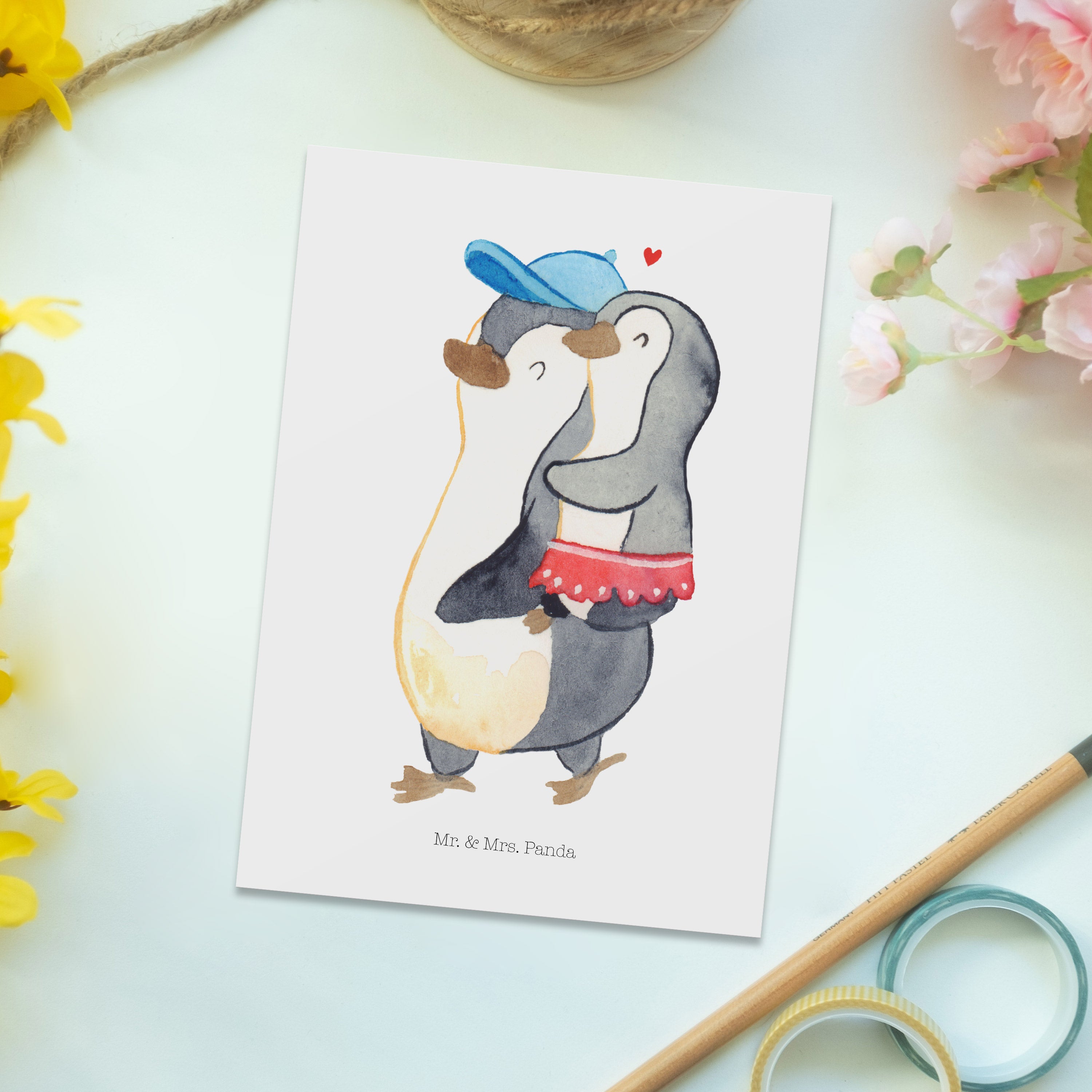 Mit einer Postkarte von Mr. & Mrs. Panda sendest du nicht nur eine Nachricht, sondern auch ein kleines Stück Herz. Jede Karte ist ein Unikat, perfekt geeignet als Einladungskarte für besondere Anlässe oder als kleine Aufmerksamkeit zwischendurch. Diese Postkarten sind nicht nur ein Blickfang wegen ihrer liebevoll gestalteten Motive, sondern auch hochgradig personalisierbar dank der blanko Rückseite. Mit den Maßen 150 mmx1 mm und aus hochqualitativem Karton hergestellt, garantieren sie Zufriedenheit und langanhaltende Freude. Die langlebige Tinte und die hochglänzende Vorderseite sorgen dafür, dass deine Nachrichten immer in Erinnerung bleiben.