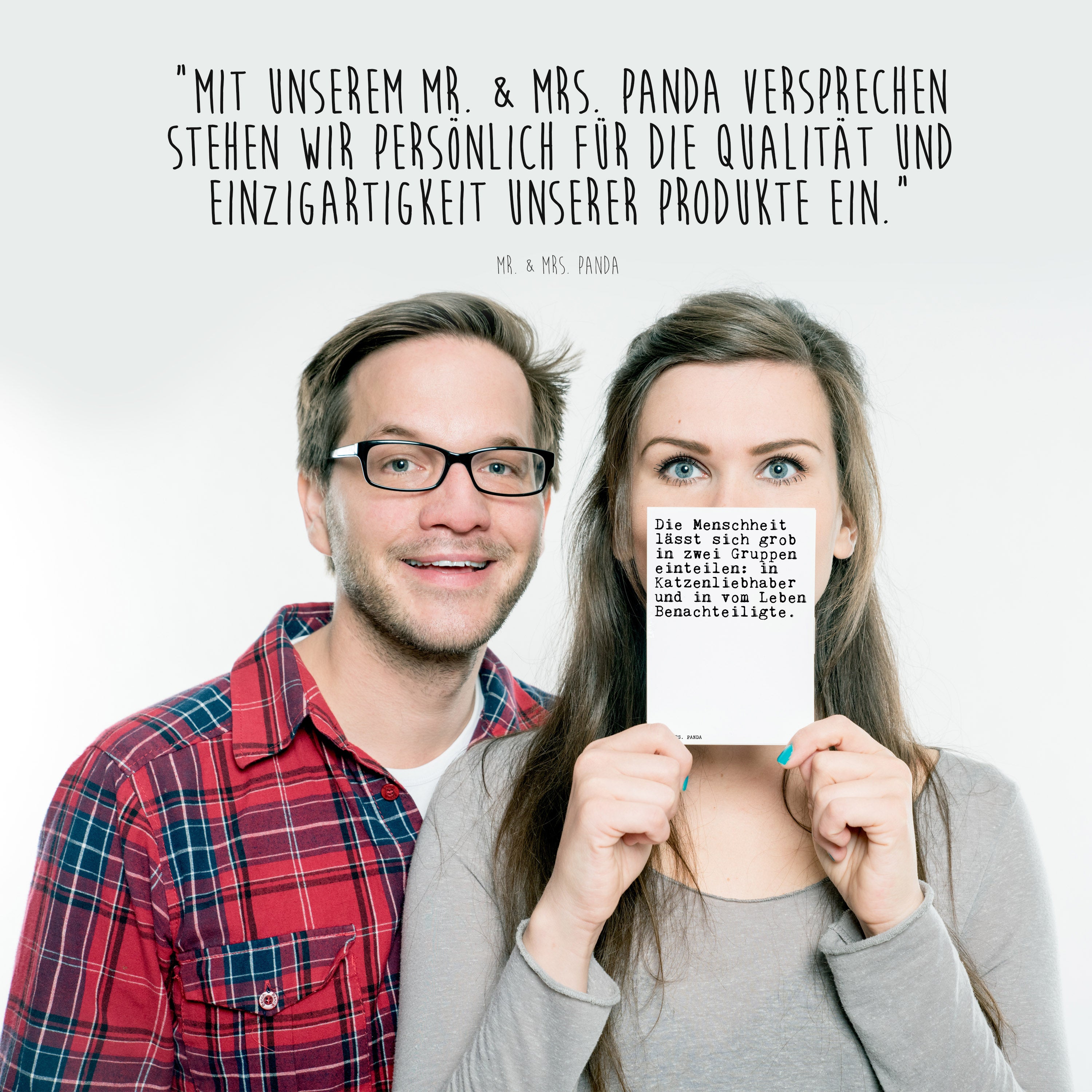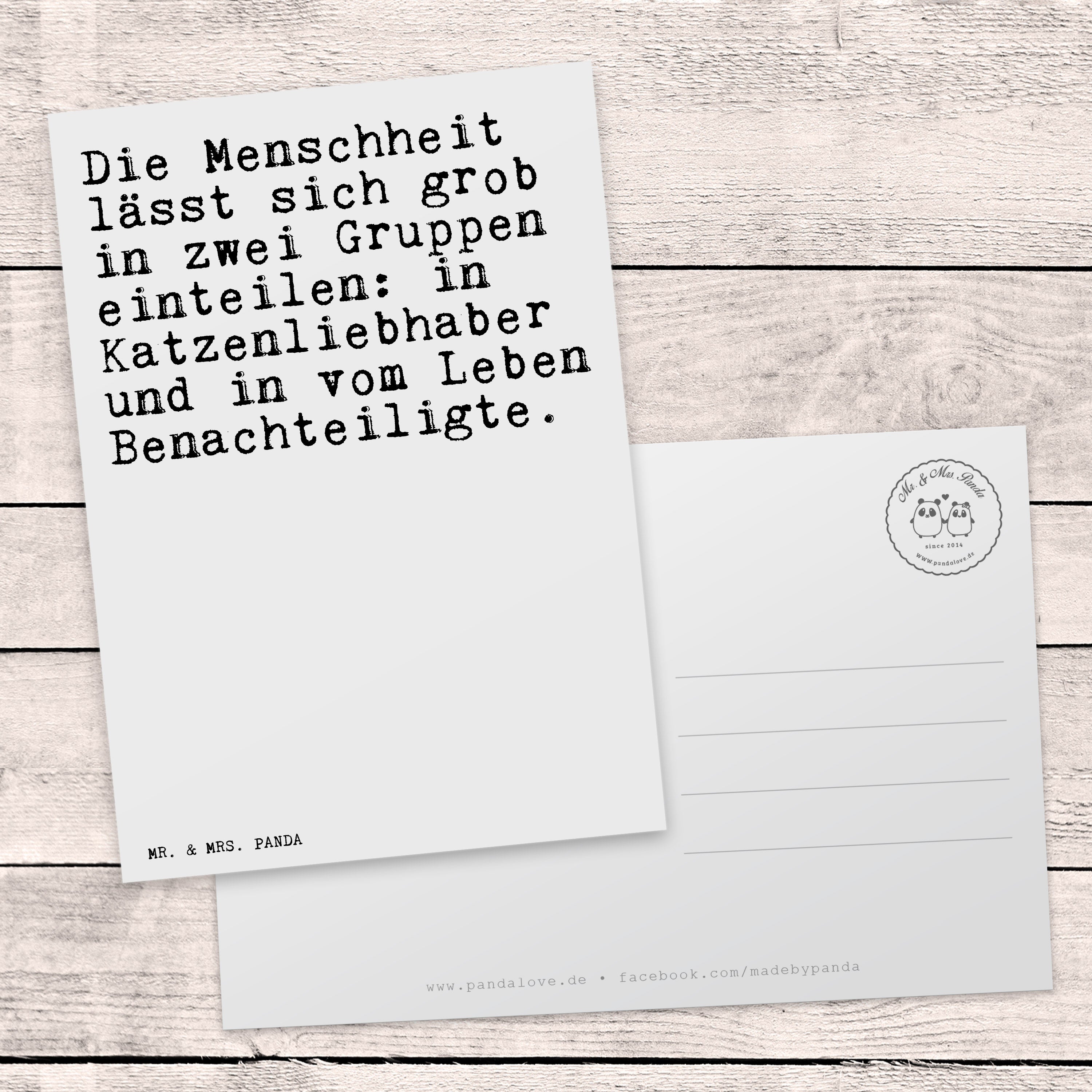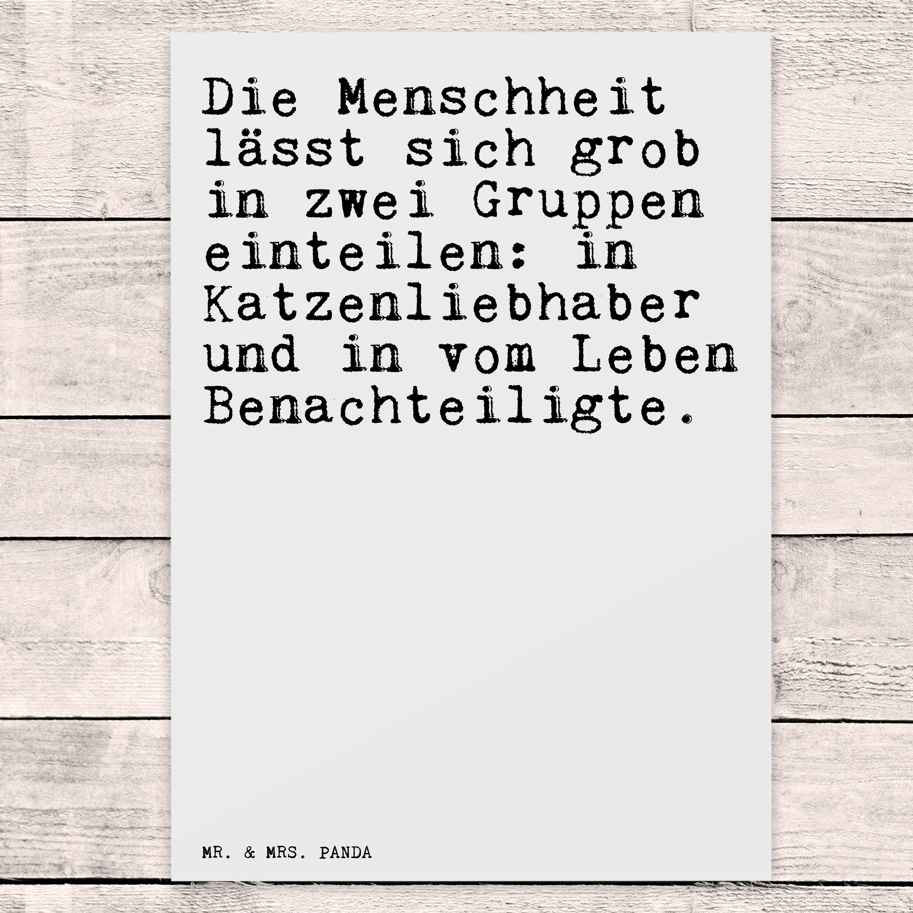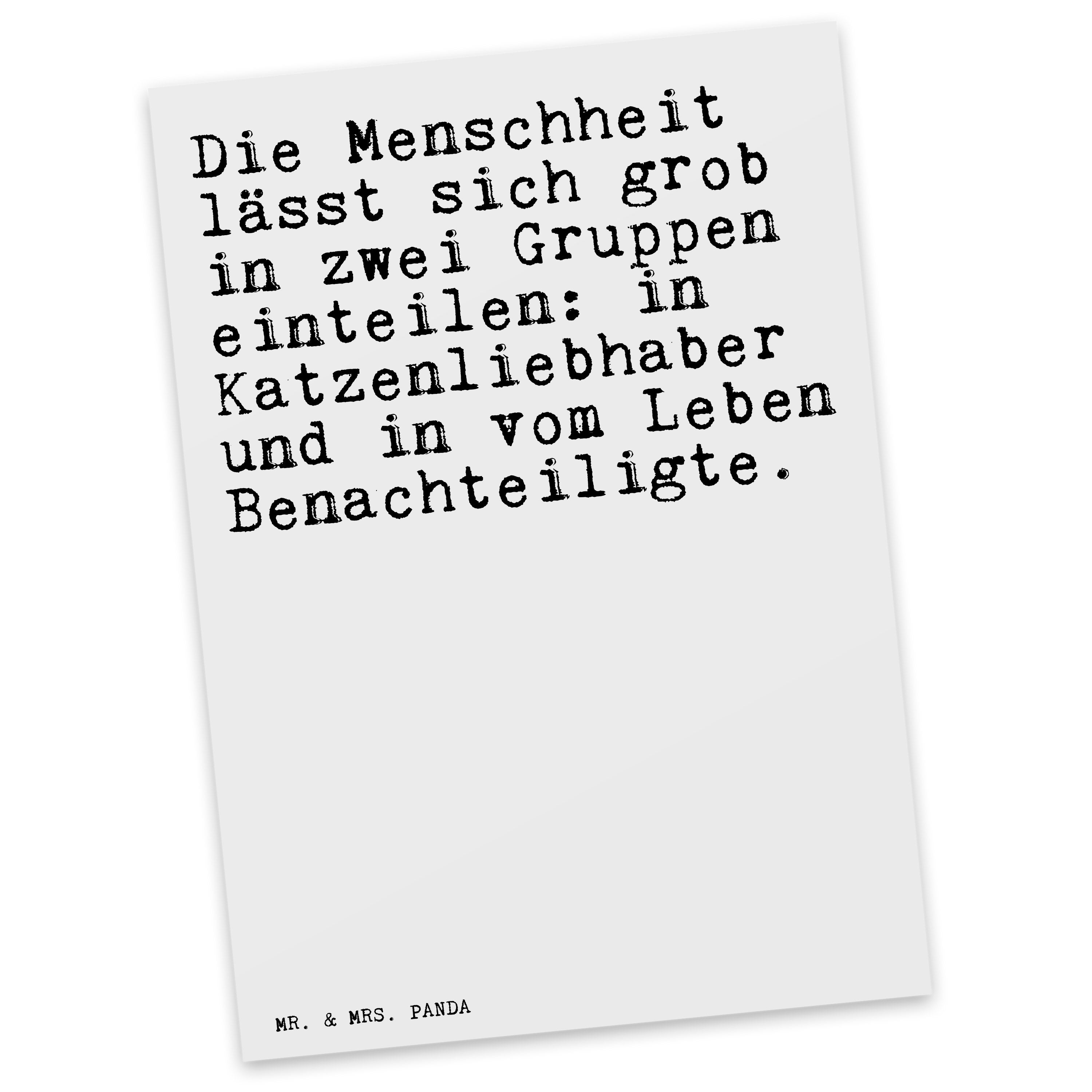 Postkarte Sprüche und Zitate Die Menschheit lässt sich grob in zwei Gruppen einteilen: in Katzenliebhaber und in vom Leben Benachteiligte.