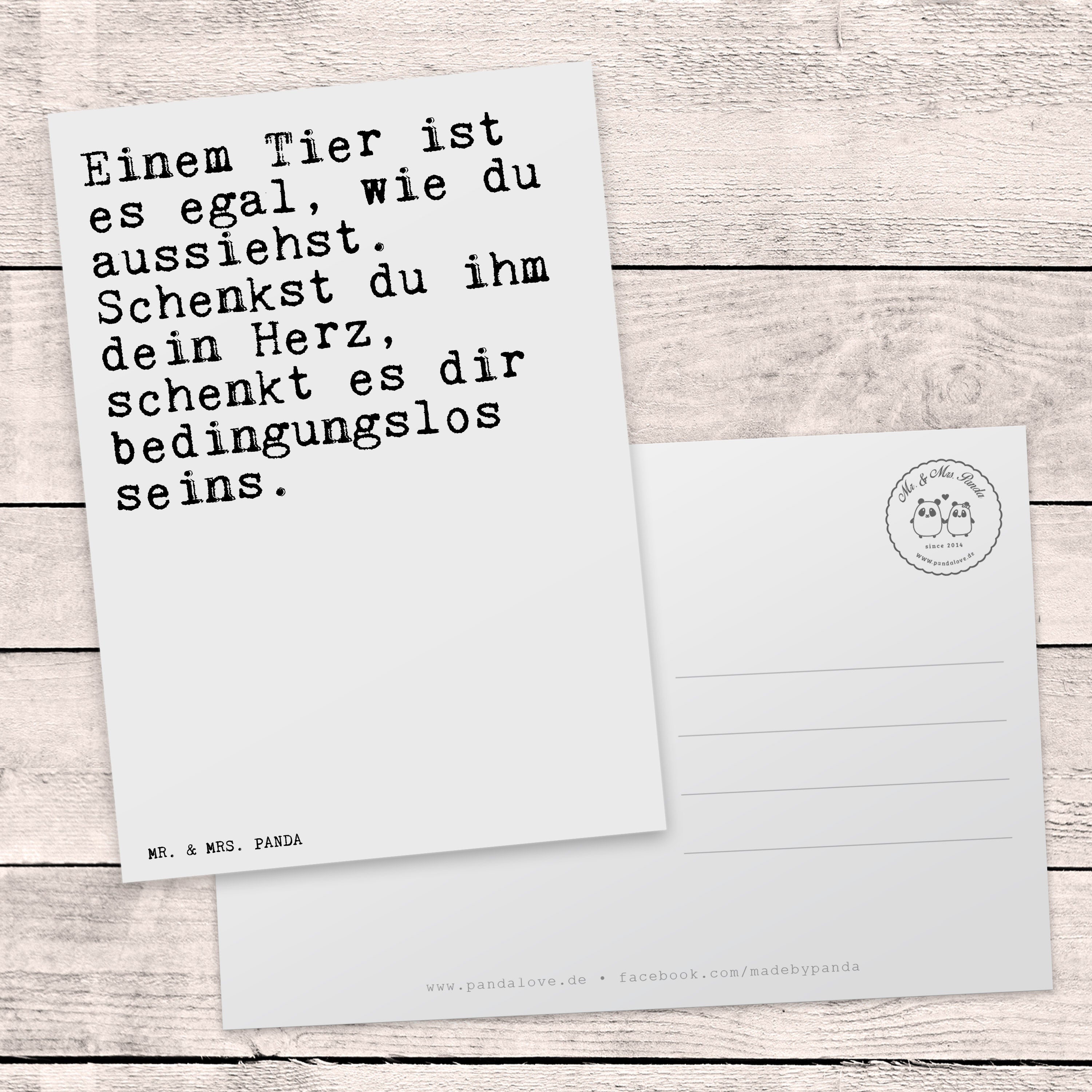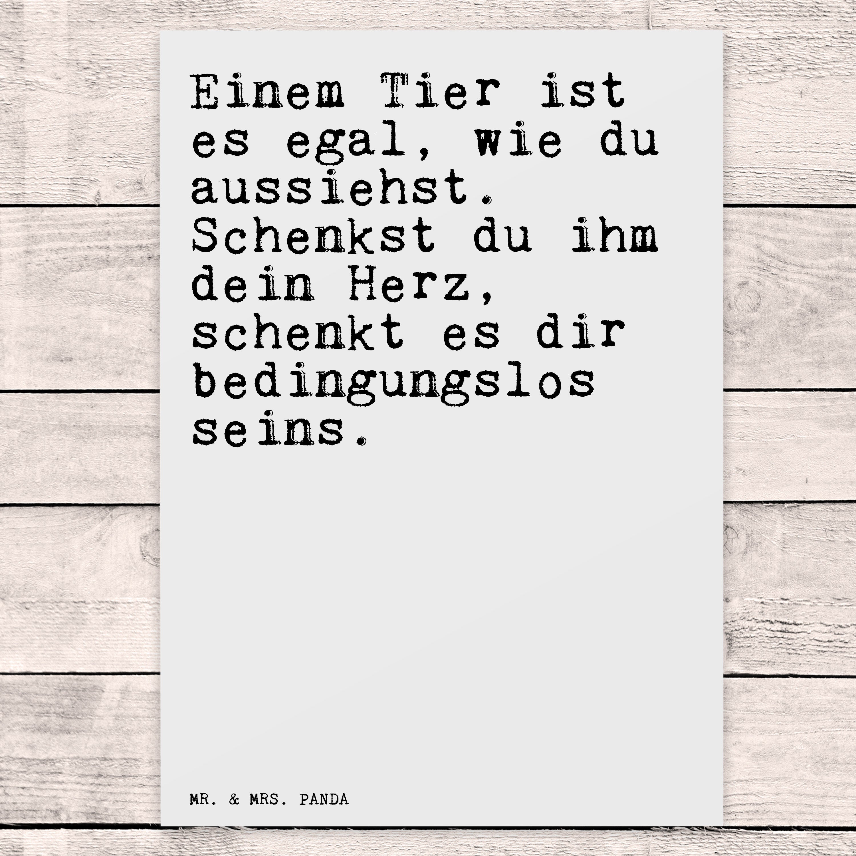 Postkarte Sprüche und Zitate Einem Tier ist es egal, wie du aussiehst. Schenkst du ihm dein Herz, schenkt es dir bedingungslos seins.