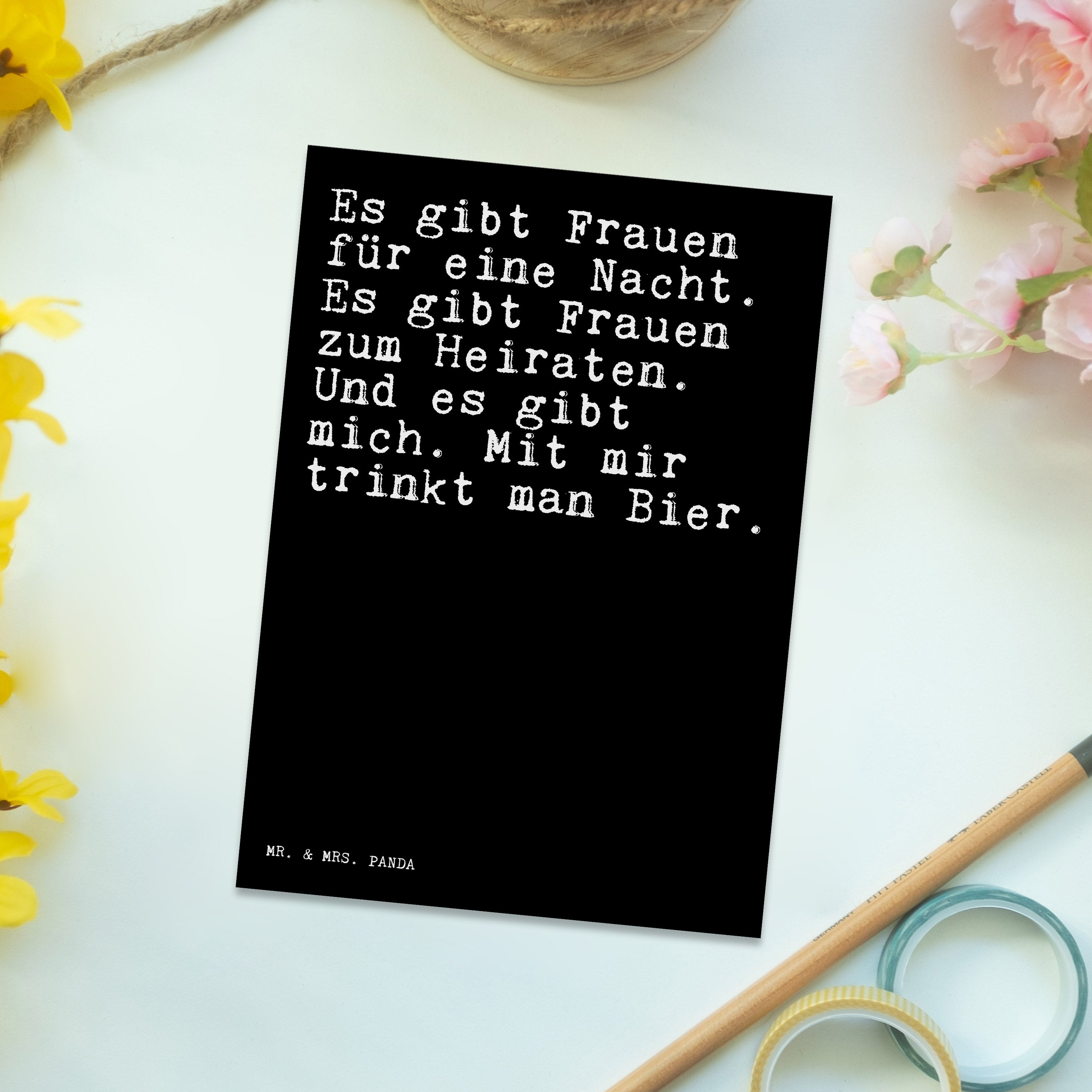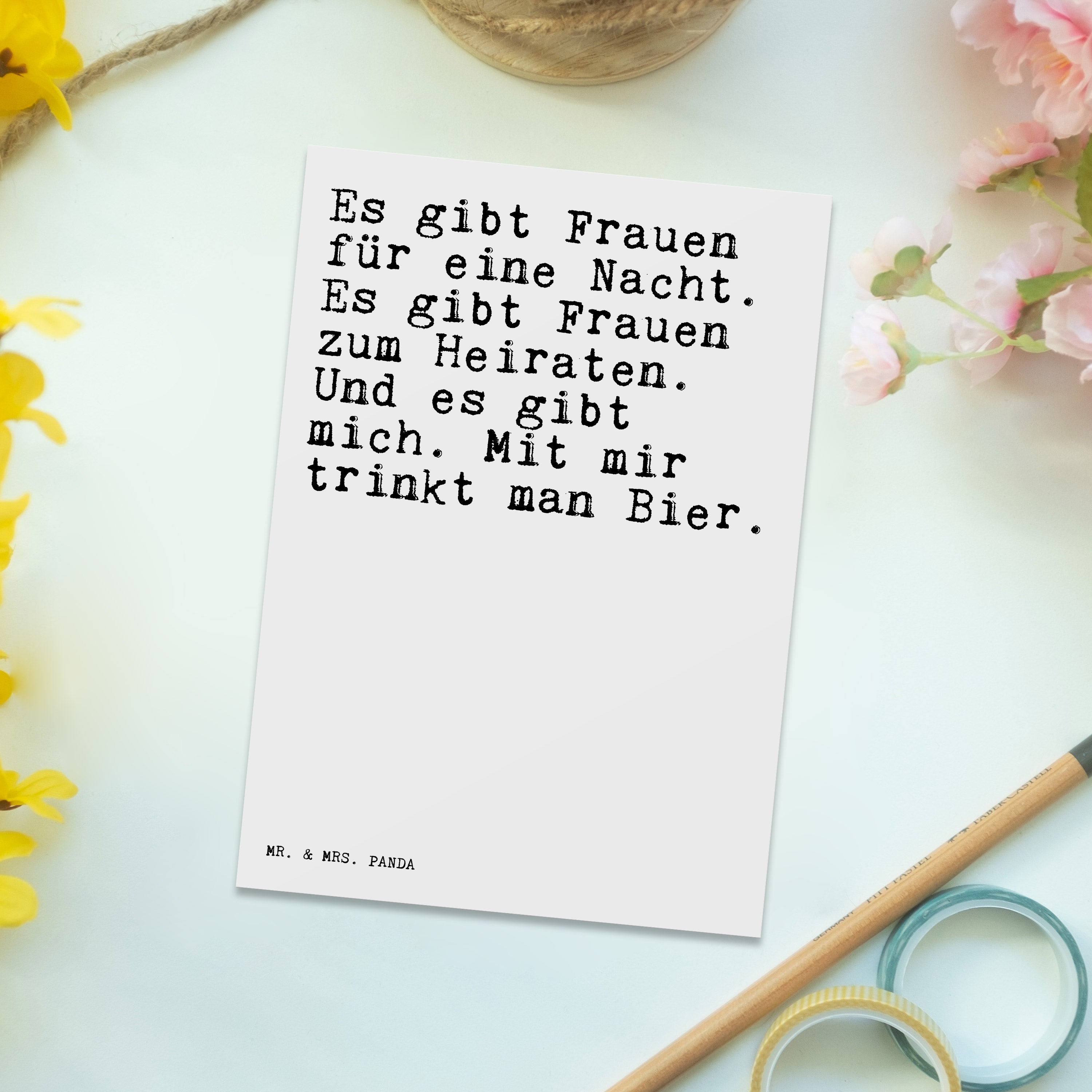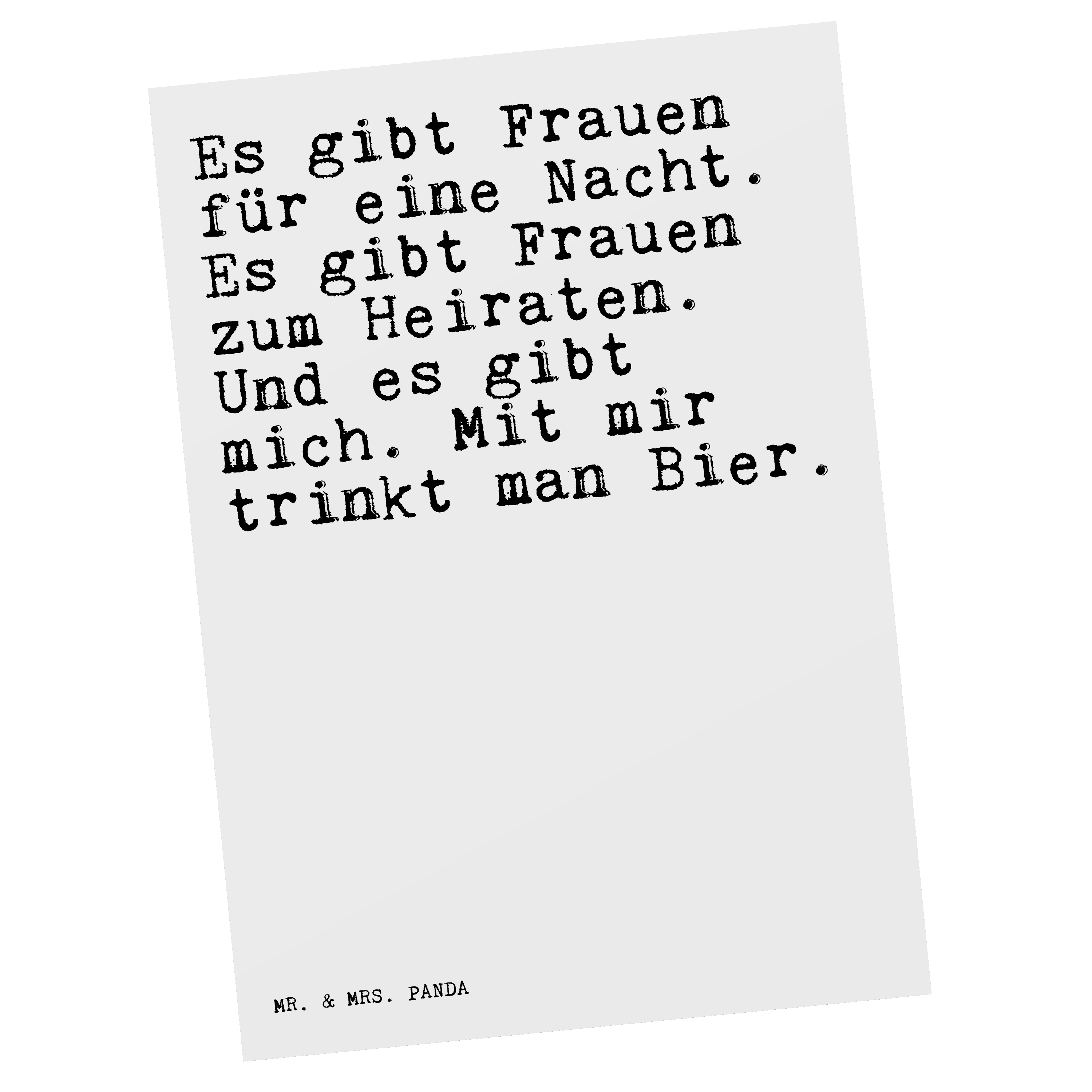 Postkarte Sprüche und Zitate Es gibt Frauen für eine Nacht. Es gibt Frauen zum Heiraten. Und es gibt mich. Mit mir trinkt man Bier.