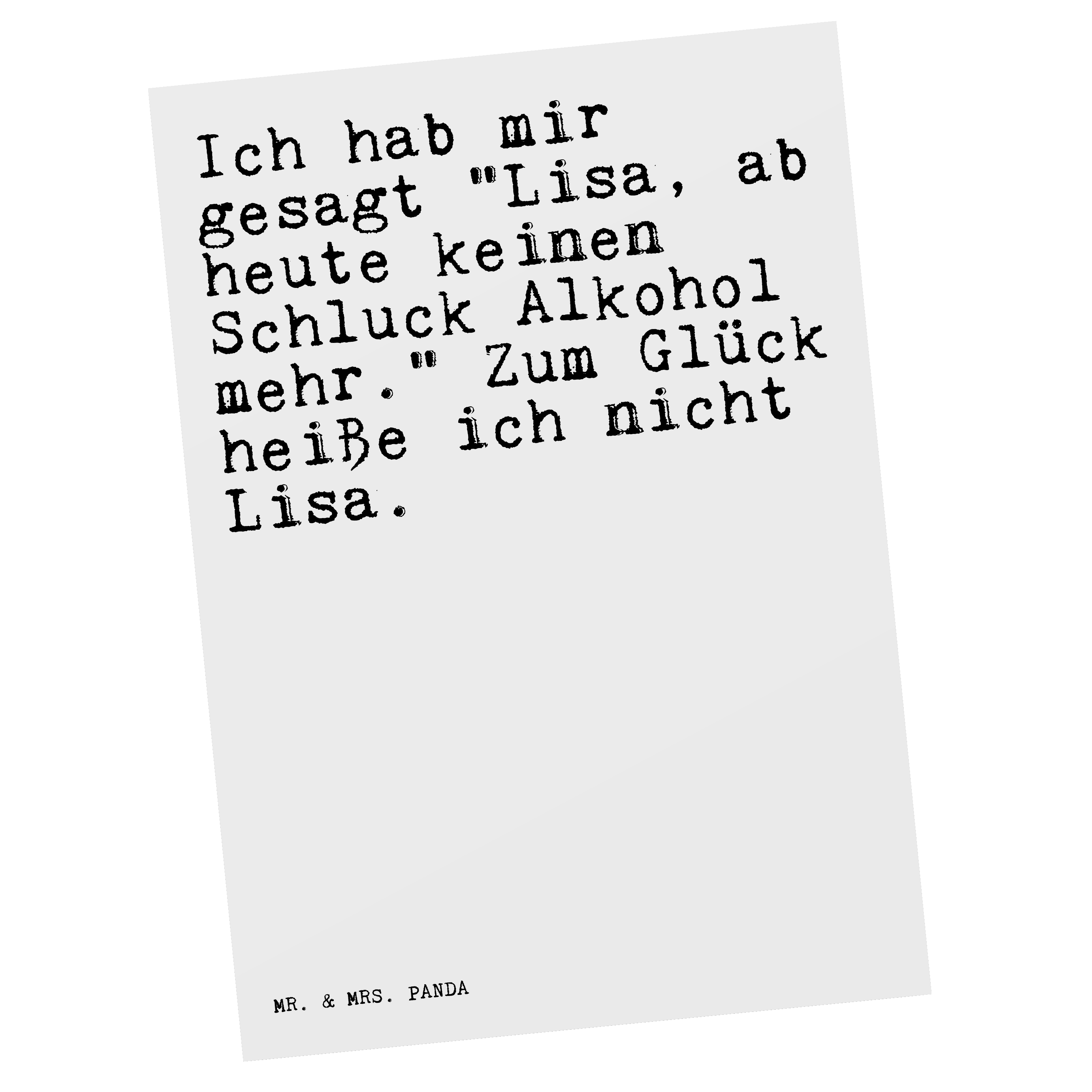 Postkarte Sprüche und Zitate Ich hab mir gesagt "Lisa, ab heute keinen Schluck Alkohol mehr." Zum Glück heiße ich nicht Lisa.
