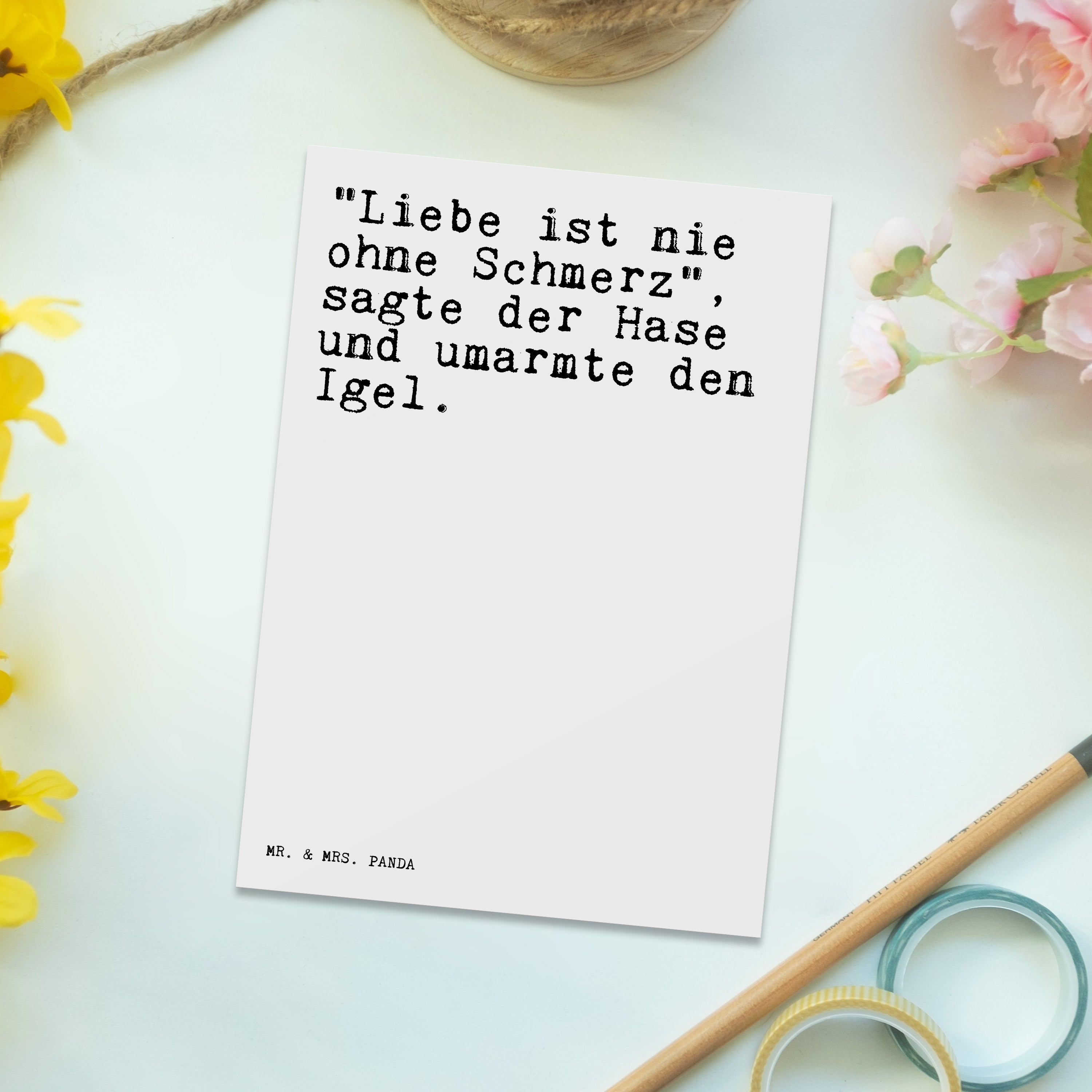 Mit einer Postkarte von Mr. & Mrs. Panda sendest du nicht nur eine Nachricht, sondern auch ein kleines Stück Herz. Jede Karte ist ein Unikat, perfekt geeignet als Einladungskarte für besondere Anlässe oder als kleine Aufmerksamkeit zwischendurch. Diese Postkarten sind nicht nur ein Blickfang wegen ihrer liebevoll gestalteten Motive, sondern auch hochgradig personalisierbar dank der blanko Rückseite. Mit den Maßen 150 mmx1 mm und aus hochqualitativem Karton hergestellt, garantieren sie Zufriedenheit und langanhaltende Freude. Die langlebige Tinte und die hochglänzende Vorderseite sorgen dafür, dass deine Nachrichten immer in Erinnerung bleiben.