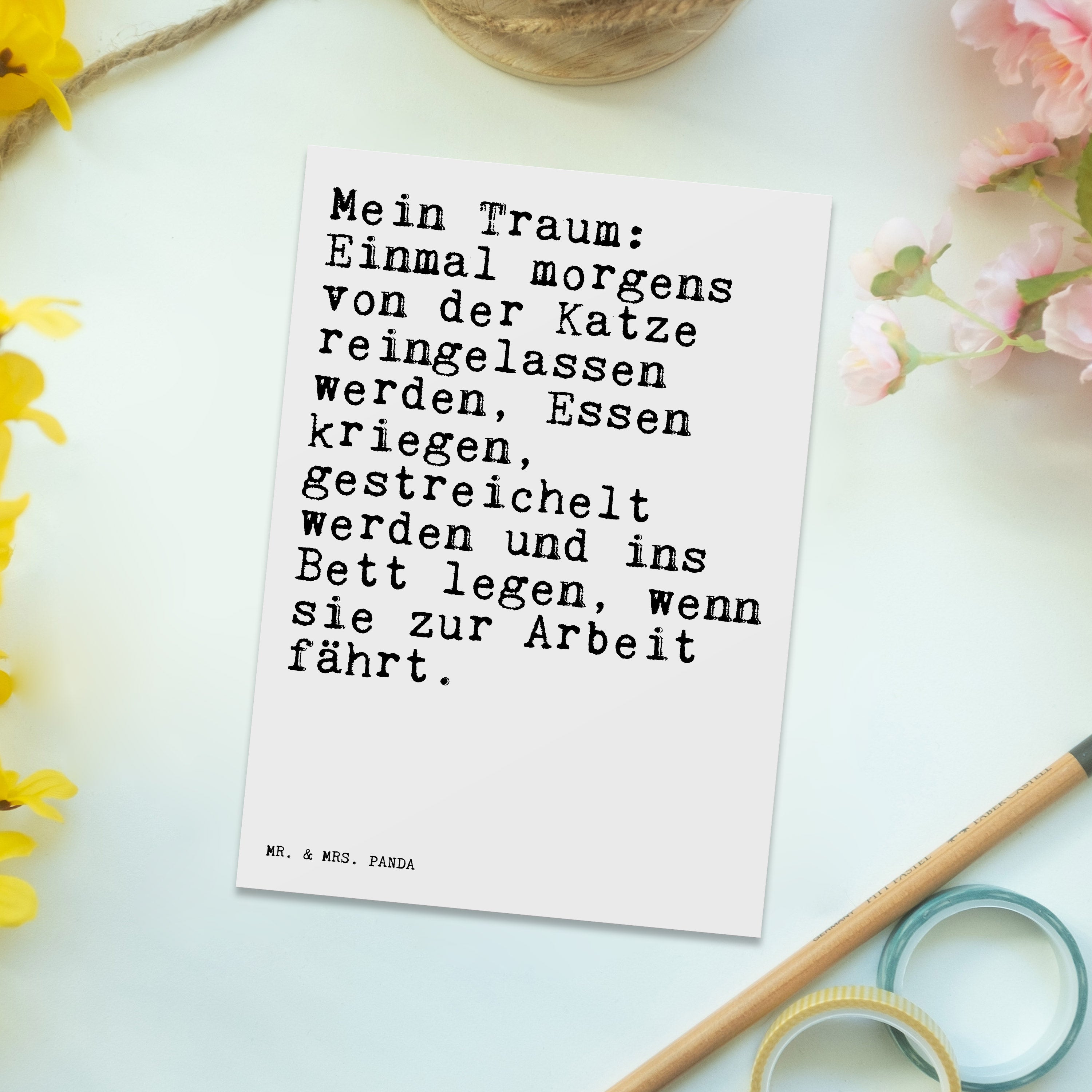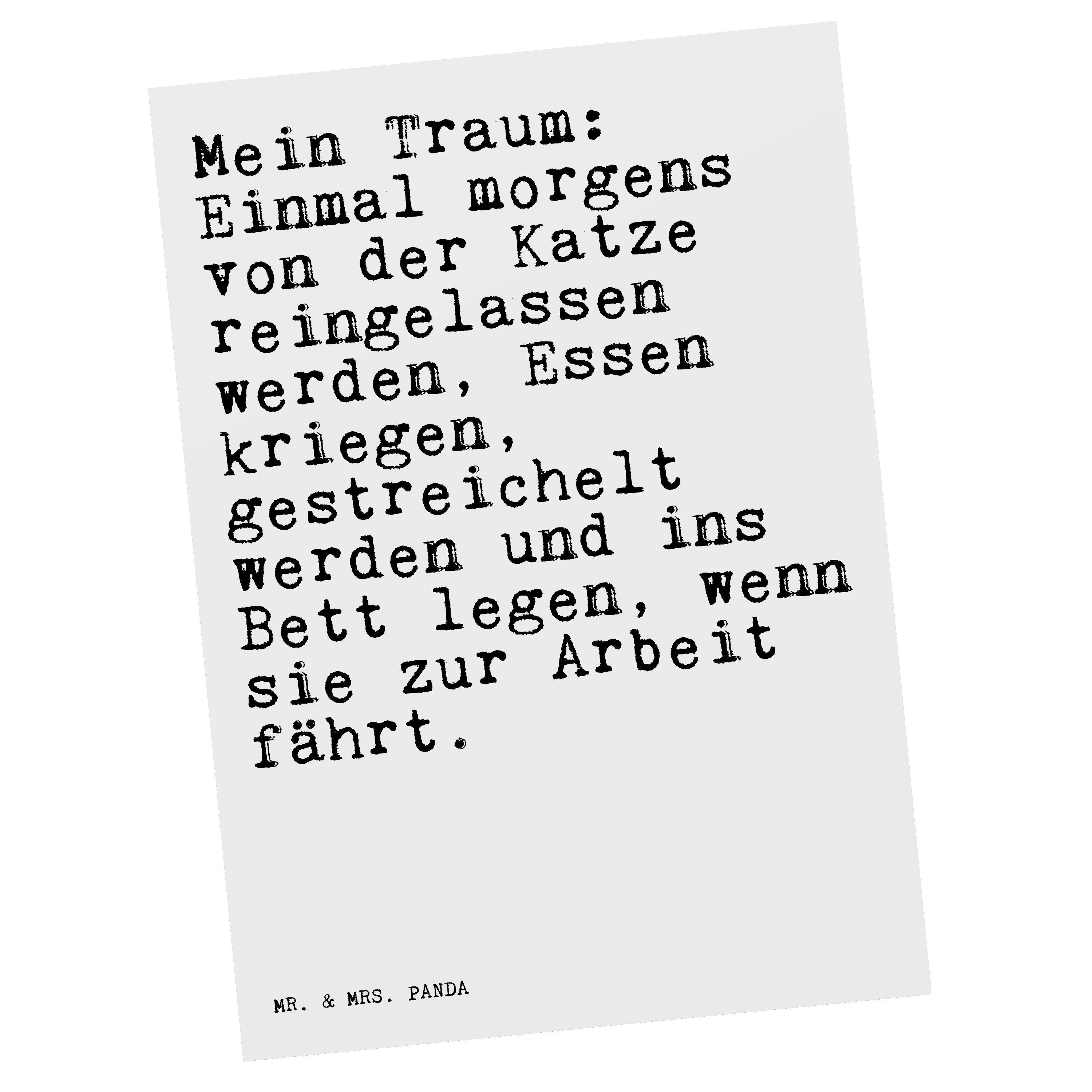 Postkarte Sprüche und Zitate Mein Traum: Einmal morgens von der Katze reingelassen werden, Essen kriegen, gestreichelt werden und ins Bett legen, wenn sie zur Arbeit fährt.
