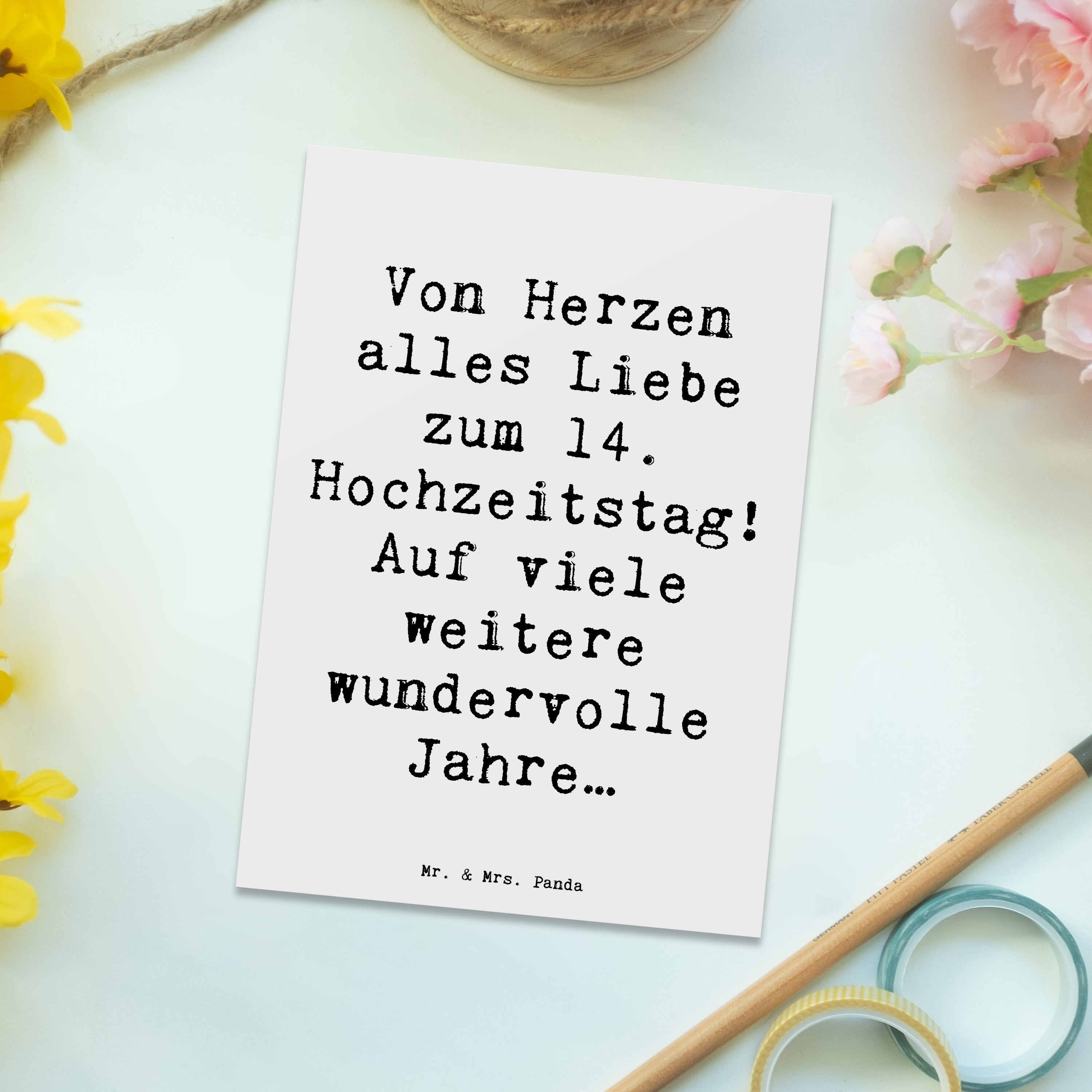 Unsere Panda-Fans suchen auch nach: 14. Hochzeitstag, Elfenbeinhochzeit, von Herzen alles Liebe, Hochzeitstag, viele weitere wundervolle Jahre, Liebe, Partnerschaft, kostbare Momente, Band der Liebe, wunderbare Erinnerungen, freudige Zeiten, gemeinsame Herausforderungen, Meilenstein feiern, Glück, Freude, Jubiläum, Ehe, Beständigkeit, zeitlose Schönheit, handgefertigte Geschenke, Mr. & Mrs. Panda, Wandbild, Grußkarten, personalisierte Geschenke, Liebe und Bindung, wertvolle Beziehung, Elfenbein, besonderer Anlass, Hochtzeit, Hochzeitsgeschenke, Geschenke, Geschenk, Heirat, Heiraten