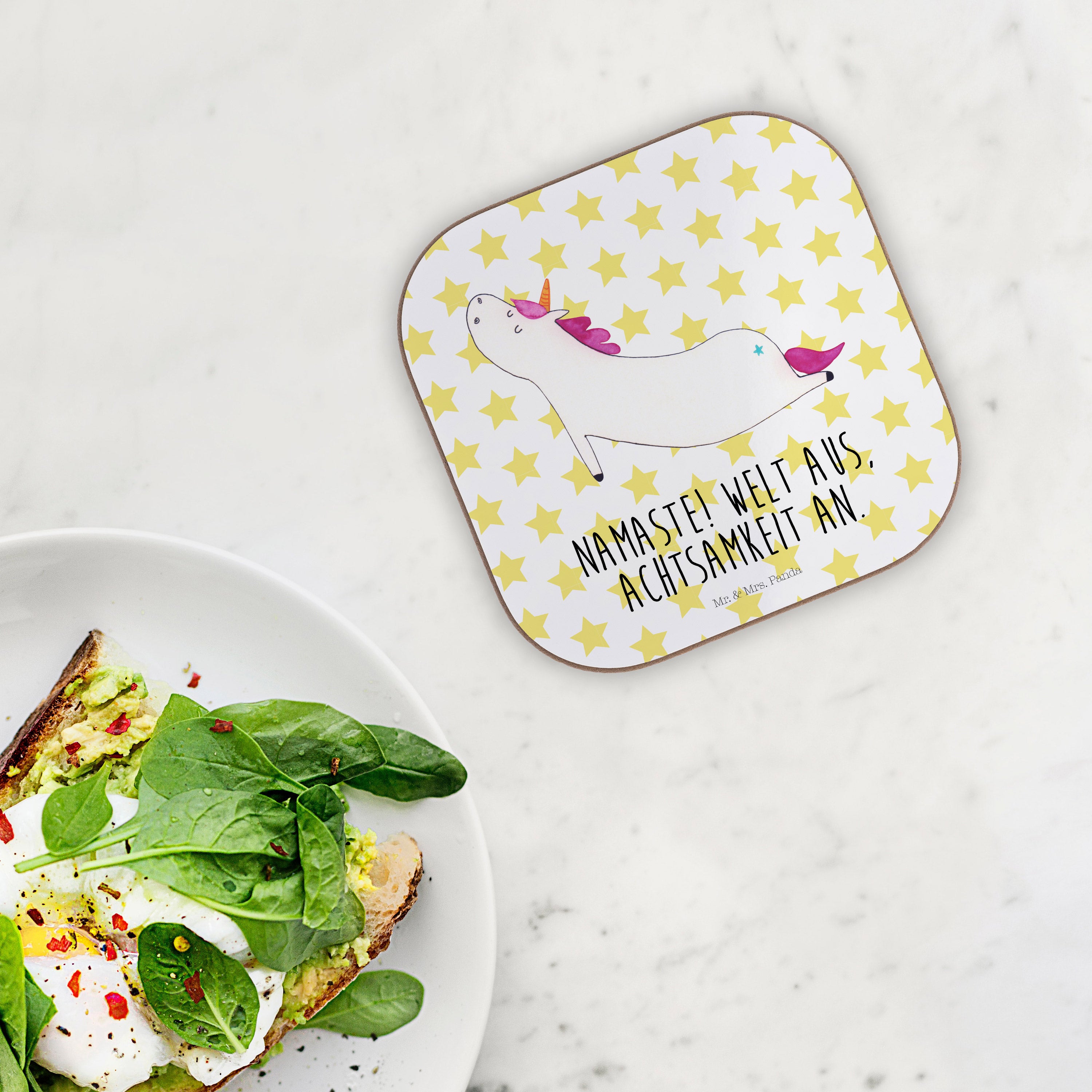 Quadratische Untersetzer Einhorn Yoga