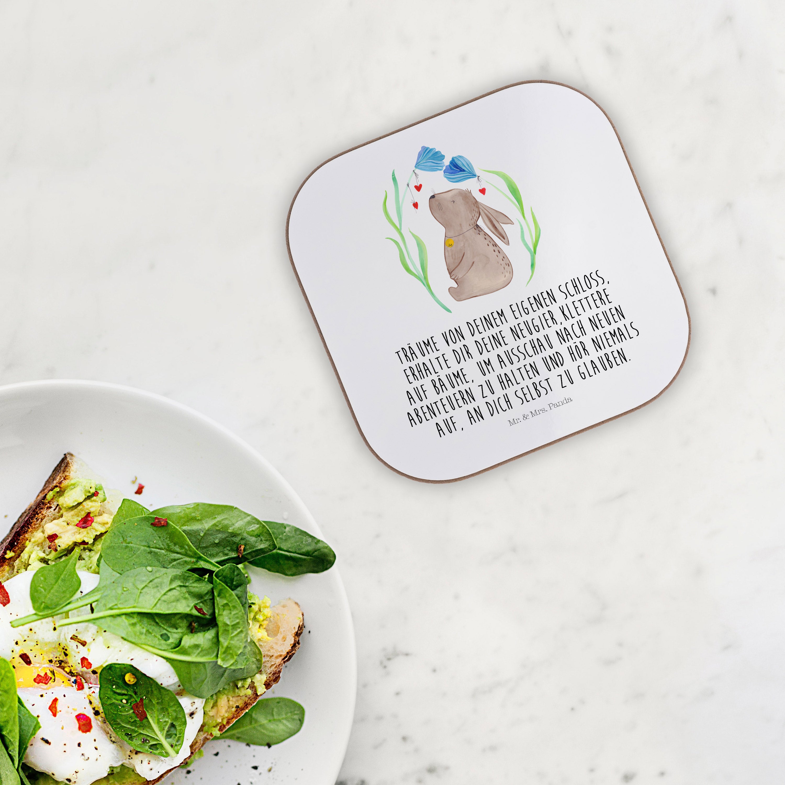 Quadratische Untersetzer Hase Blume