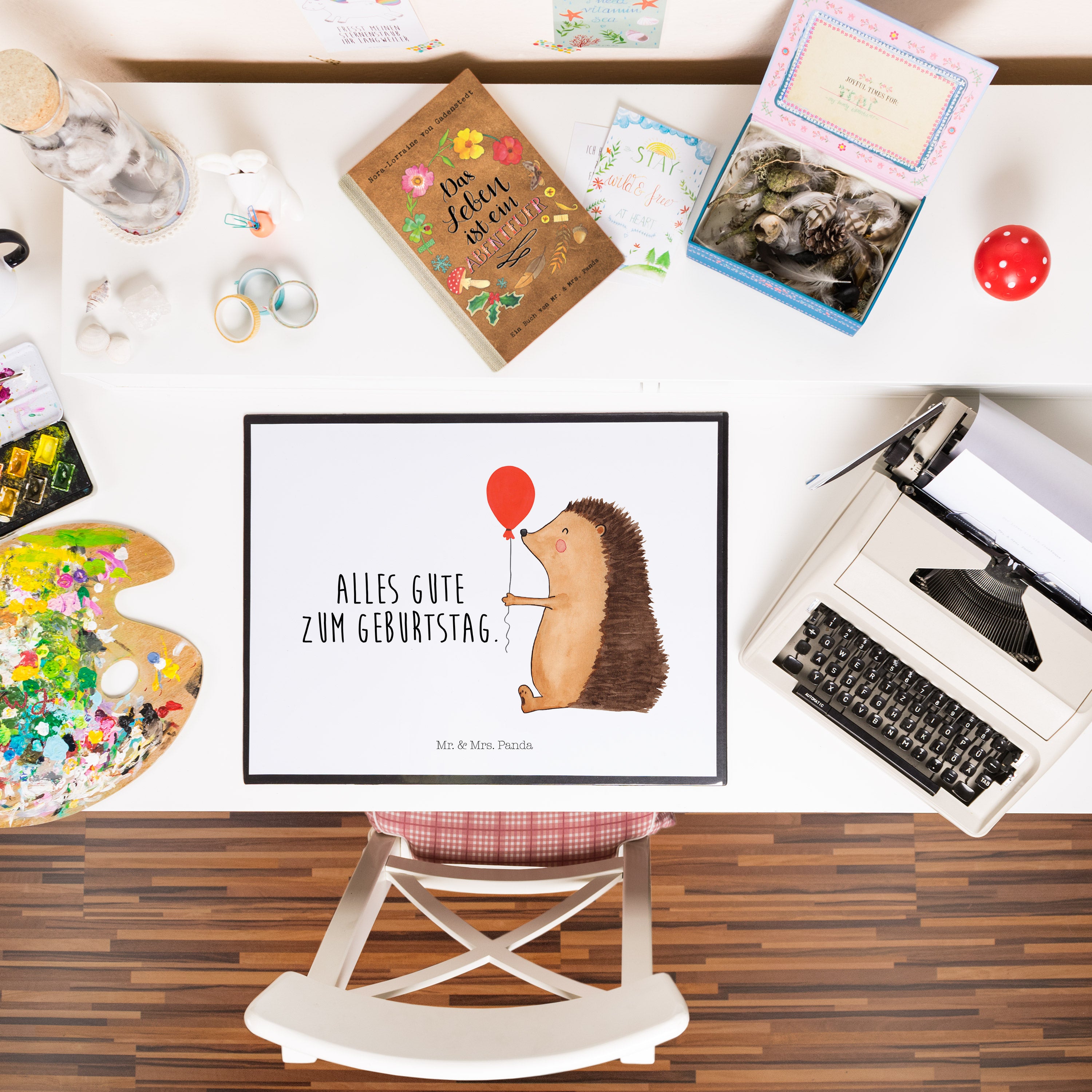 Schreibtischunterlage Igel mit Luftballon