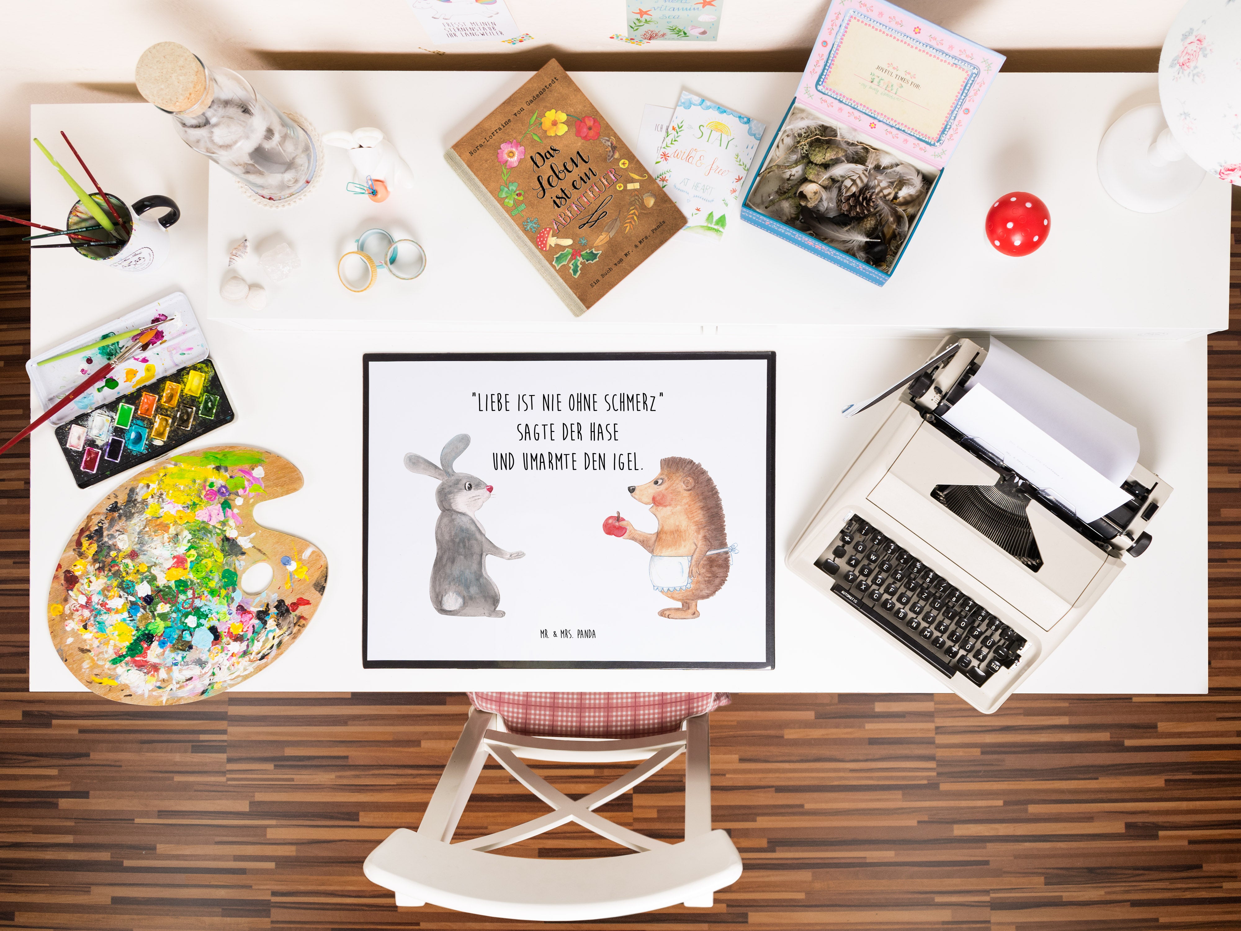 Die liebevoll gestaltete Schreibtischunterlage von Mr. & Mrs. Panda ziert jeden Schreibtisch mit ihren Maßen von 400 mm x 530 mm. Aus hochwertigem Zellkautschuk gefertigt, ist sie nicht nur rutschfest und robust, sondern auch kinderleicht zu reinigen. Das besondere Feature: die seitliche Einlegelasche ermöglicht es dir, die Designs nach deinen Wünschen zu wechseln, was für eine stets frische Atmosphäre an deinem Arbeitsplatz sorgt. Ob im heimischen Büro, in der Schule oder im Kindergarten – dieses Accessoire bereichert jeden Schreibtisch. Die Motive, inspiriert von der liebevollen Welt von Mr. & Mrs. Panda, machen jede Schreibarbeit zu einem Vergnügen und schützen dabei effektiv deine Arbeitsfläche.