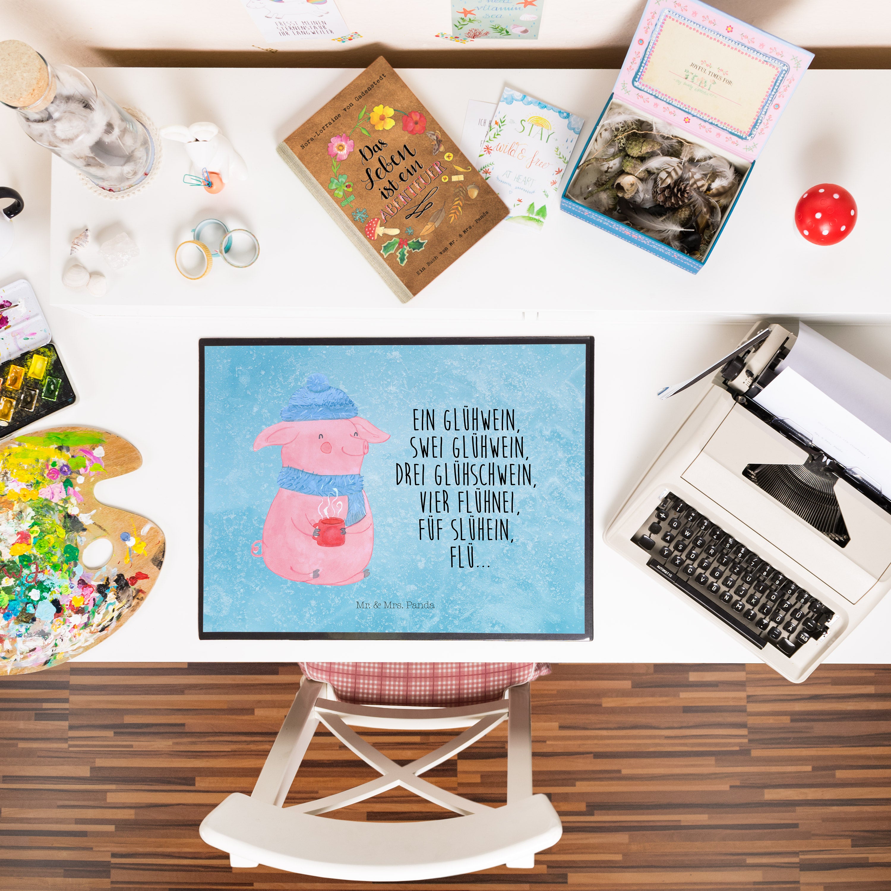 Schreibtischunterlage Schweinchen Glühwein