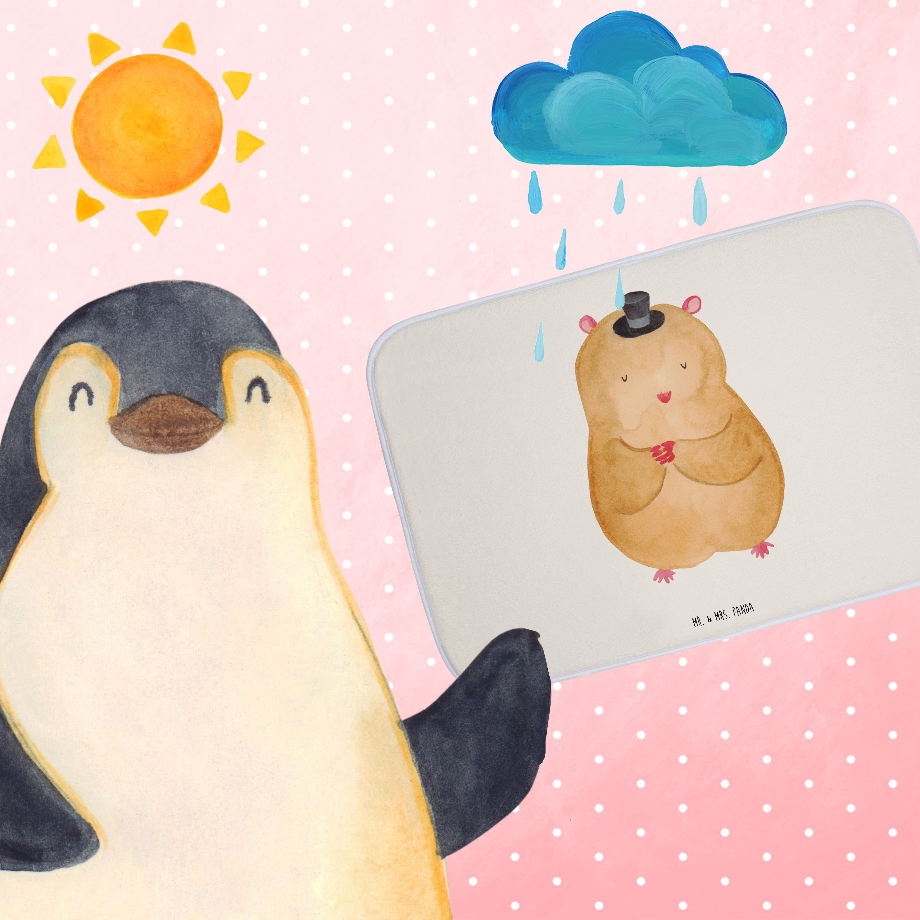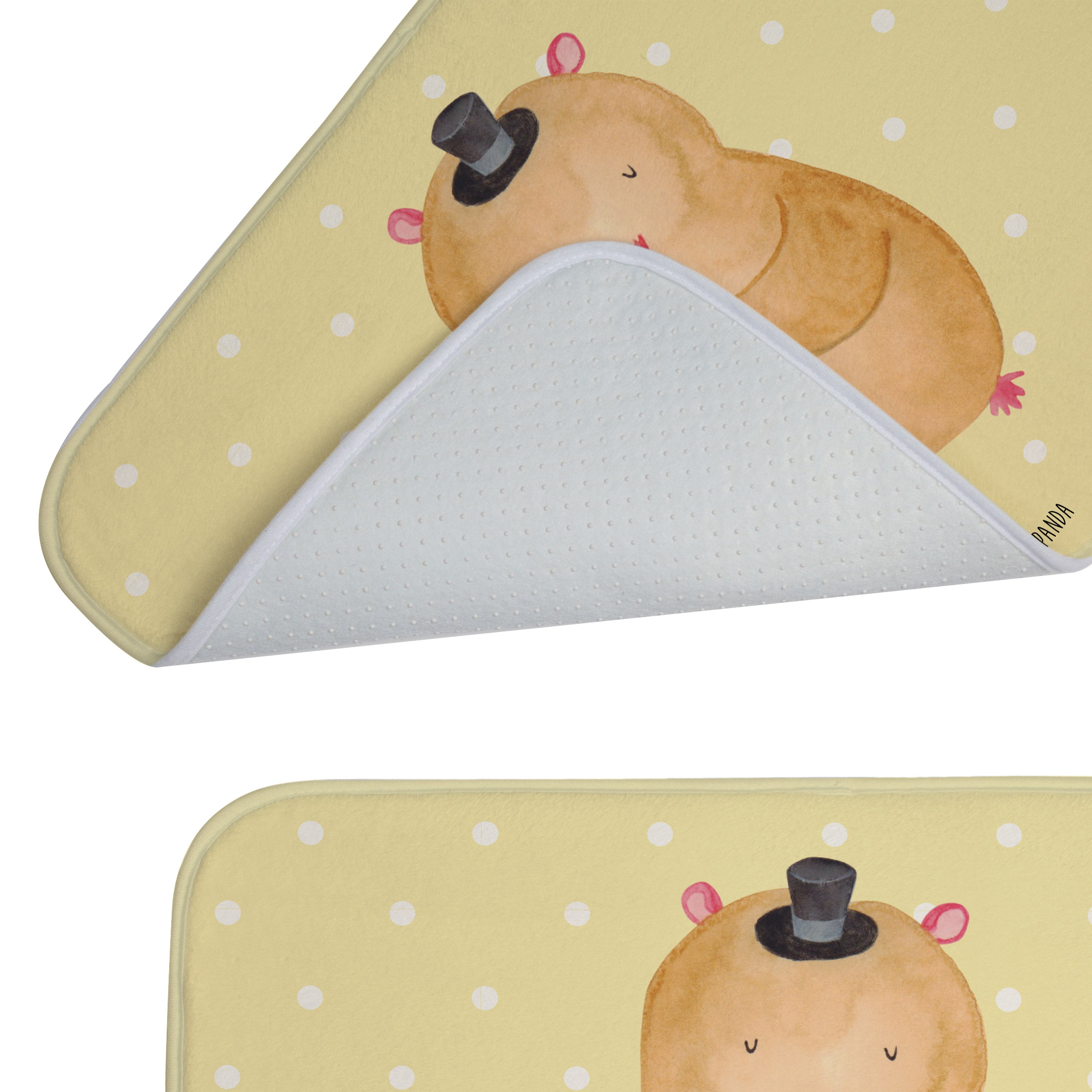 Mach dein Badezimmer zur Wohlfühloase mit der Badezimmermatte von Mr. & Mrs. Panda. 590 mm x 400 mm groß, bietet sie genug Fläche, um nasse Füße sicher und komfortabel abzutrocknen. Jedes Stück ist mit viel Liebe zum Detail gefertigt und verfügt über spritzige Designs, die sofort Stimmung in dein Bad bringen. Die Premium Kunstfaser ist nicht nur besonders flauschig, sondern mit den Anti-Rutsch Gumminoppen auch hochgradig sicher. Leicht zu reinigen bei 30°C, ist dieser Duschvorleger zusätzlich ein Paradebeispiel an Bequemlichkeit und Style.