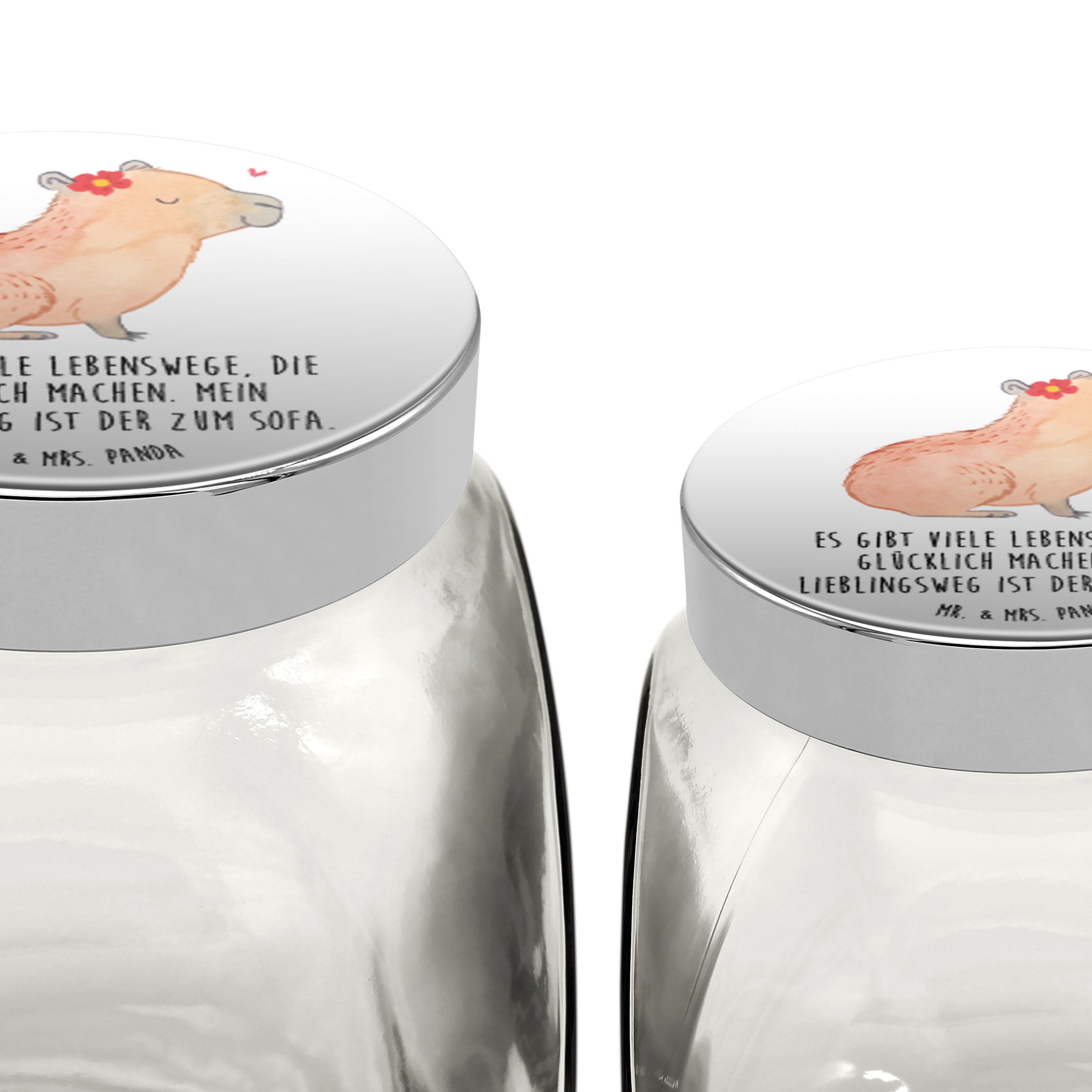 Das Bonbonglas von Mr. & Mrs. Panda ist eine vielseitige Aufbewahrungslösung, die Design und Funktionalität vereint. Egal ob als Müslidose, Gewürzdose oder für Kekse - mit einem Volumen von 2000 ml kannst du verschiedene Lebensmittel frisch und griffbereit halten. Der silberfarbene Schraubverschluss sorgt dabei für eine sichere Lagerung. Dank der Doming-Beschichtung wird das von dir gewählte Motiv in lebendigen Farben präsentiert. Das Glasbälter wiegt 400 g und ist aus transparentem Glas mit einem Kunststoffdeckel gefertigt, was es zu einem unverzichtbaren Hingucker in jeder Küche macht. Organisiere deine Lebensmittel stilvoll mit diesem Vorratsglas.