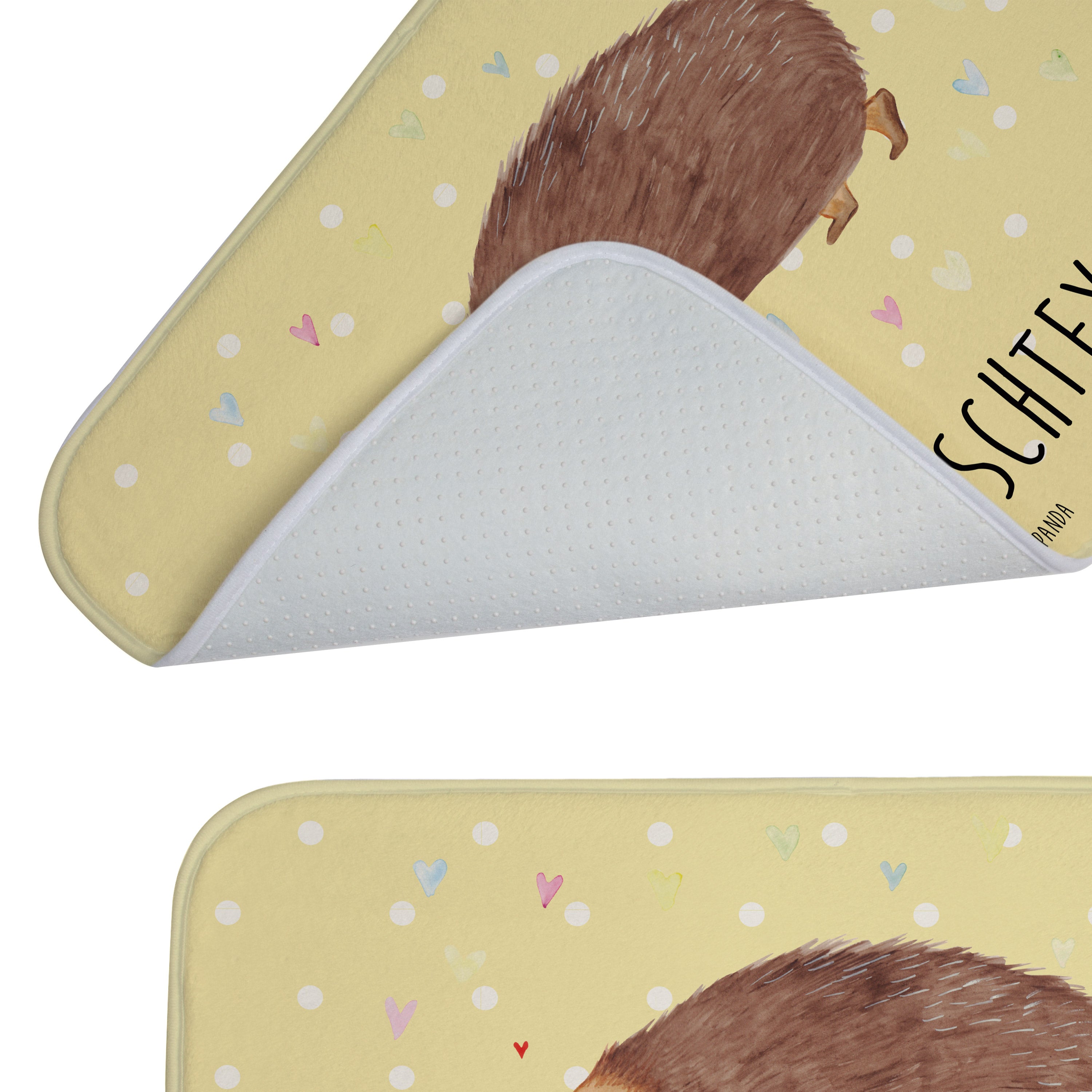 Entdecke eine neue Ebene von Komfort und Stil für dein Badezimmer mit dem personalisierten Badvorleger von Mr. & Mrs. Panda. Auf diesem 590 mm x 400 mm großen Badezimmeraccessoire in flauschiger Premium Kunstfaser verleihst du deinem Raum eine individuelle Note, indem du ihn mit deinem Namen oder einem besonderen Spruch gestaltest. Seine saugstarke Eigenschaft und die einfache Pflege (maschinenwaschbar bei 30°C) machen ihn zum perfekten Begleiter für all deine Badezimmerabenteuer. Die Antirutsch Gummibeschichtung sorgt für stetigen Halt und Sicherheit.