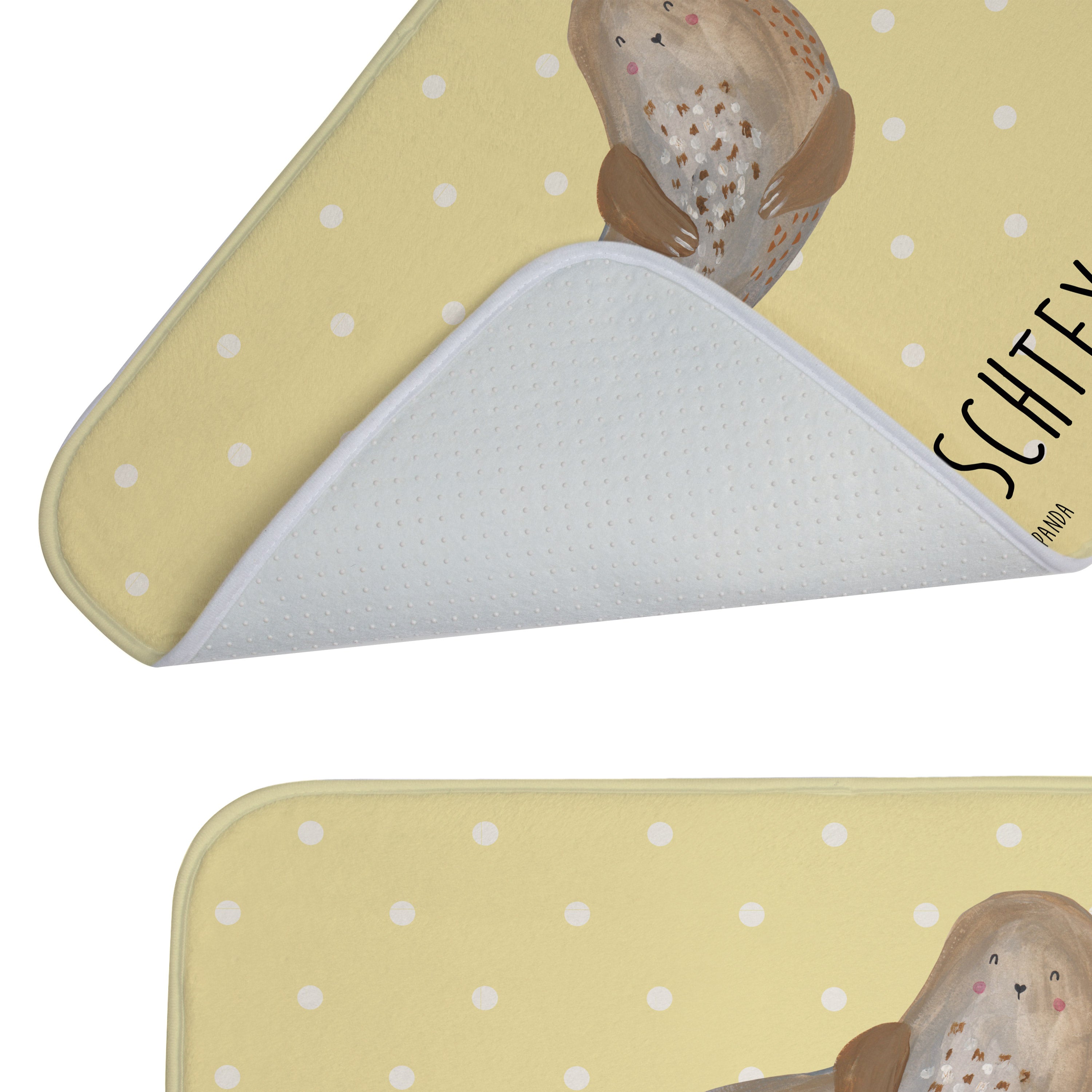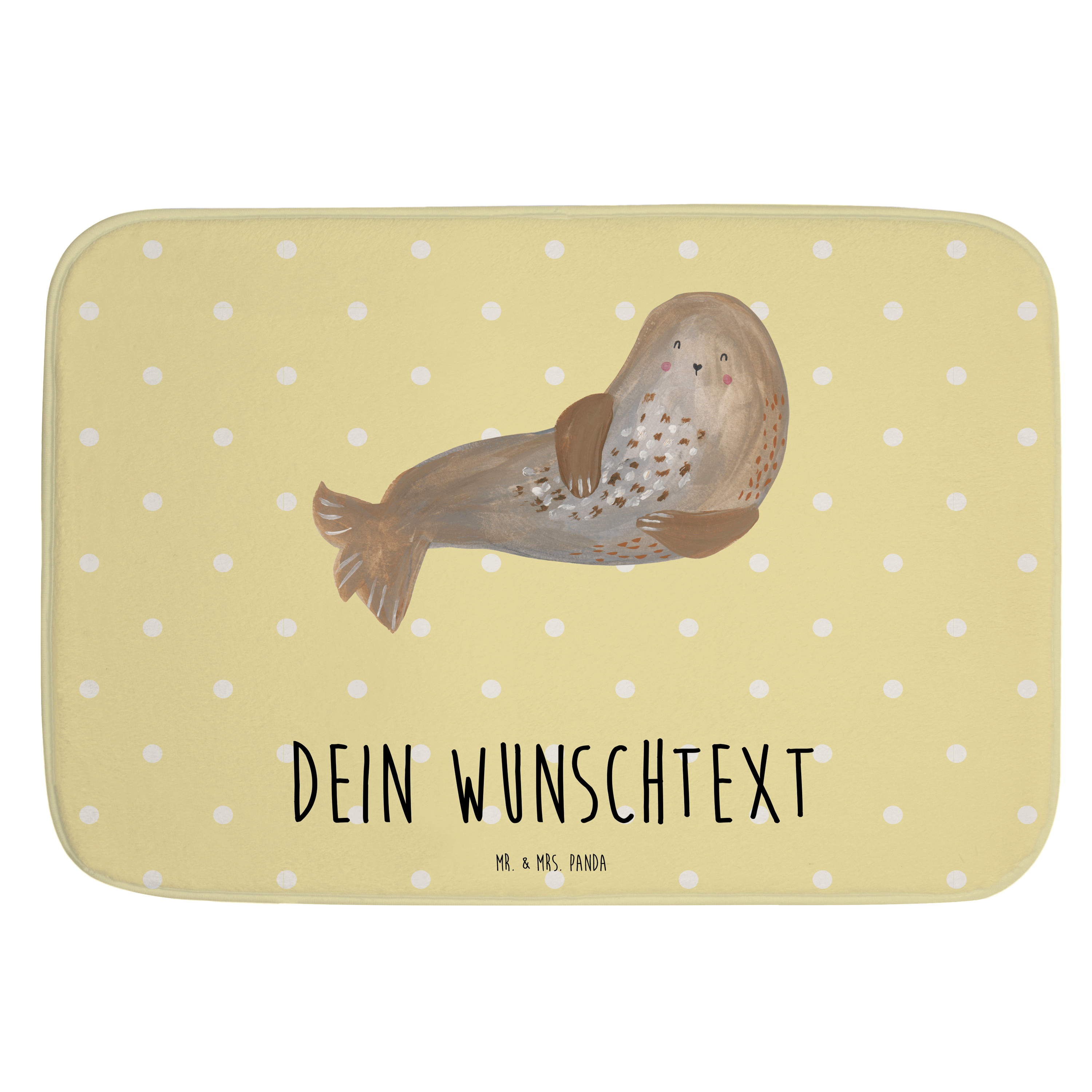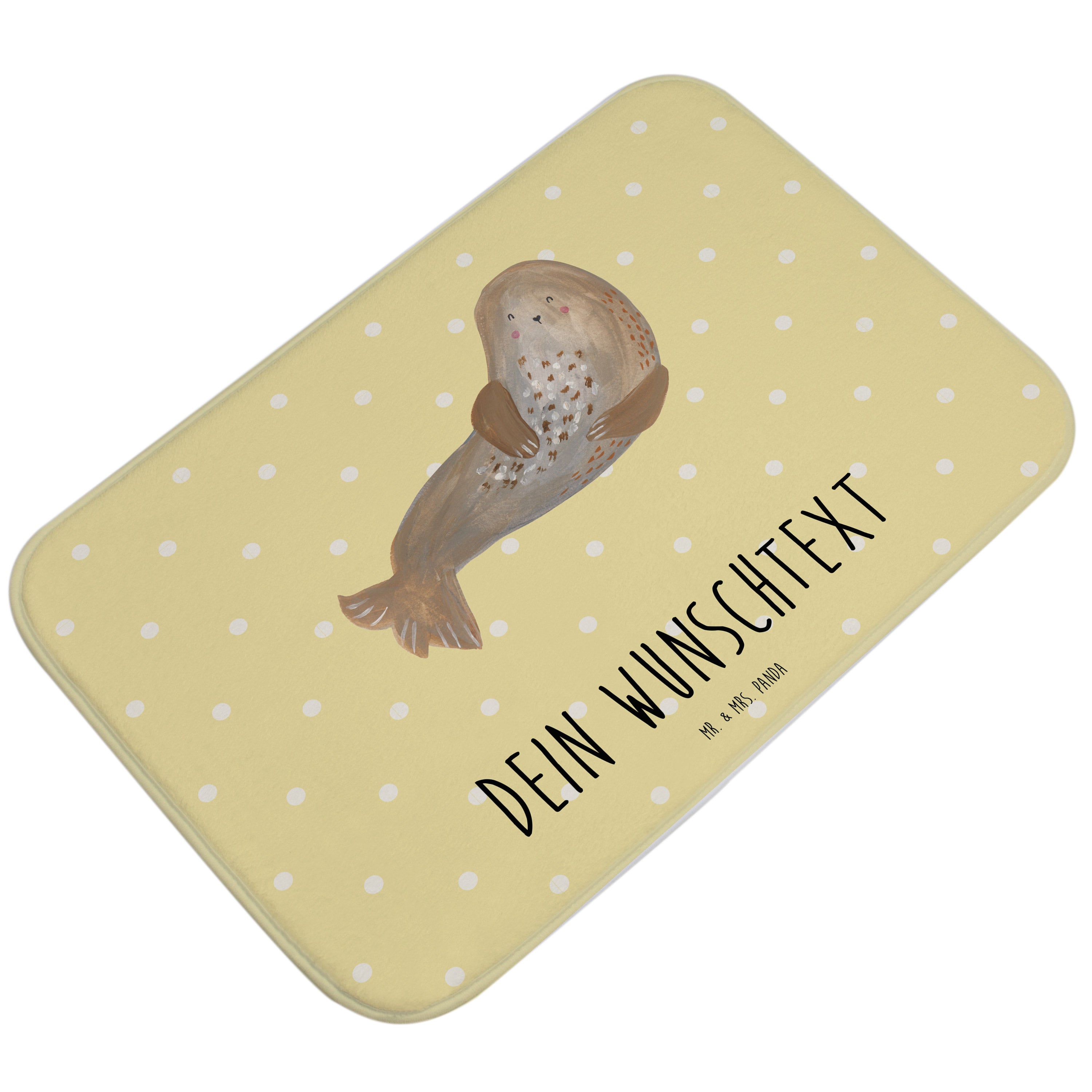 Dieser Badvorleger von Mr. & Mrs. Panda verwandelt jedes Badezimmer in einen individuell gestalteten Wohlfühlort. Mit den Maßen 590 mm x 400 mm, hergestellt aus weicher Premium Kunstfaser und ausgestattet mit einer Antirutsch Gummibeschichtung, bietet dieser Vorleger neben seinem einzigartigen Design auch praktische Vorteile. Der Wunschnamen oder -text verleiht ihm eine persönliche Note, während die saugstarke Beschaffenheit und die Möglichkeit zur Maschinenwäsche bei 30°C den Alltag erleichtern. Die Anti-Rutsch Gumminoppen sorgen für zusätzliche Sicherheit in deinem Badezimmer.