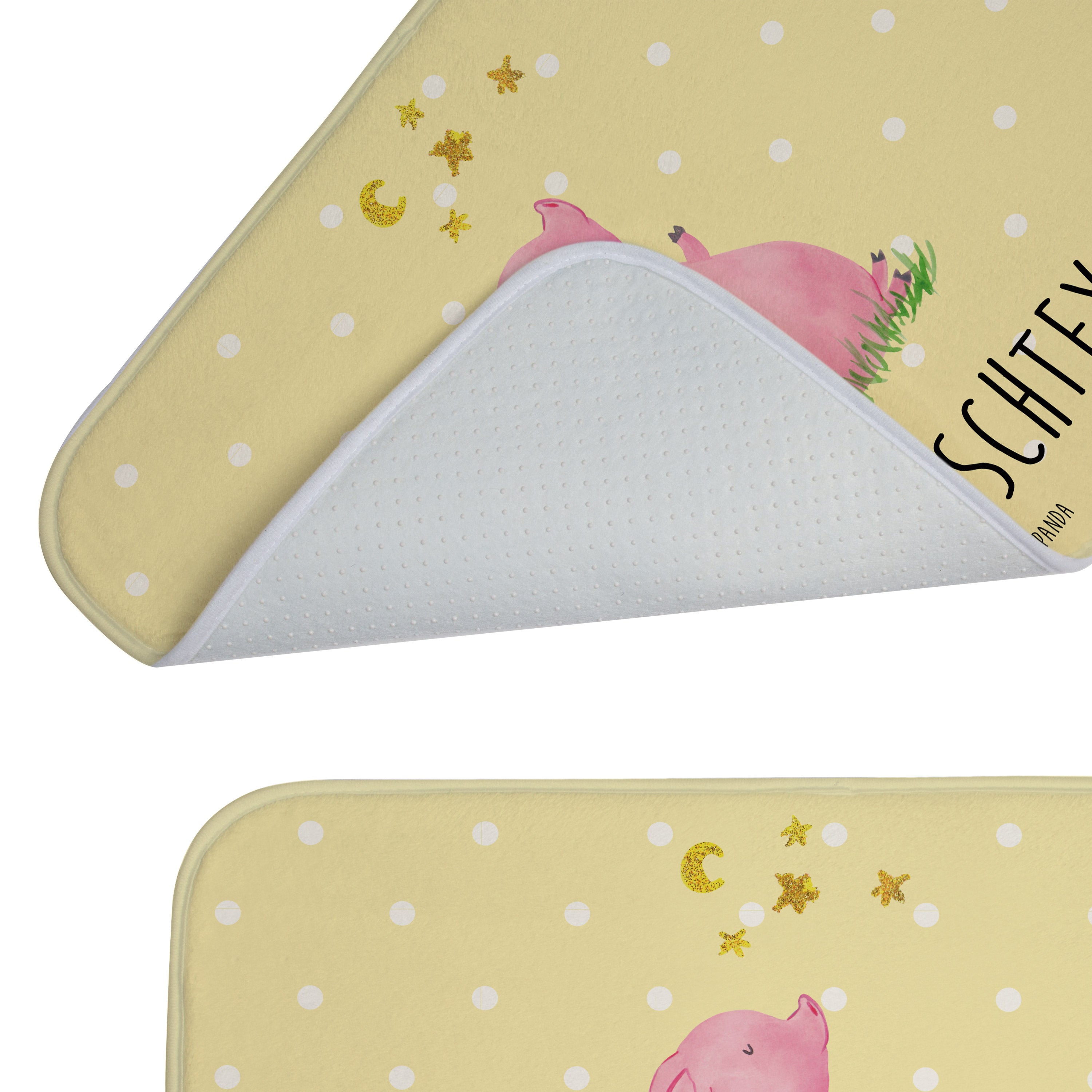 Entdecke eine neue Ebene von Komfort und Stil für dein Badezimmer mit dem personalisierten Badvorleger von Mr. & Mrs. Panda. Auf diesem 590 mm x 400 mm großen Badezimmeraccessoire in flauschiger Premium Kunstfaser verleihst du deinem Raum eine individuelle Note, indem du ihn mit deinem Namen oder einem besonderen Spruch gestaltest. Seine saugstarke Eigenschaft und die einfache Pflege (maschinenwaschbar bei 30°C) machen ihn zum perfekten Begleiter für all deine Badezimmerabenteuer. Die Antirutsch Gummibeschichtung sorgt für stetigen Halt und Sicherheit.