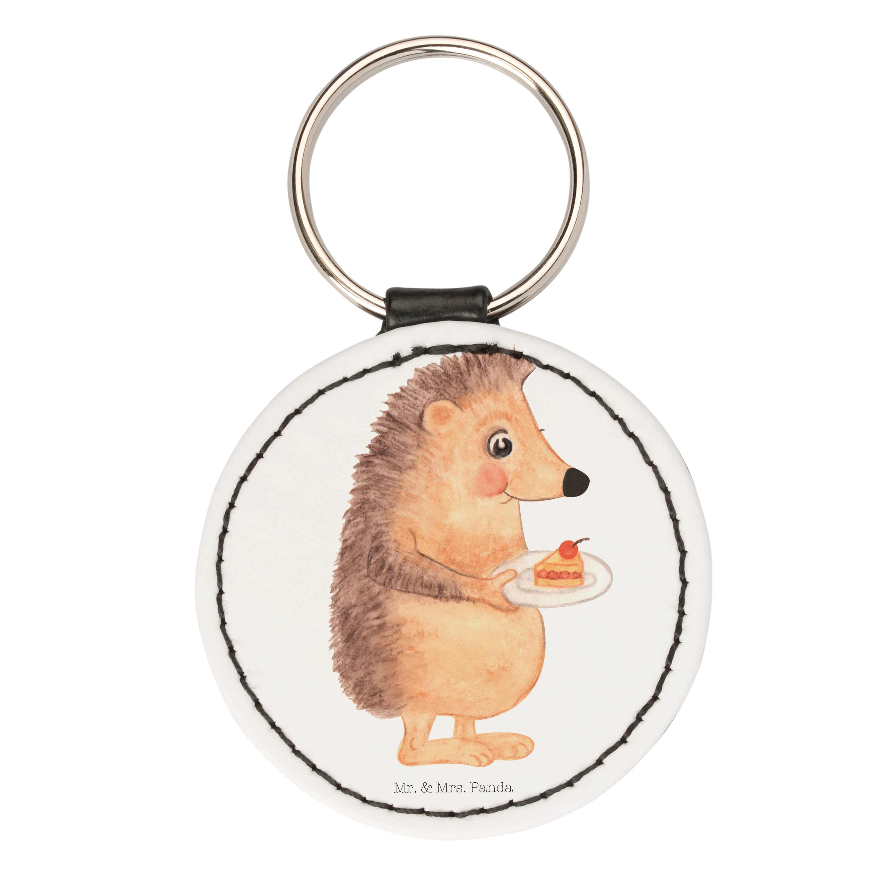 Rund Schlüsselanhänger Igel mit Kuchenstück