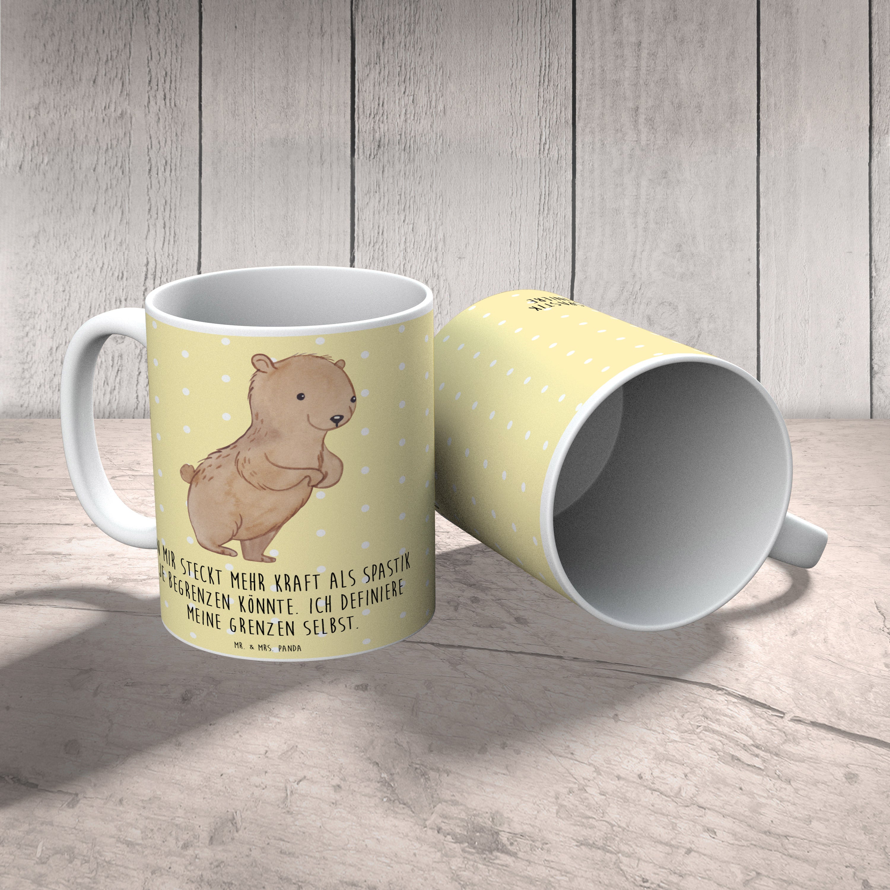 Tauche ein in die Welt der Farben mit unserer Porzellantasse von Mr. & Mrs. Panda. Jedes Stück ist ein Unikat, dank der handgezeichneten Motive und Sprüche, die jeder Tasse ihren individuellen Charakter verleihen. Mit einer Größe von 90 mm x 90 mm und einem Volumen von 325 ml ist sie ideal für den morgendlichen Kaffee oder den entspannenden Nachmittagstee. Die Tasse aus hochwertiger Keramik garantiert dir Langlebigkeit und ist sowohl spülmaschinenfest als auch mikrowellentauglich, was sie zum perfekten Alltagsbegleiter macht. Ihre glänzende Oberfläche lässt die Farben leuchten und macht jede Tee- oder Kaffeepause zu einem besonderen Erlebnis.