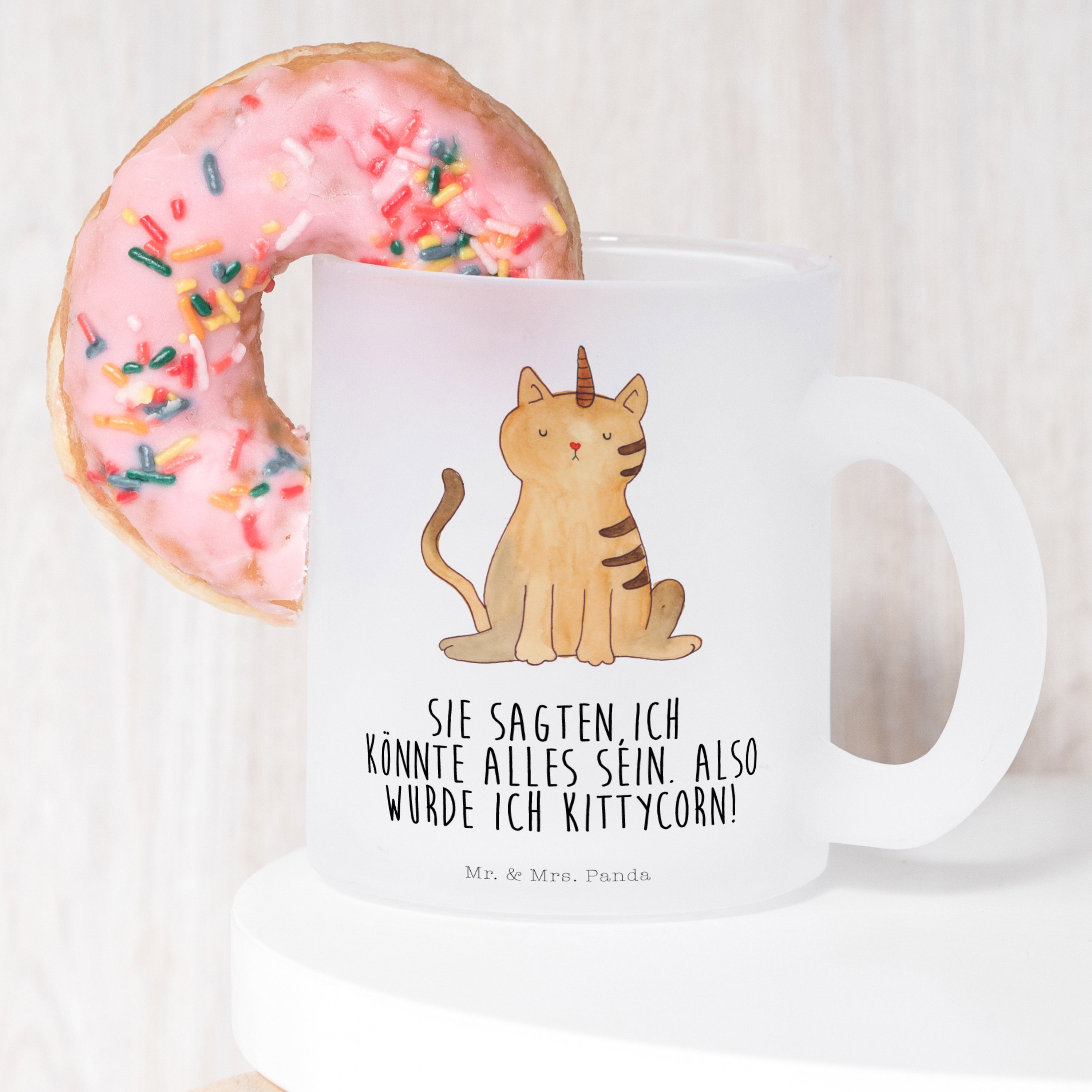 Stell Dir vor, es ist ein kalter Wintermorgen, und in Deinen Händen hältst Du eine edle Teetasse von Mr. & Mrs. Panda. Mit Maßen von 95 mm x 80 mm und einem Gewicht von 390 g passt sie perfekt in Deine Hände. Das robuste, extra starke Premiumglas mit 3 mm Stärke hält jeden Heißgetränk stand, sei es Glühwein, Tee oder Kaffee. Die satinierte Oberfläche und die edlen, mit Sprüchen und Motiven bedruckten Designs machen jede Tasse zu einem Unikat. Die Tasse betont je nach Getränk das Motiv mit einer anderen Unterfarbe. Dank des kratzfesten und hitzebeständigen Aufdrucks bleibt die Schönheit der Tasse erhalten. Bitte beachte: Diese Tasse ist nicht spülmaschinenfest und sollte mit sanfter Handwäsche gereinigt werden.