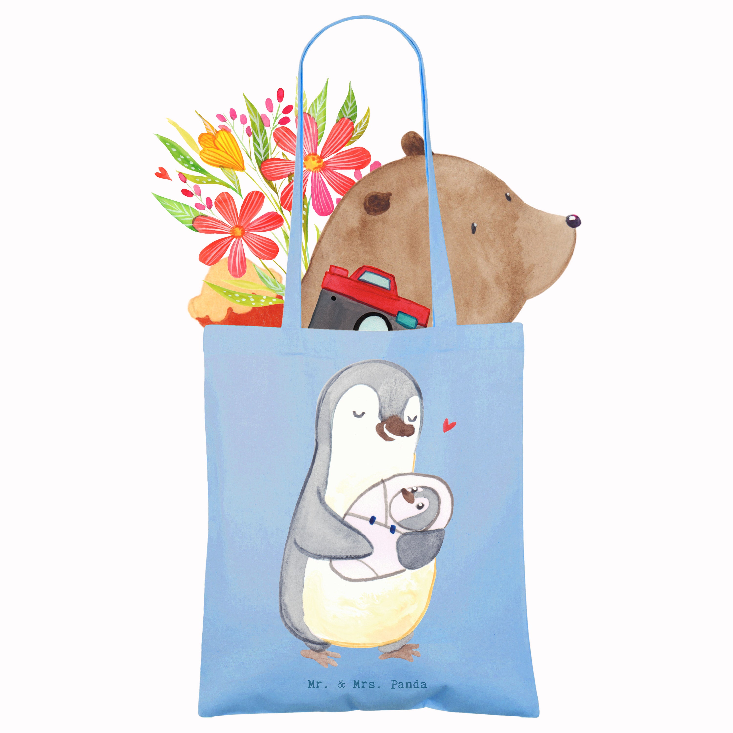 Verleihe deinem Alltag einen Hauch von Nachhaltigkeit und Charme mit unserer einzigartigen Einkaufstasche von Mr. & Mrs. Panda. Mit ihren Abmessungen von 420 mm x 380 mm bietet sie viel Platz für all deine Besorgungen. Aus 100% Baumwolle gefertigt (140g/m²), zeichnet sie sich durch eine robuste Qualität und Umweltfreundlichkeit aus. Die Verarbeitung mit umsäumten Innennähten und den langen Tragegriffen (70cm), an denen Cross Stitching für mehr Halt sorgt, unterstreicht die Sorgfalt, mit der jede Tasche hergestellt wird. Die liebevollen, hochwertig bedruckten Motive und Sprüche bereichern deinen Tag und machen jedes Stück zu einem Unikat. Zum Schutz der Drucke empfehlen wir eine Handwäsche in lauwarmem Wasser. Ein Must-have für alle, die Wert auf Design und Umweltbewusstsein legen.