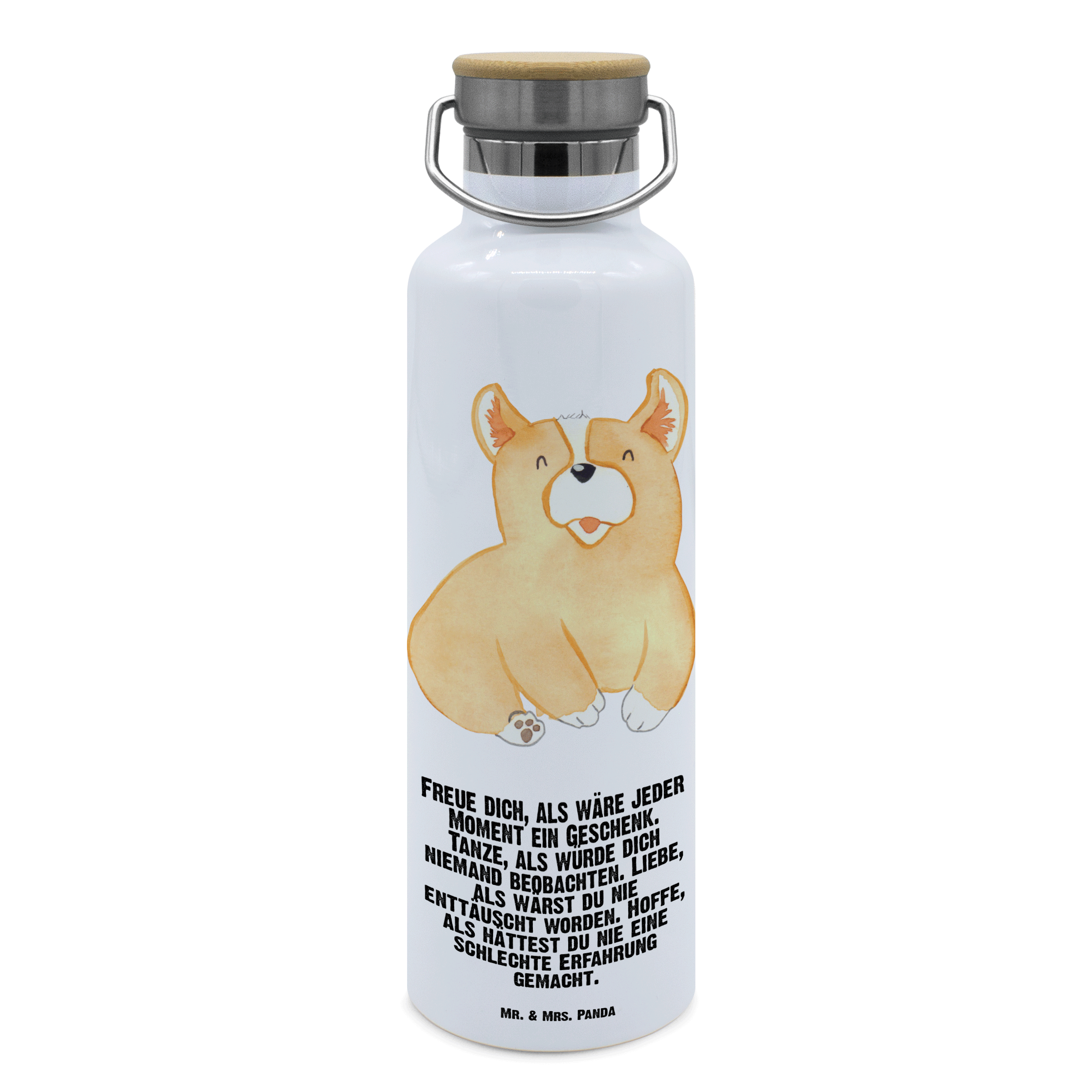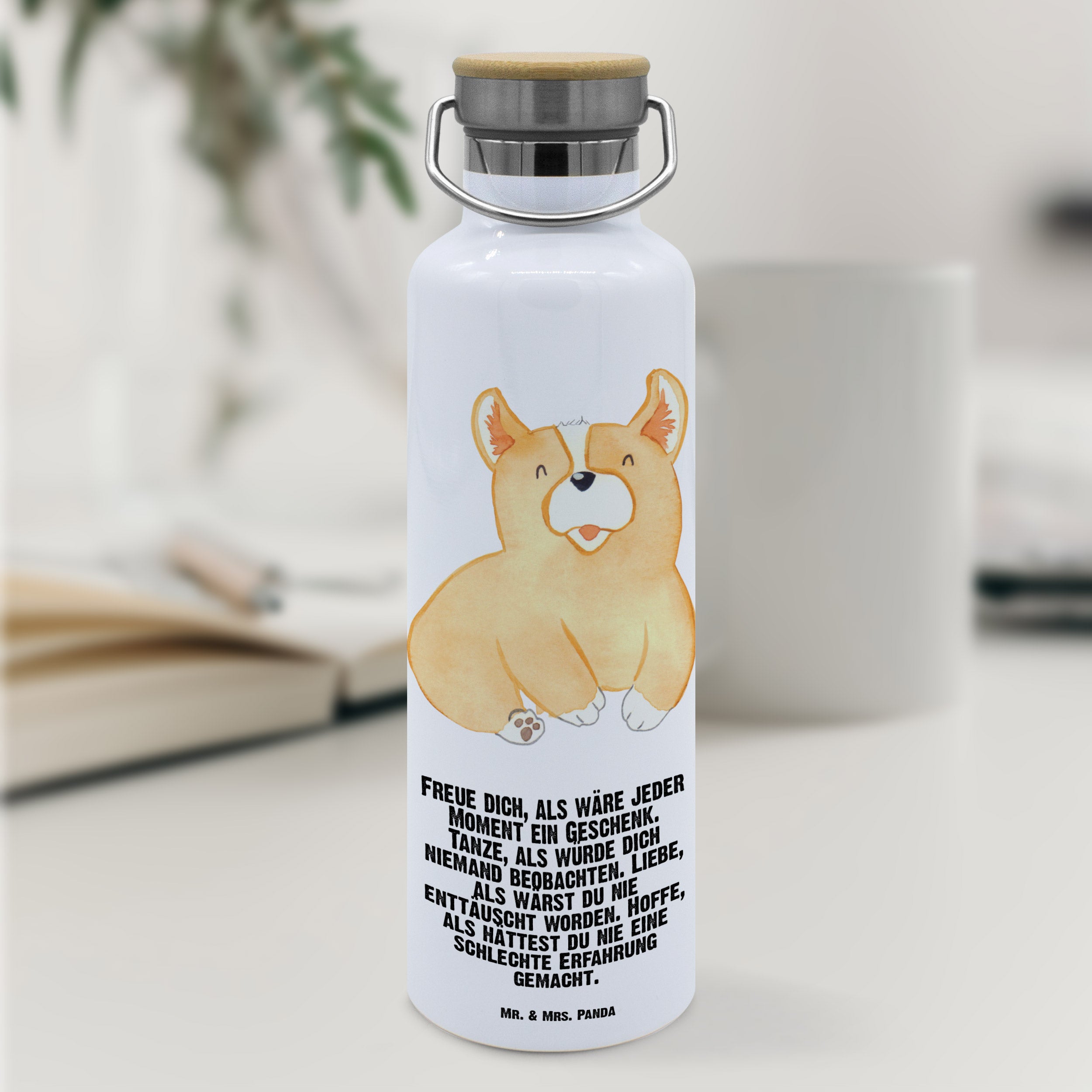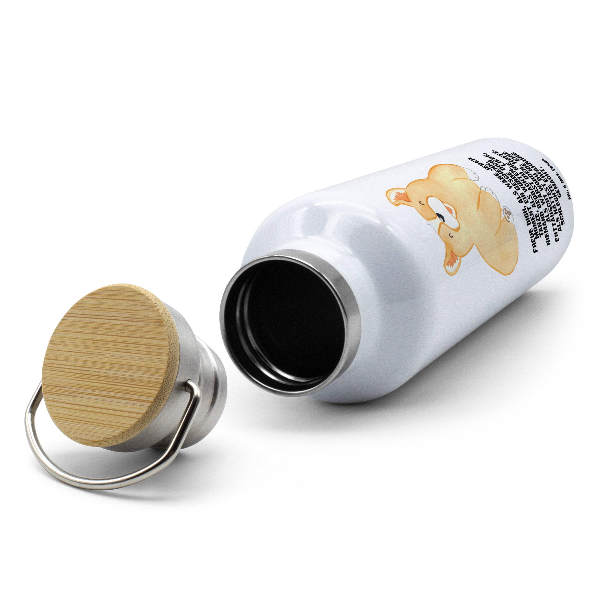 Tauche ein in die charmante Welt von Mr. & Mrs. Panda mit dieser stylischen und funktionalen Thermosflasche. Sie kombiniert ein ansprechendes Design mit effizienter Isolierfähigkeit dank doppelwandigem Edelstahl. Die Trinkflasche misst 255 mm in der Höhe und 78 mm im Durchmesser, bietet 750 ml Fassungsvermögen und wiegt lediglich 385 g. Sie ist perfekt für Heiß- oder Kaltgetränke und sogar kohlensäurehaltige Getränke. Der Deckel aus Bambus fügt eine ökologische Note hinzu, passend zum umweltfreundlichen Ethos von Mr. & Mrs. Panda. Die Flasche ist mit ausgewählten, herzerwärmenden Sprüchen und niedlichen Motiven versehen, die sie zu mehr als nur einer Sport- oder Wanderflasche machen. Dank ihrer Robustheit und Leichtigkeit ist sie überall einsetzbar, wobei die Handwäsche ihre Langlebigkeit und das strahlende Aussehen erhält.